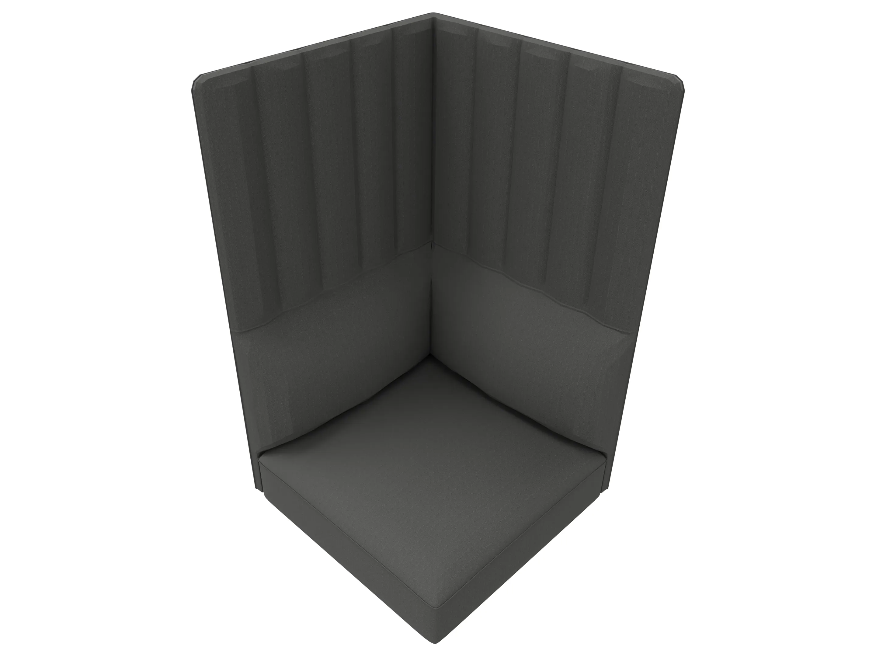 Volledig gestoffeerde 630mm breed modulair hoekelement. Incl. hoge rugleuning. LET OP: poten moeten los worden besteld.