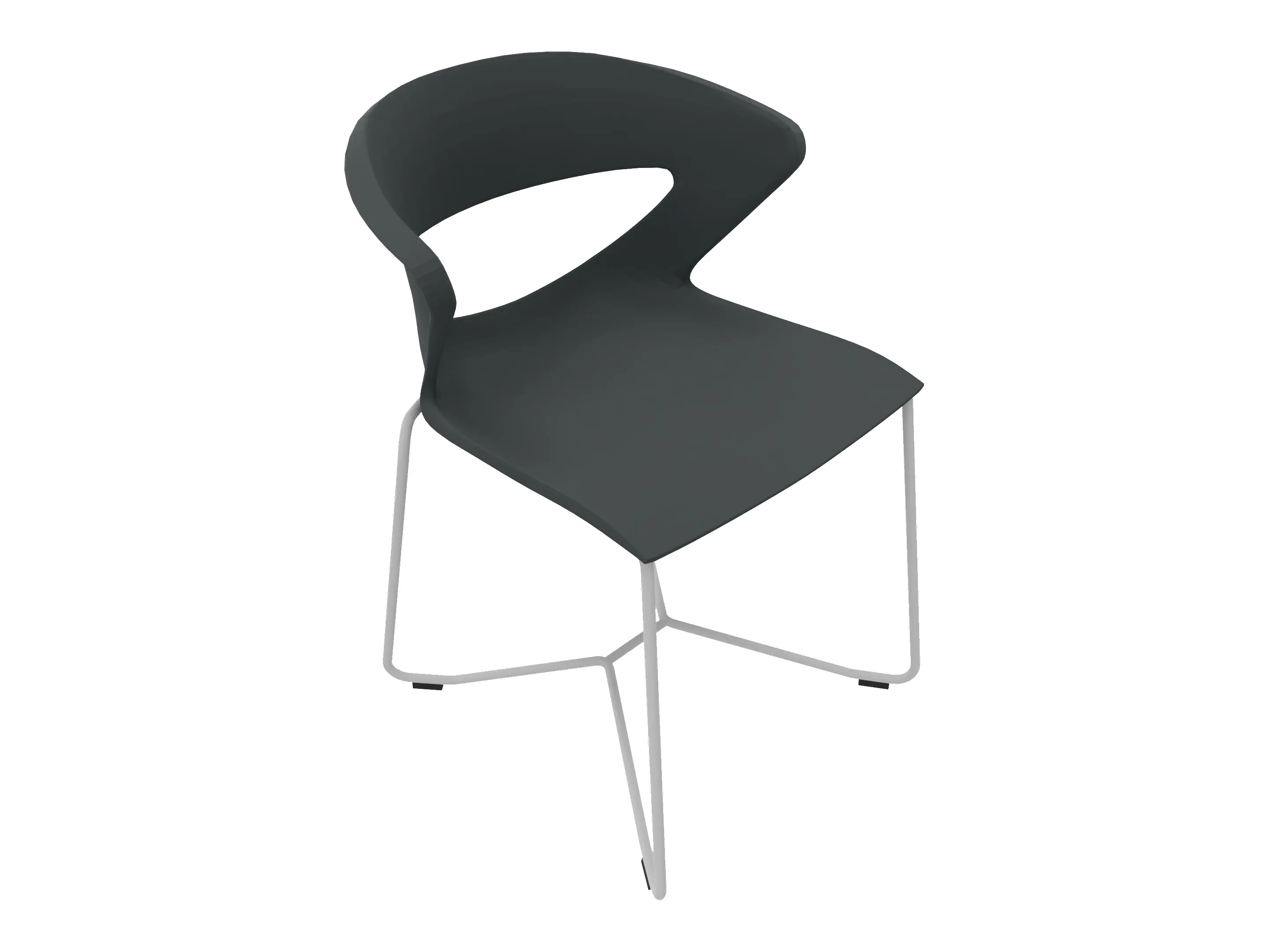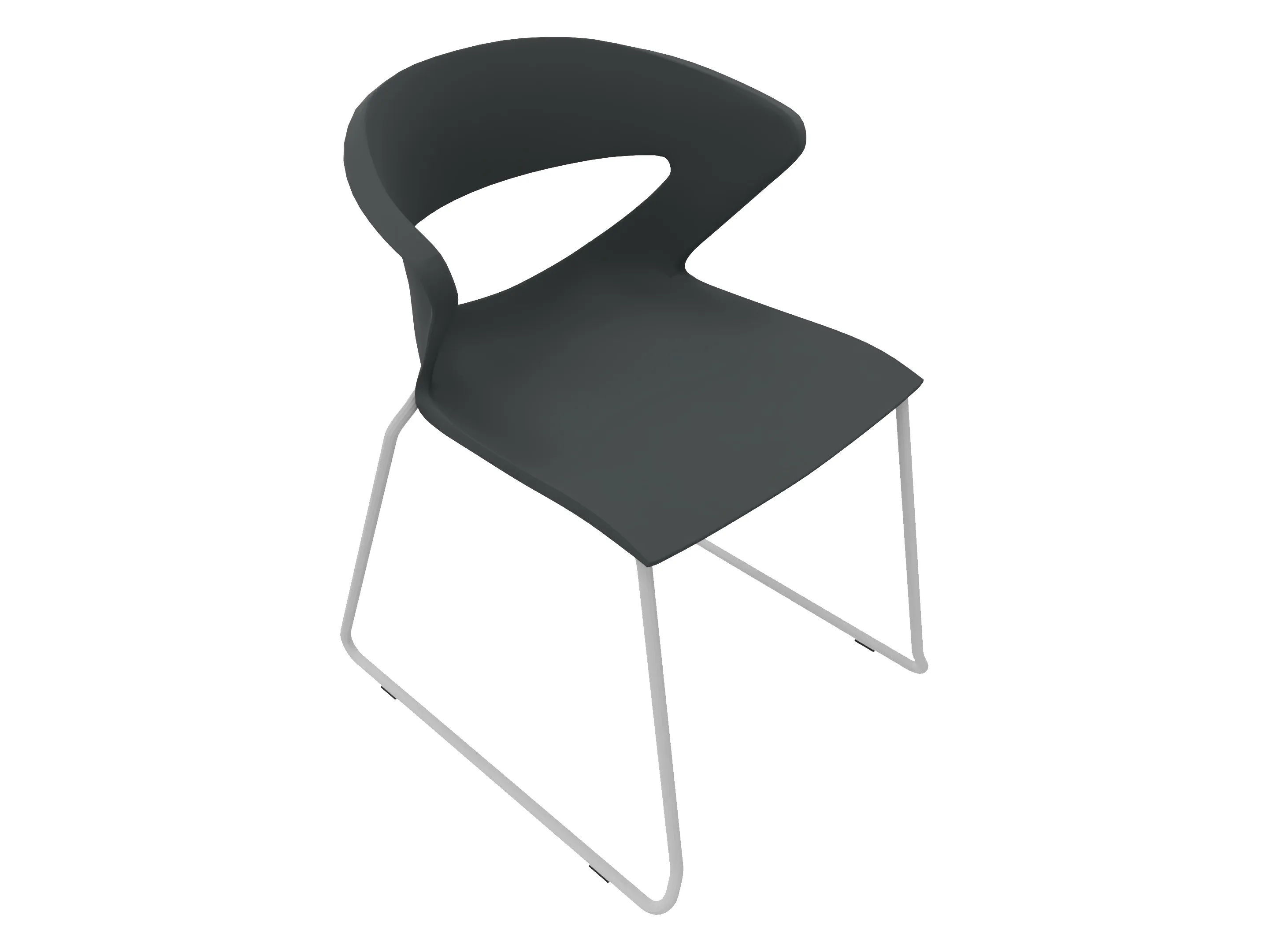 Stoel met een polypropyleen kuip op een sledeframe op glijders. Stapelbaar tot 8 stuks zonder trolley of 10 stuks op trolley.