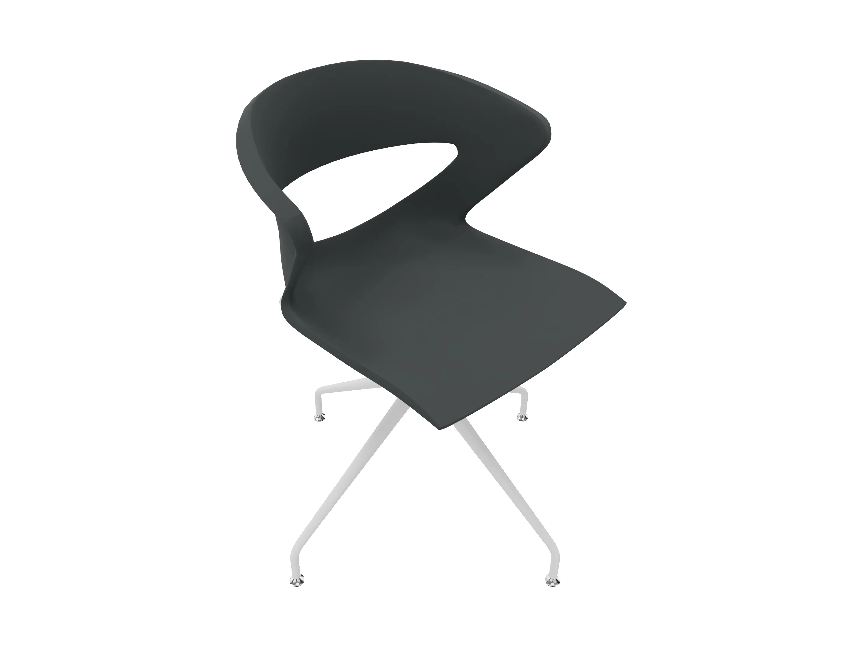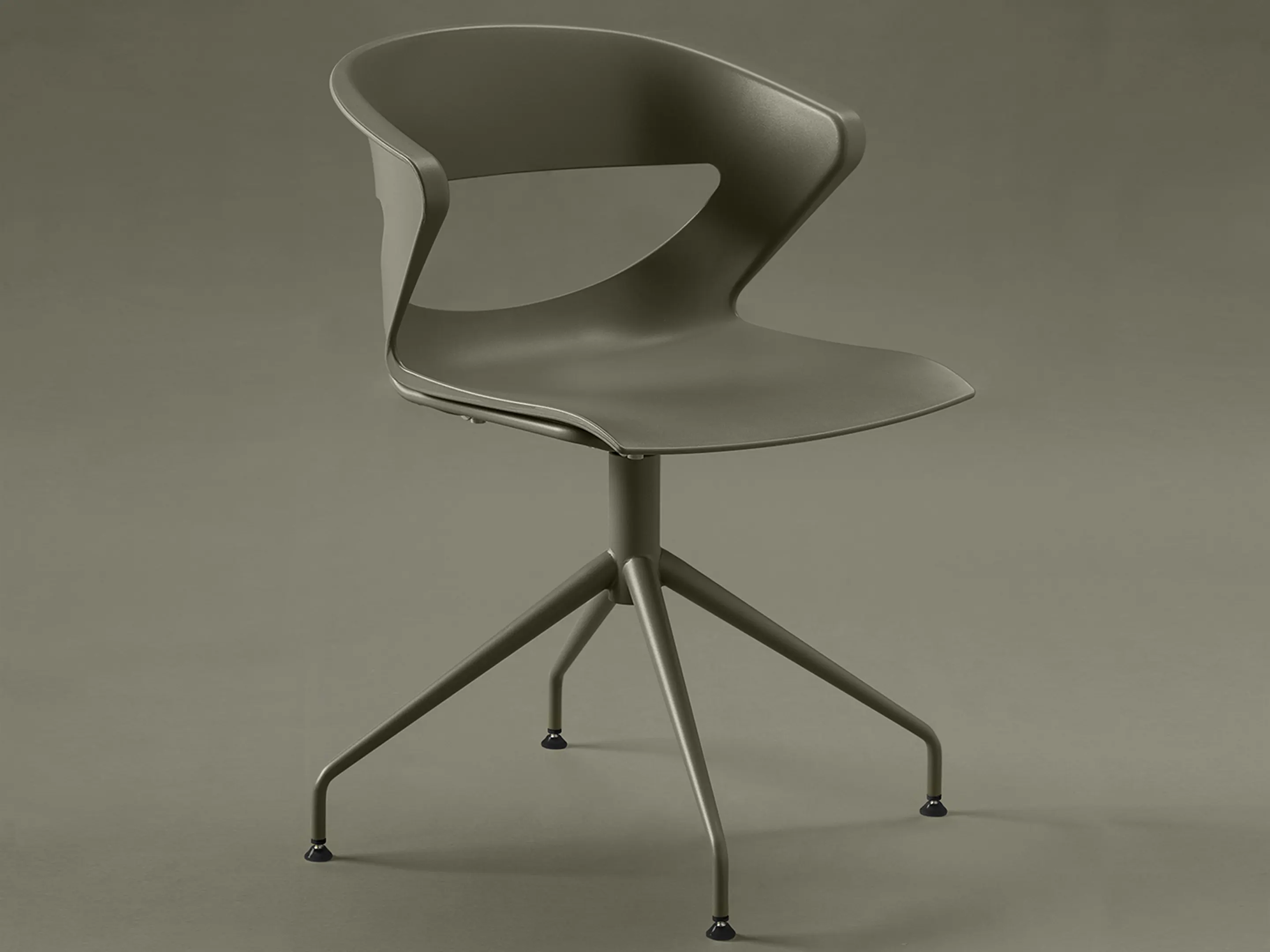 Stoel met een polypropyleen kuip op een 4-teens kruis op glijders. Draaibaar.