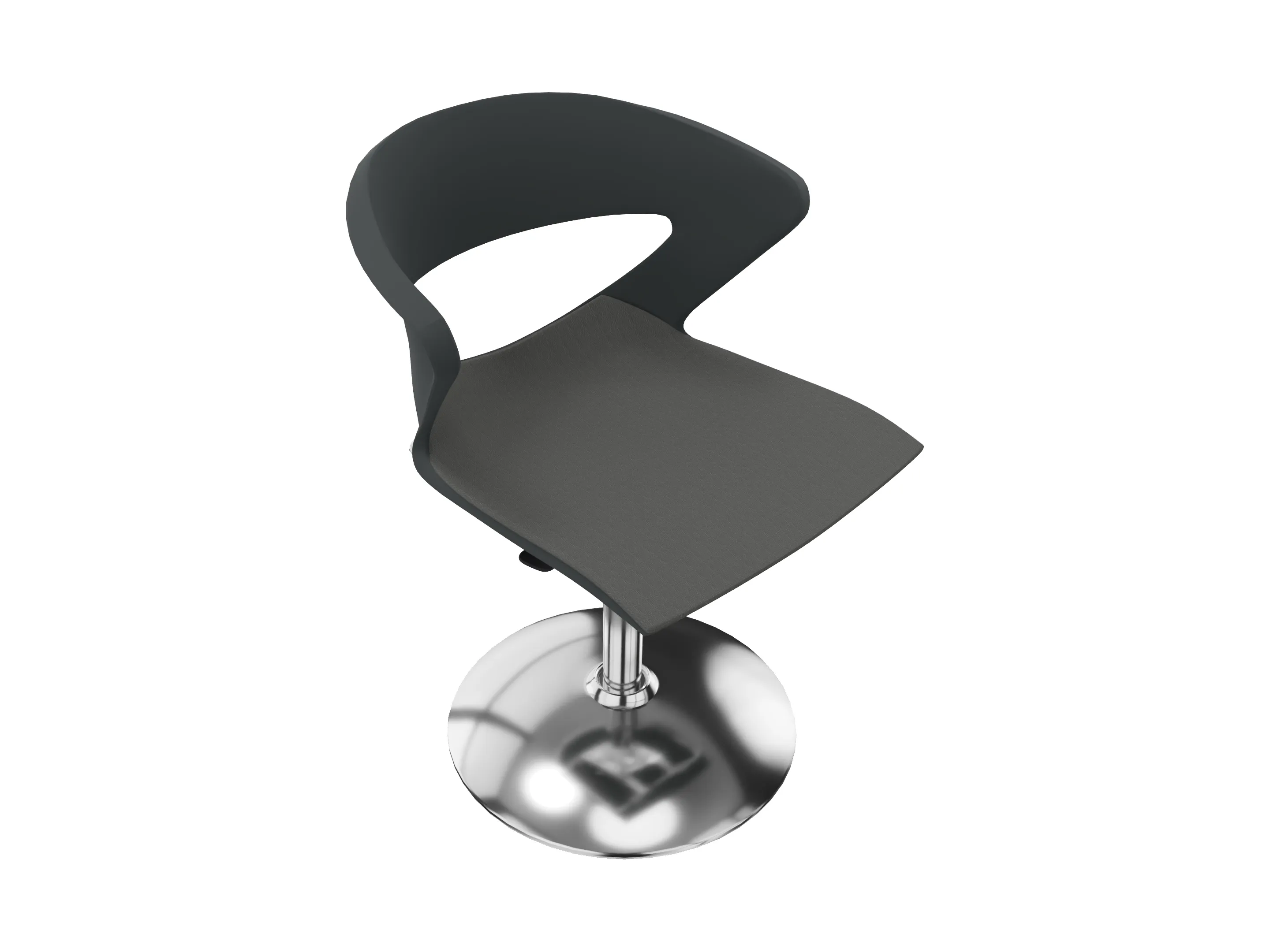 Stoel met een polypropyleen kuip op een verchroomd kolompoot. Draaibaar en hoogte-instelbaar.