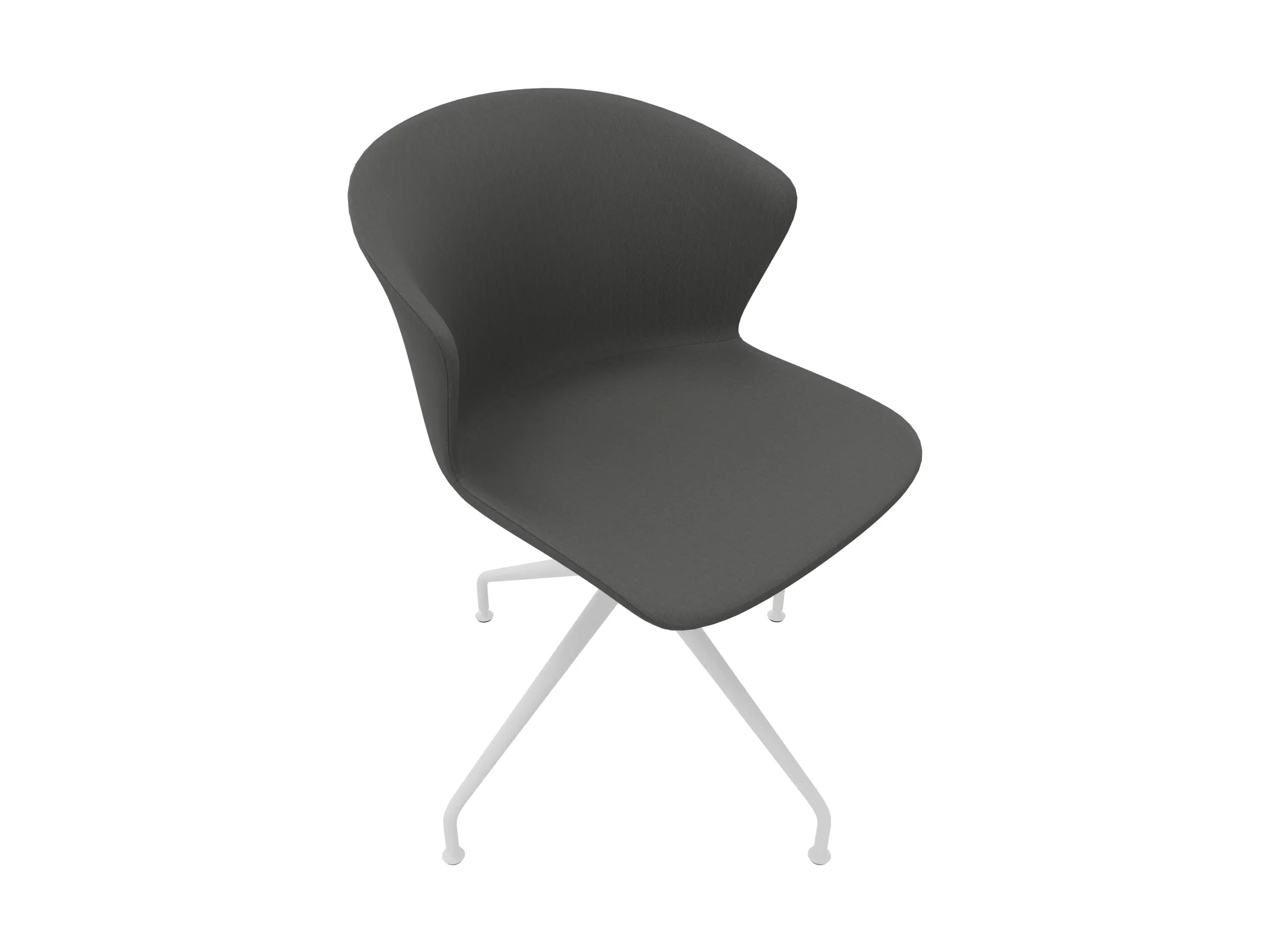 Stoel met een volledig gestoffeerde kuip op een 4-teens kruis op glijders. Draaibaar.