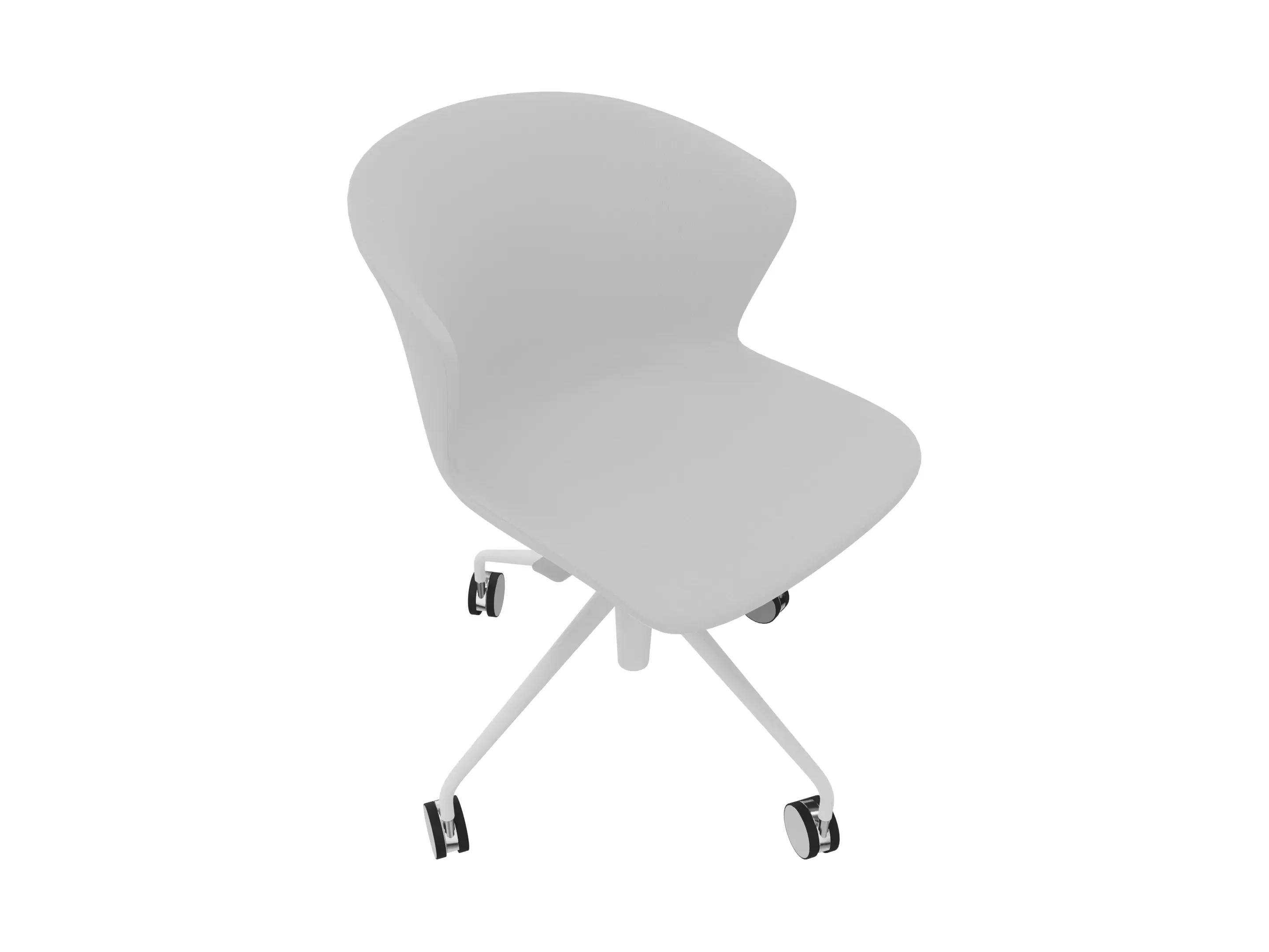 Stoel met een volledig gestoffeerde kuip op een 4-teens kruis op wielen. Draaibaar en hoogte-instelbaar.