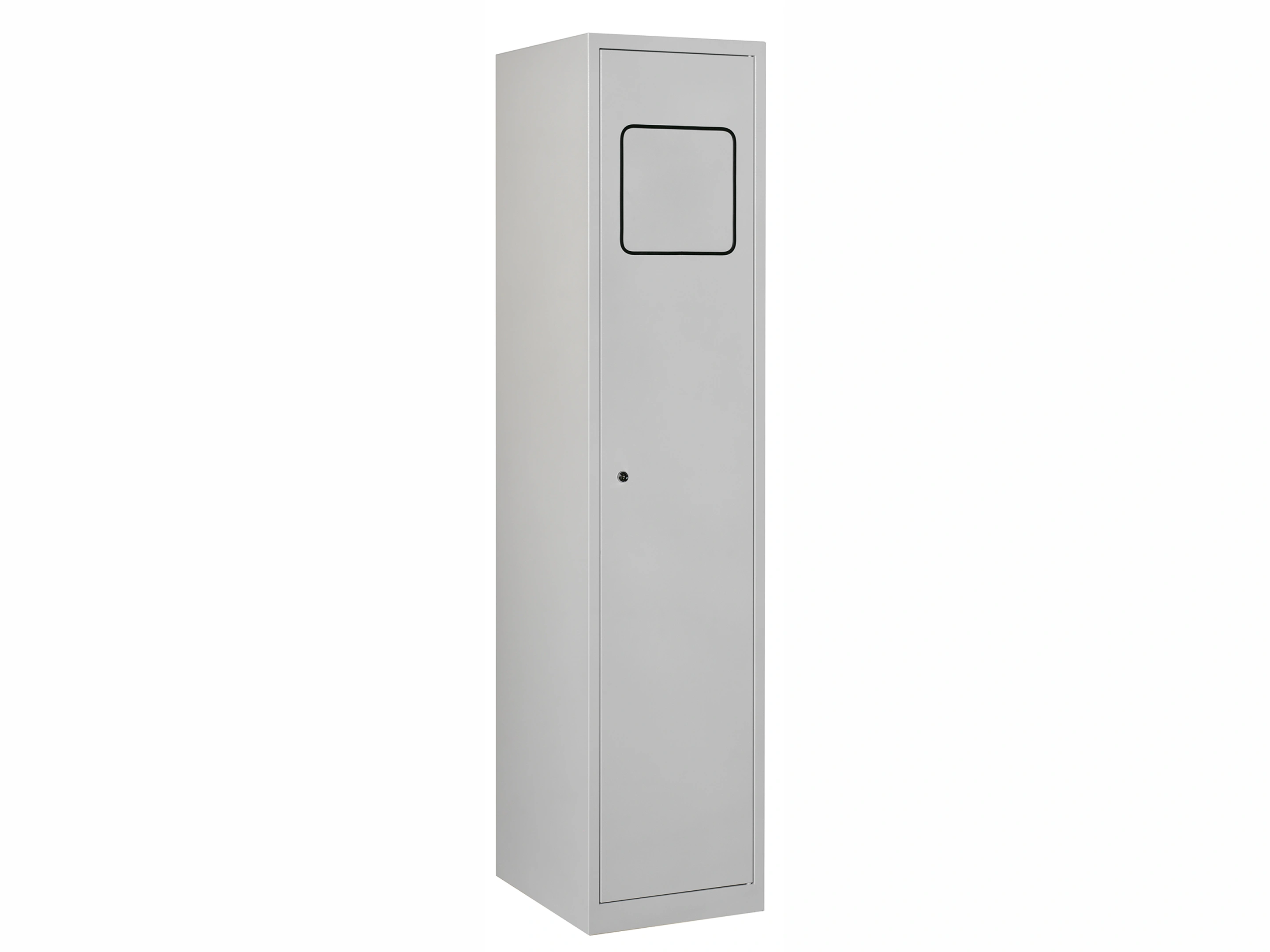 Type deuren: met vak voor deponeren van was (glad zonder naamkaarthouder), type slot: cilinderslot. Kleur romp: grijs (RAL7035), kleur deuren: grijs (RAL7035). Afmeting: 180x40x50 cm (HxBxD). Indeling: Aantal deuren: 1, aantal sleutels: 2.