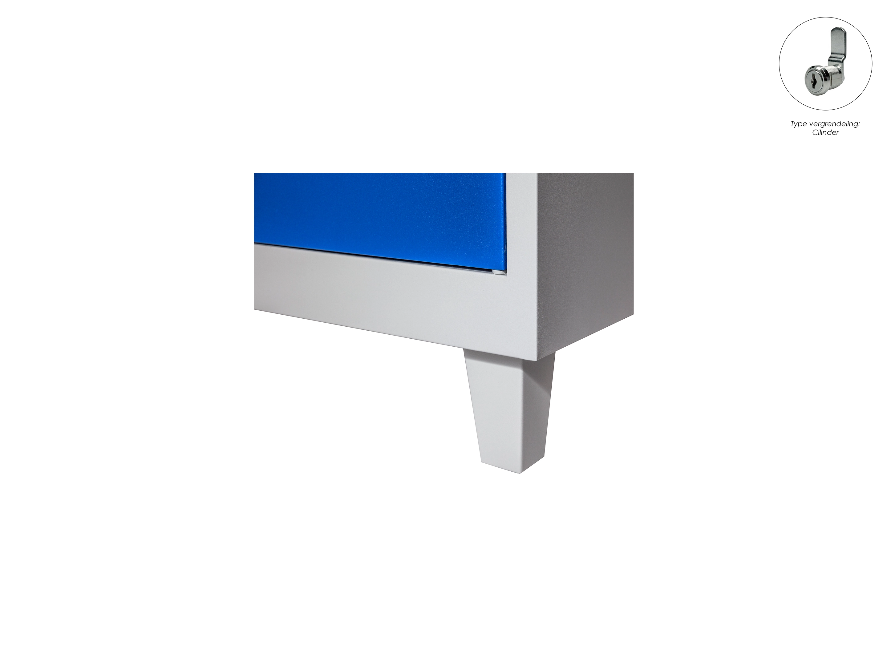met vak voor deponeren van was (glad zonder naamkaarthouder), type slot: cilinderslot. Kleur romp: grijs (RAL7035), kleur deuren: blauw (RAL5015). Afmeting: 190x40x50 cm (HxBxD). Indeling: Aantal deuren: 1, aantal sleutels: 2.