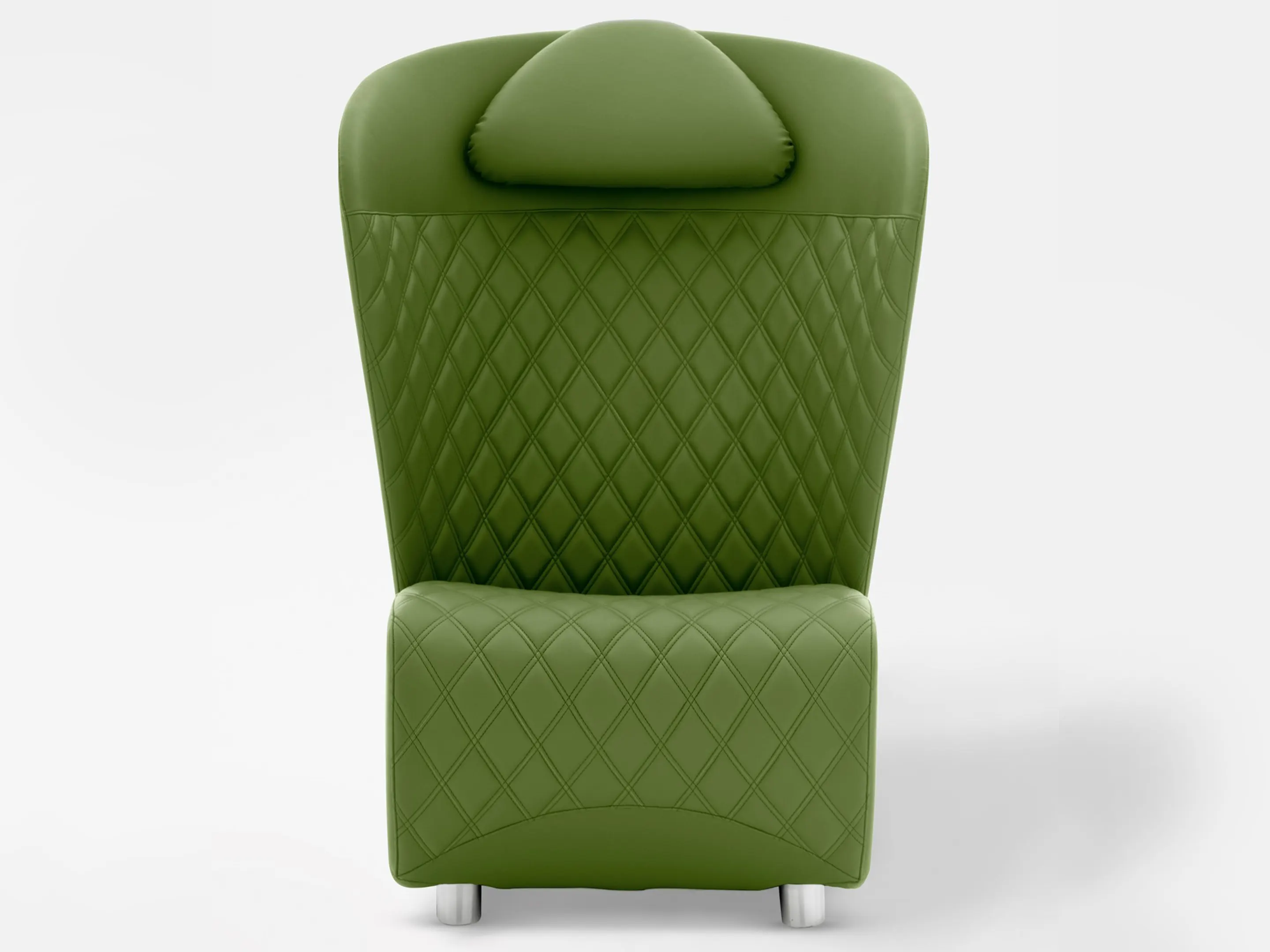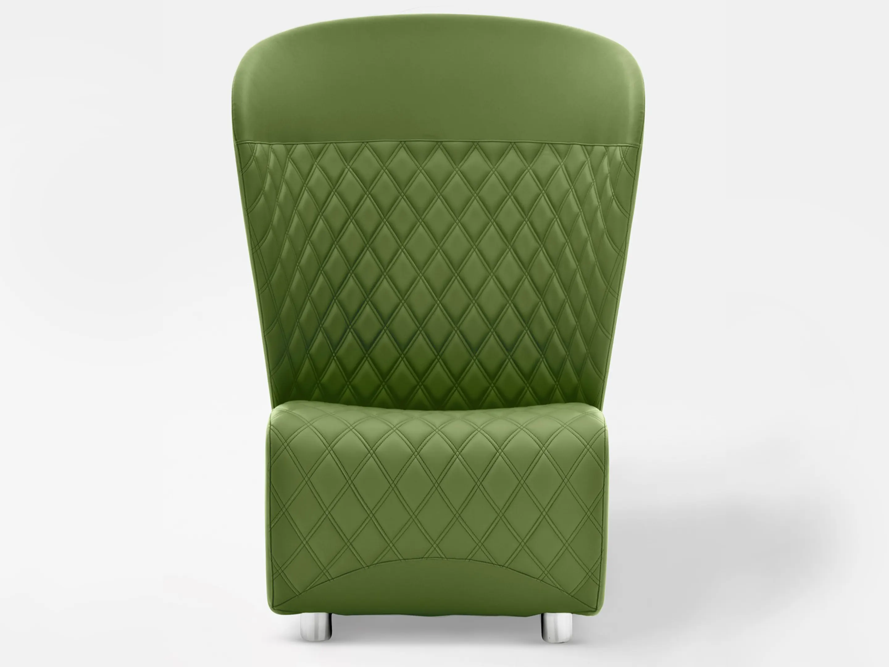 Volledig gestoffeerde fauteuil met rhombus stiksel en hoge rug op 4 glijders.