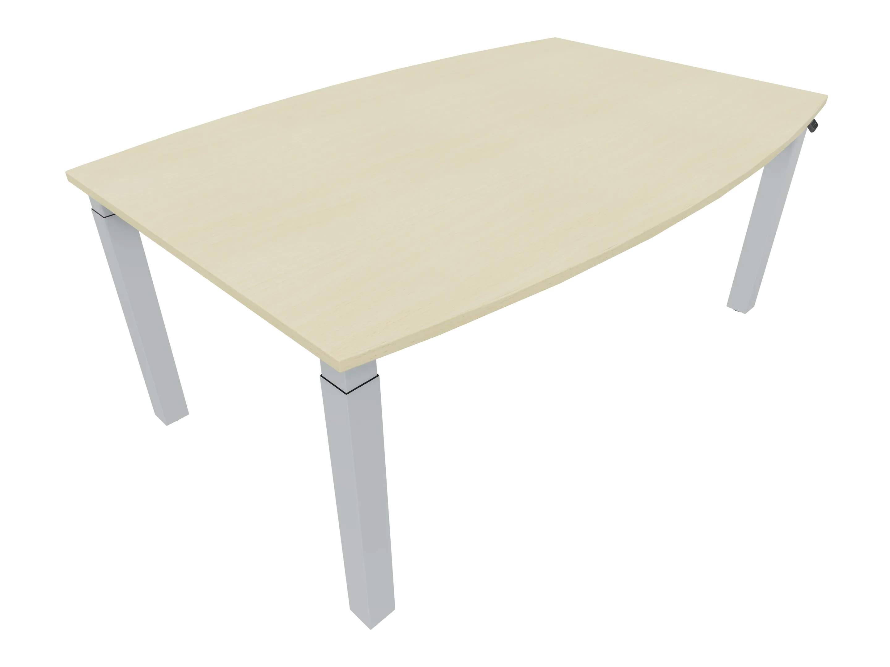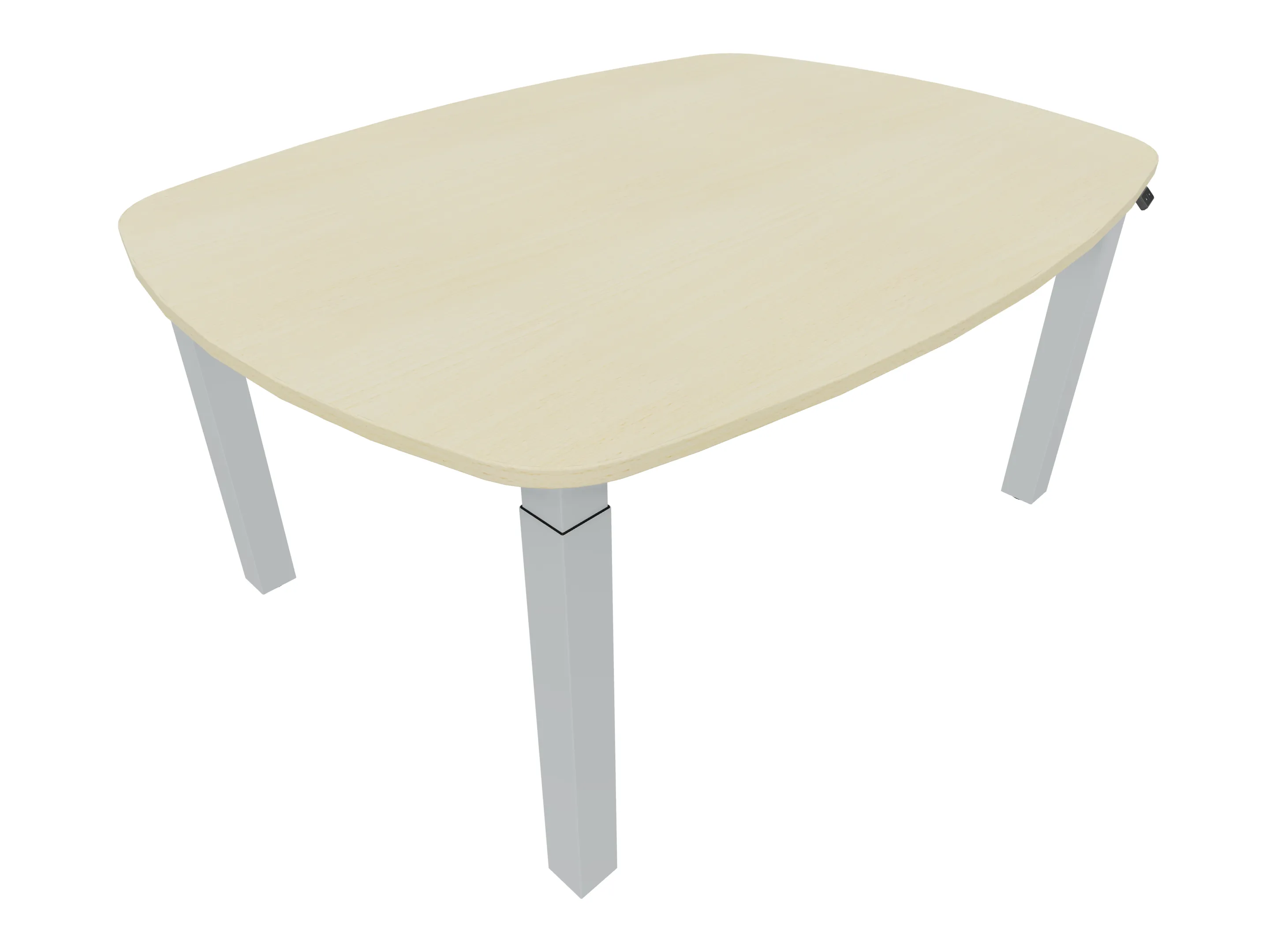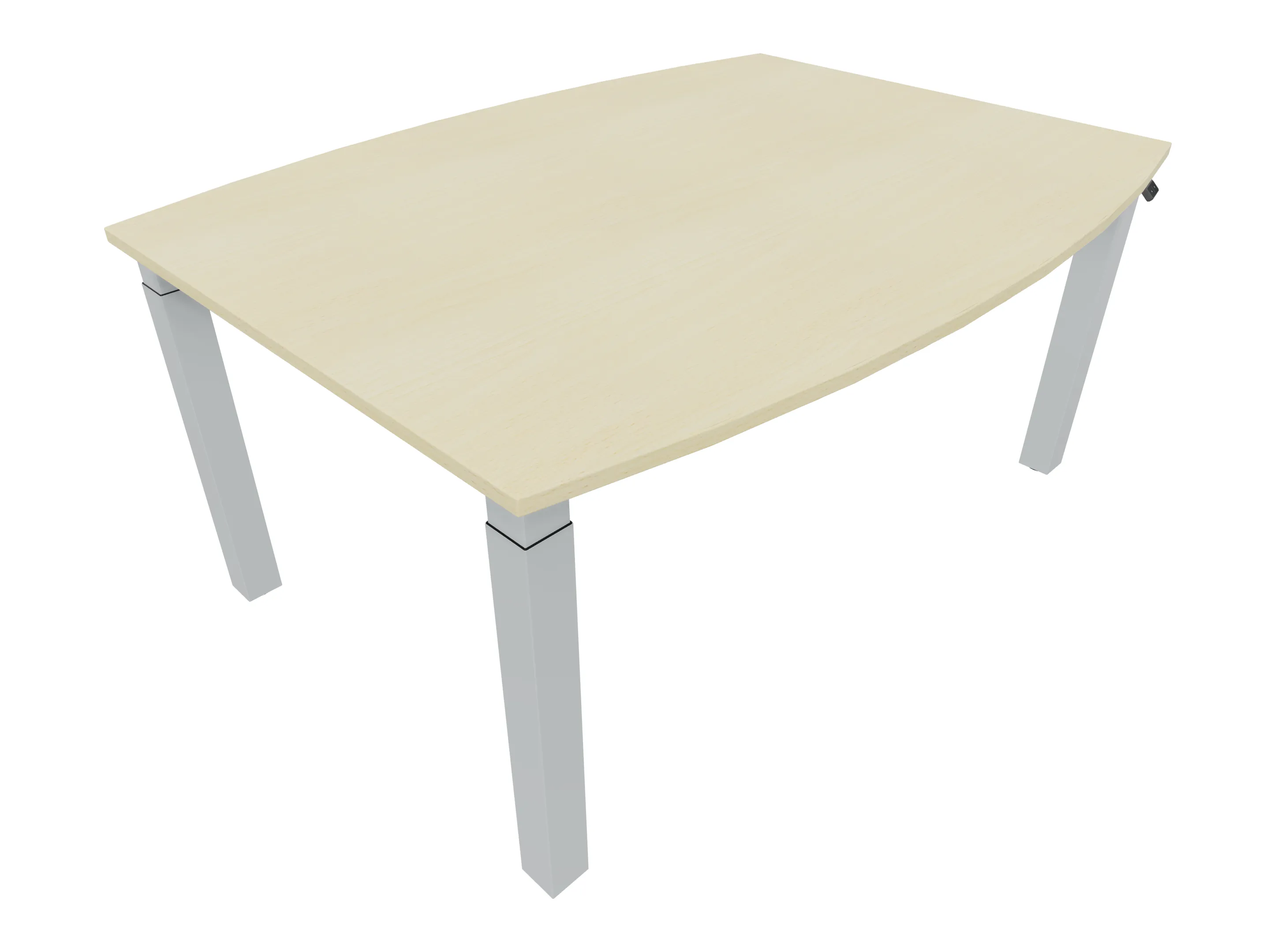 Elektrisch hoogte instelbare tonvormige vergadertafel met rechte hoeken, tussen 720-1080mm, compleet met 4 poten en bediening. Afmeting: 1600 x 720 x 1200mm (BxHxD)