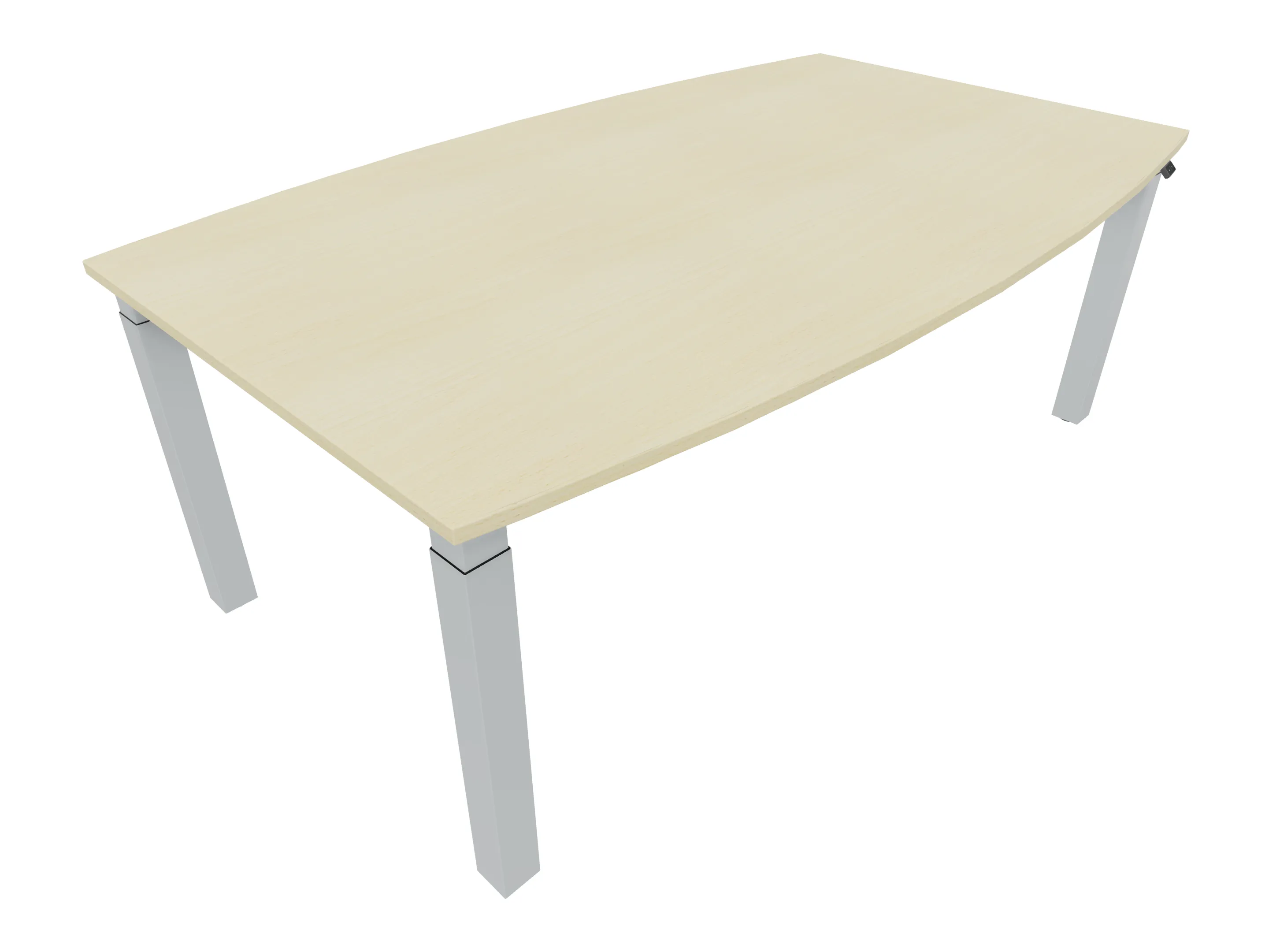 Elektrisch hoogte instelbare tonvormige vergadertafel met rechte hoeken, tussen 720-1080mm, compleet met 4 poten en bediening. Afmeting: 2200 x 720 x 1200mm (BxHxD)