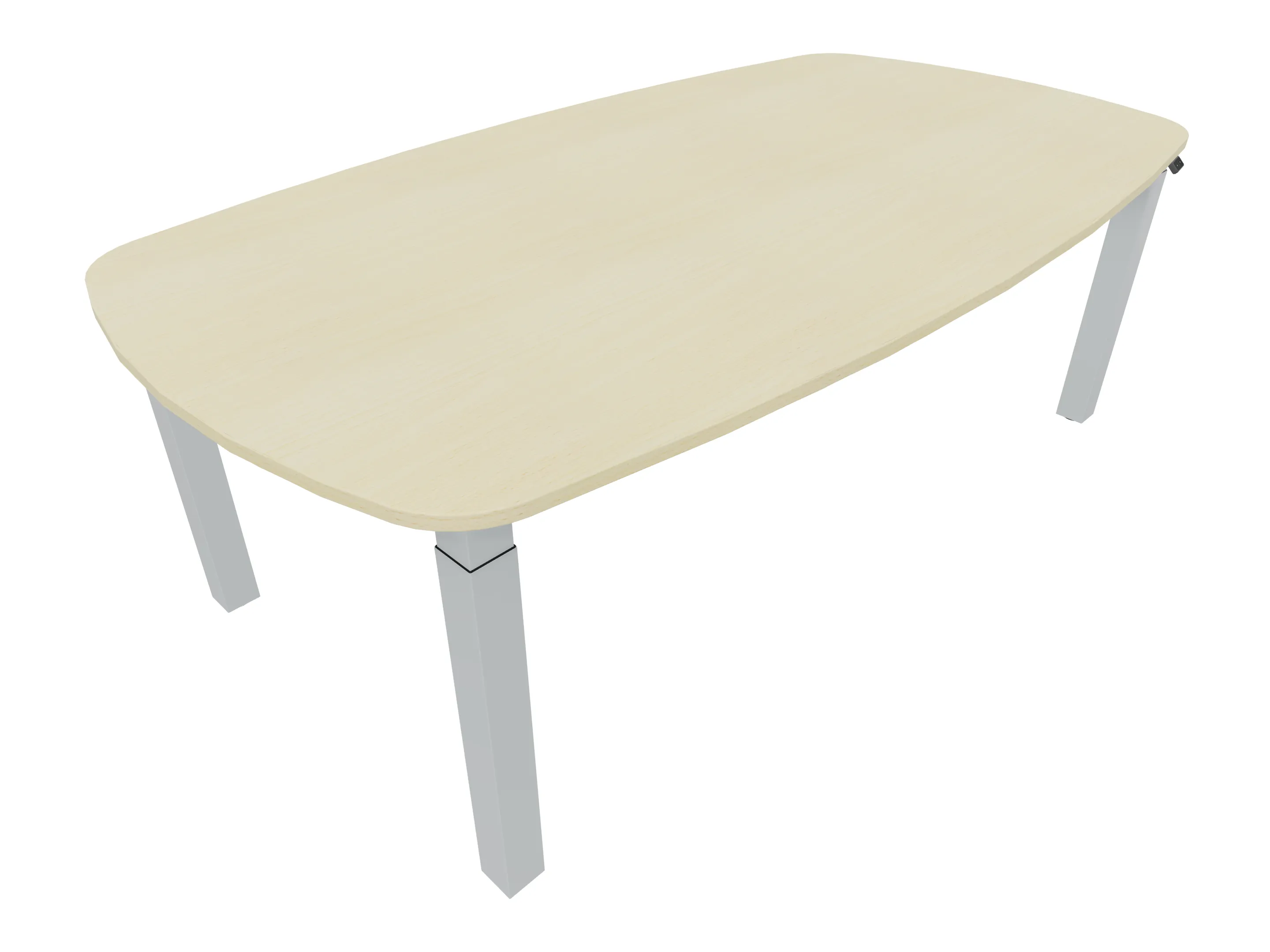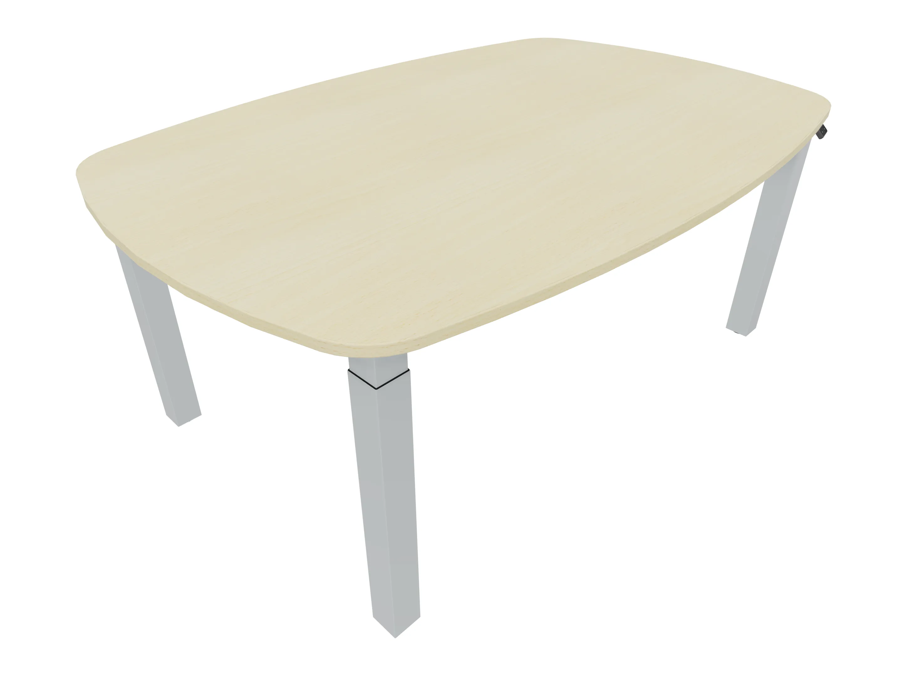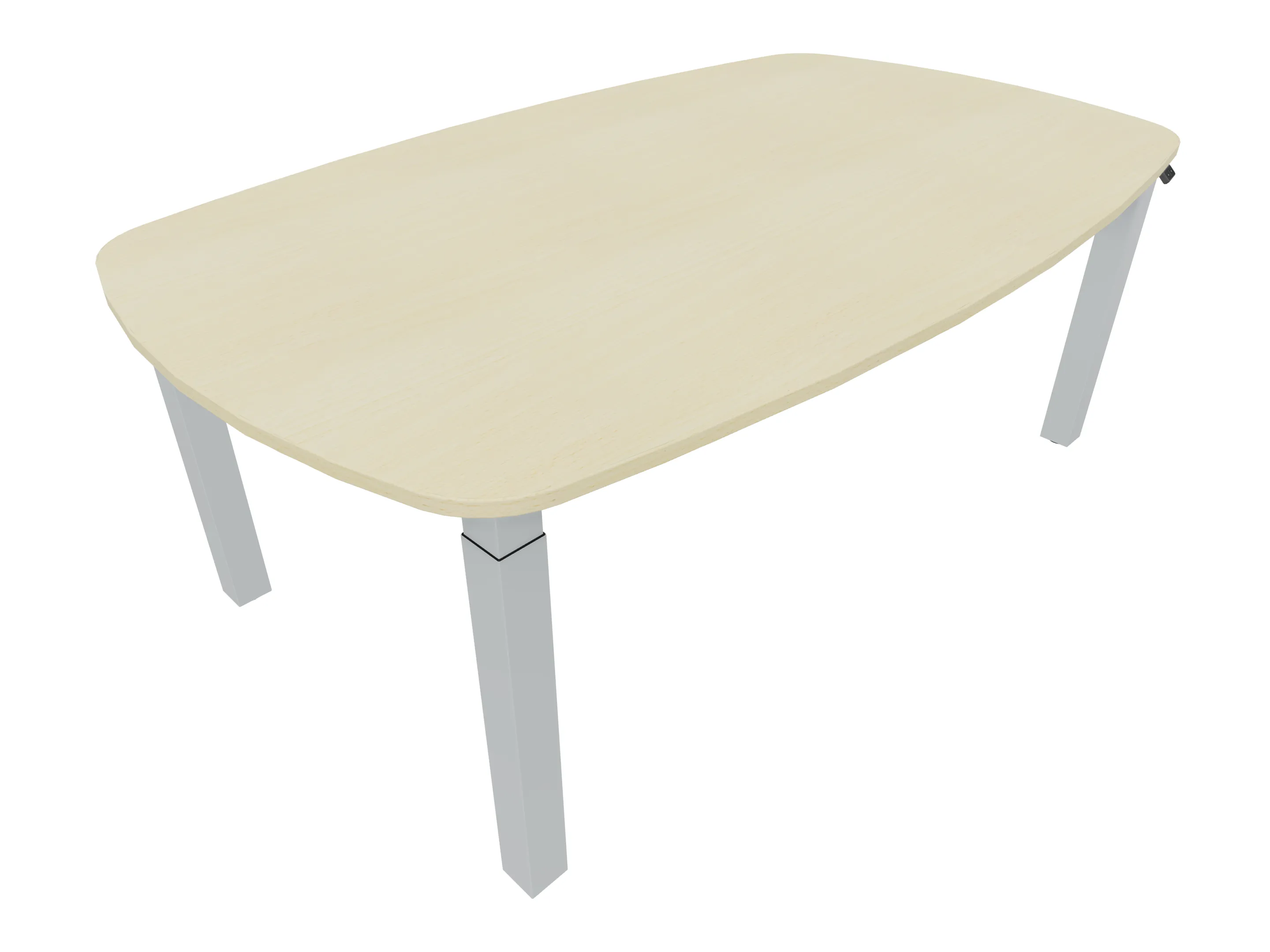 Elektrisch hoogte instelbare tonvormige vergadertafel met ronde hoeken, tussen 720-1080mm, compleet met 4 poten en bediening. Afmeting: 2000 x 720 x 1200mm (BxHxD)