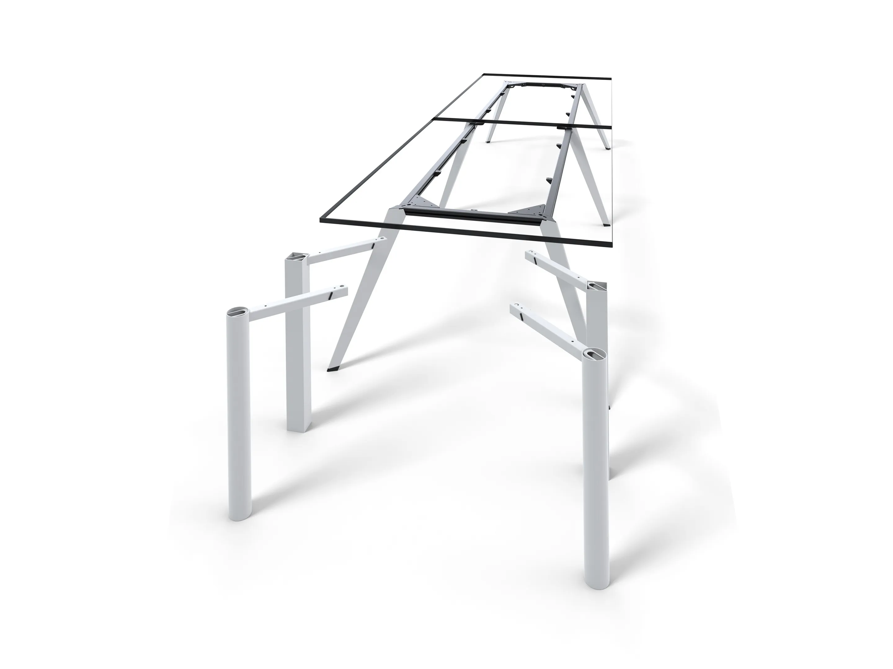 Rechthoekig blad, incl. traverse balken en aansluitingen voor 4 hoekpoten. Afmeting: 2200 x 25 x 1000mm (BxHxD)