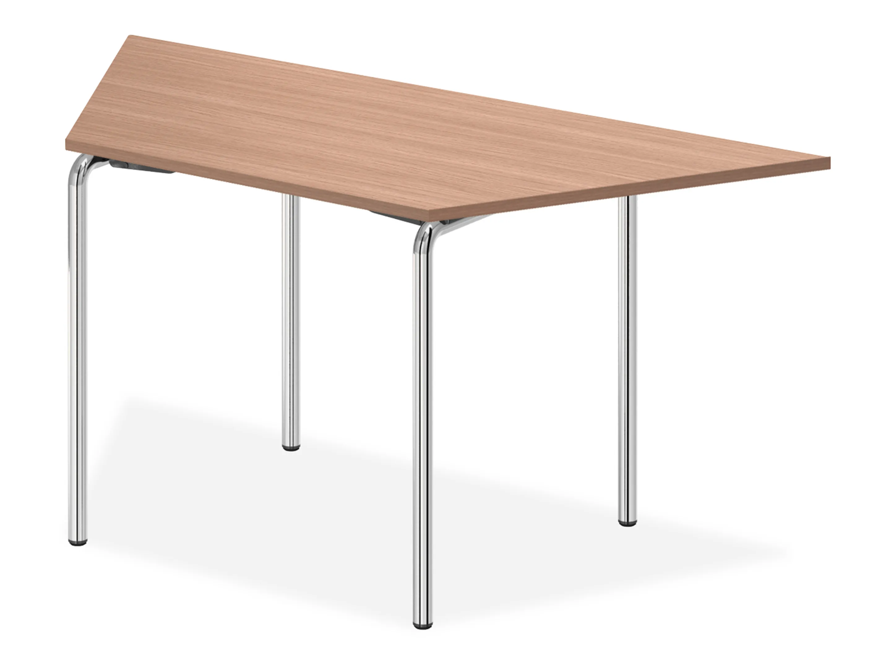 Klaptafel met U vormig 4-poots frame op glijders (stelbaar). Stapelhoogte 11cm, stapelbaar tot 10 stuks op transportwagen (zowel horizontaal als vertikaal).
