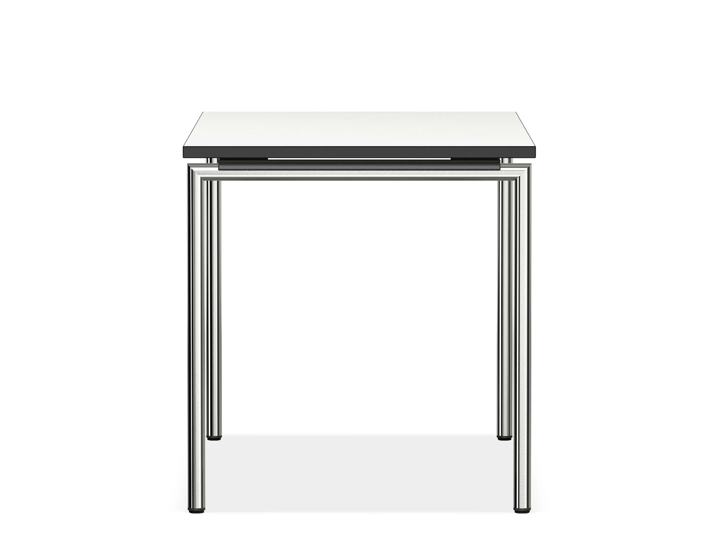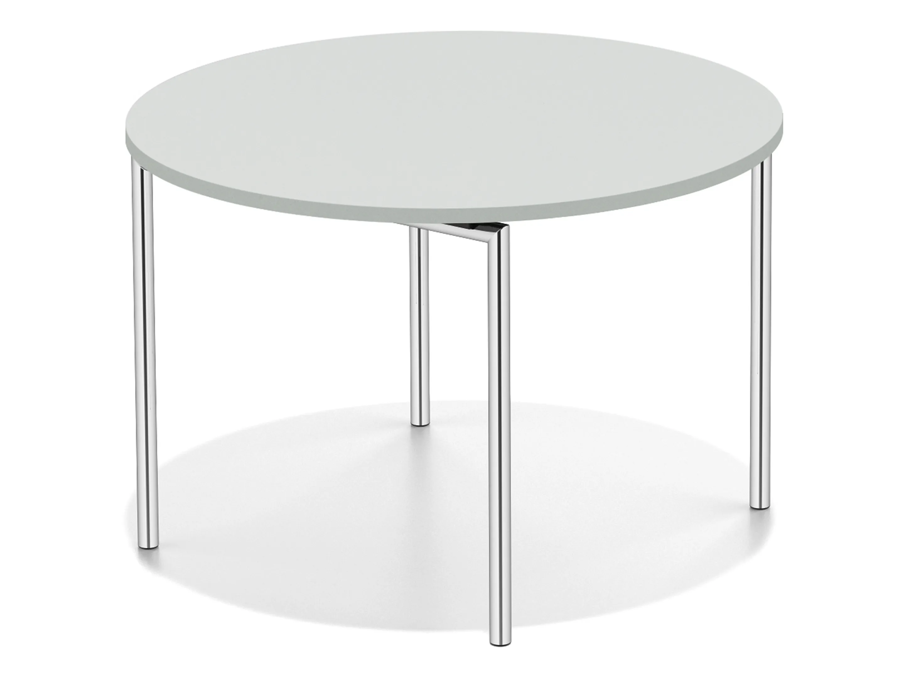 Klaptafel met U vormig 4-poots frame op glijders (stelbaar). Stapelhoogte 11cm, stapelbaar tot 10 stuks op transportwagen (zowel horizontaal als vertikaal).