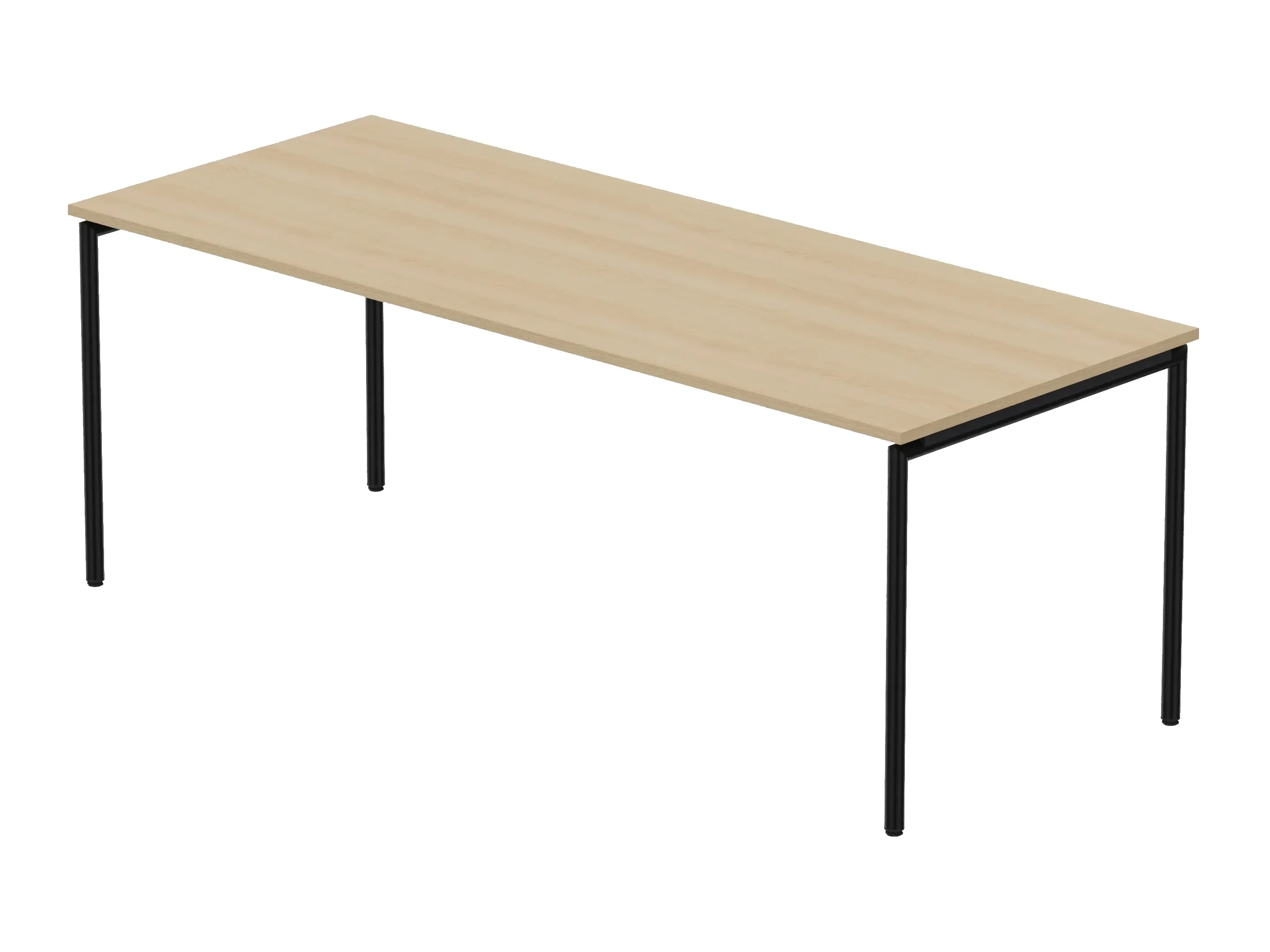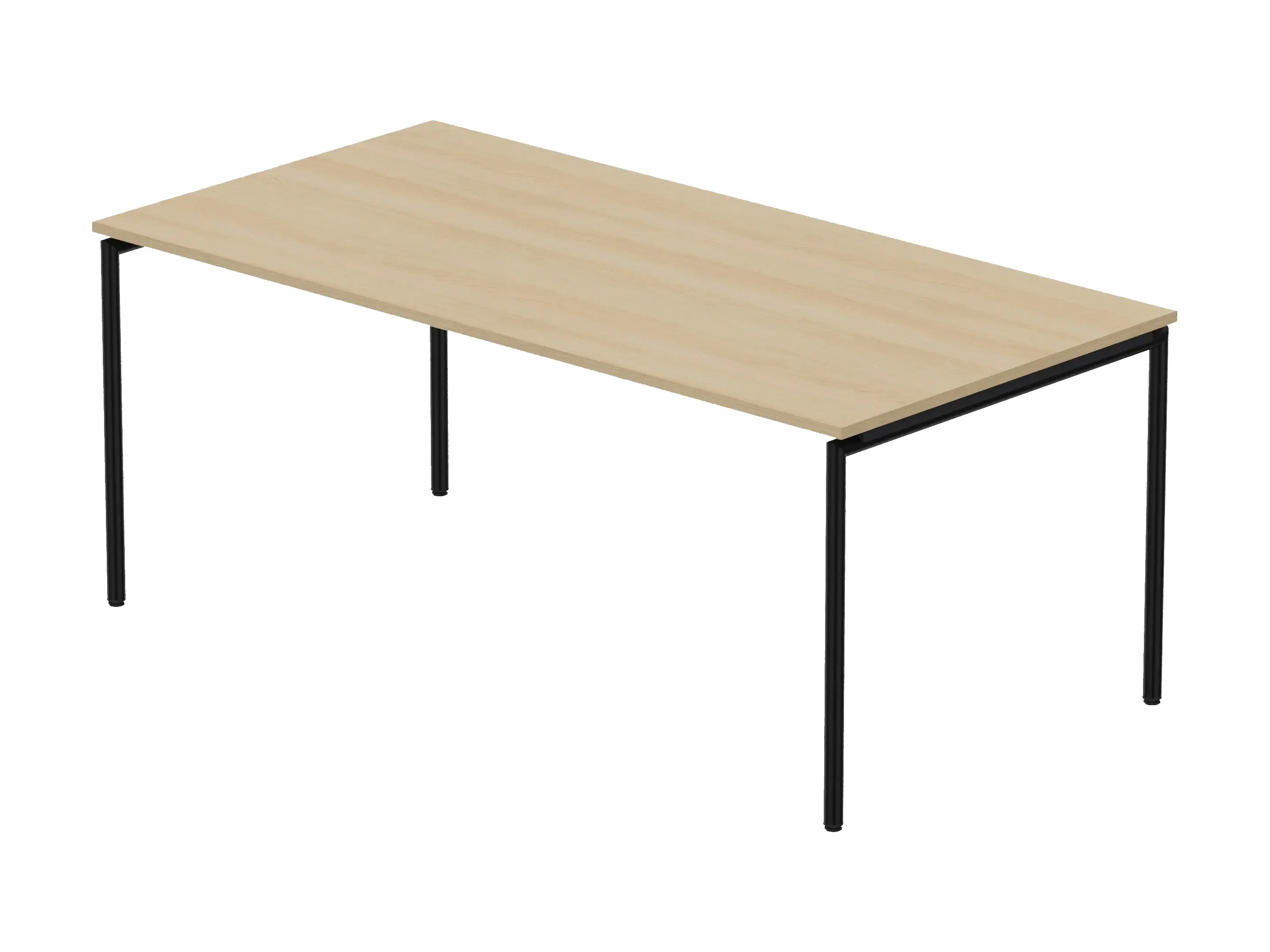 Tafel met U-vormig 4-poots frame met rechte hoeken voorzien van kunststof glijders.