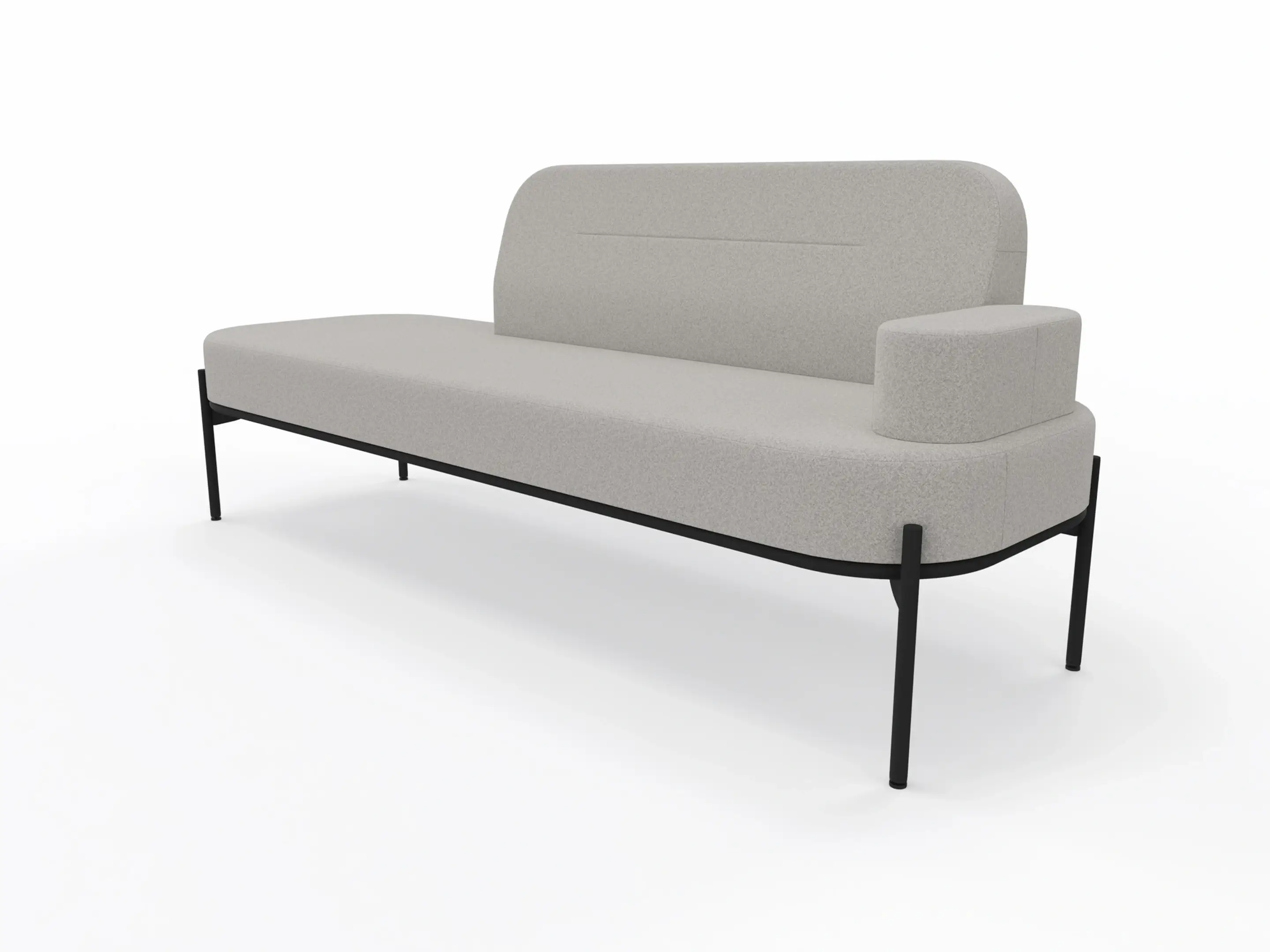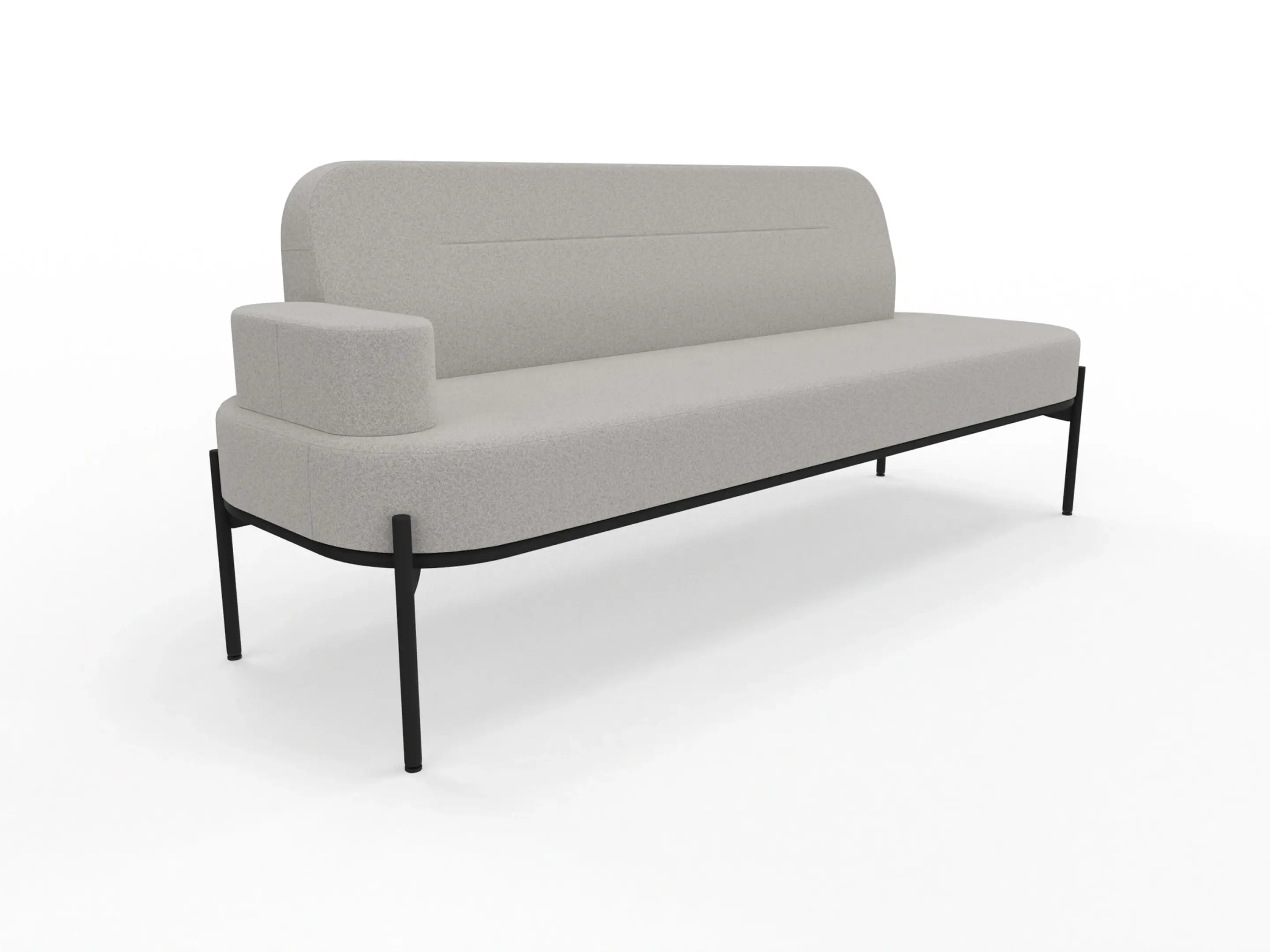 Volledig gestoffeerde 3-zits bank, 2000mm, 4-poots frame, incl. 1 armleuning, voorzien van een medium (M) rugleuning (1200mm breed). Zowel de armleuning en rugleuning zijn rechts gemonteerd.