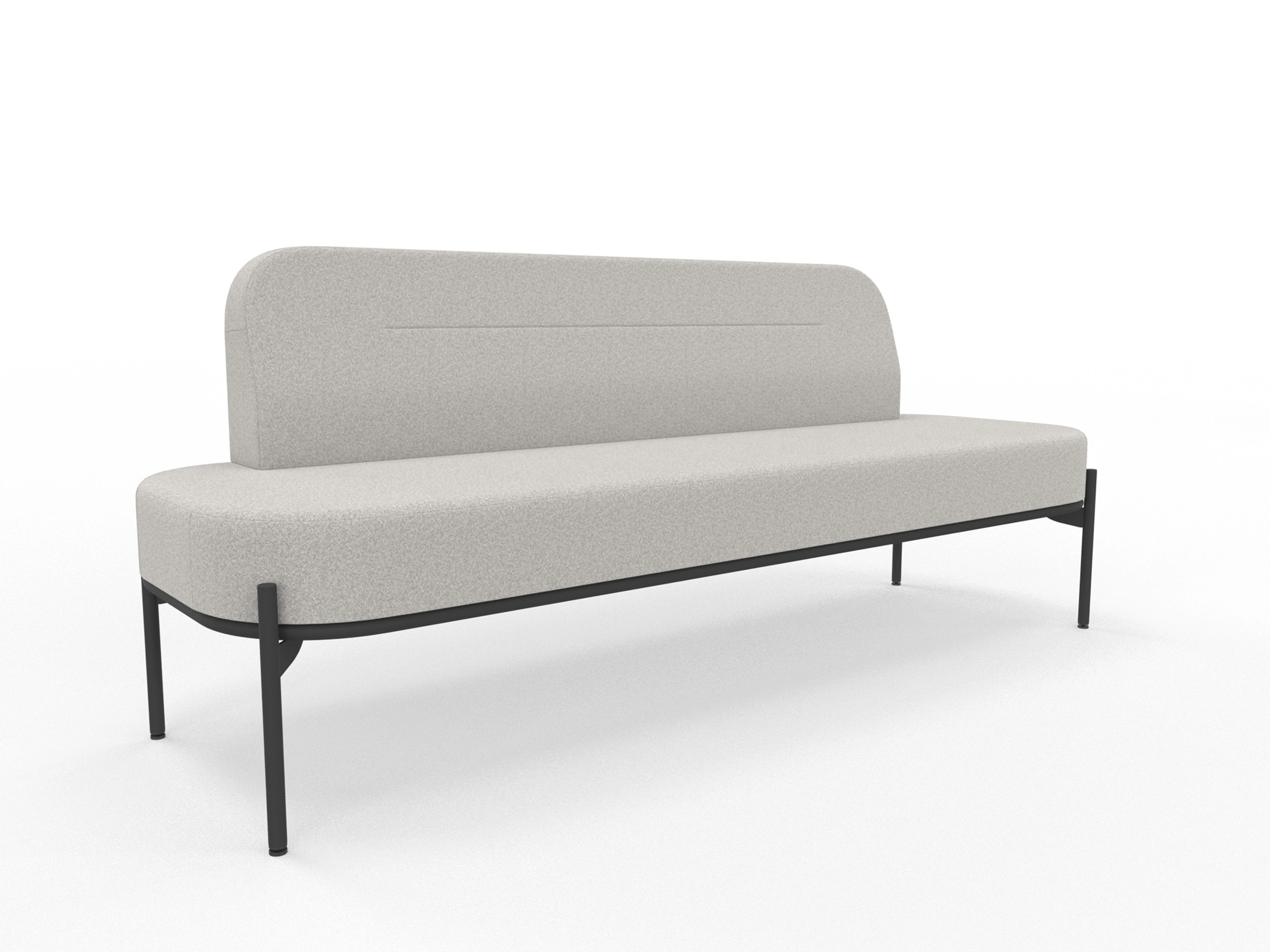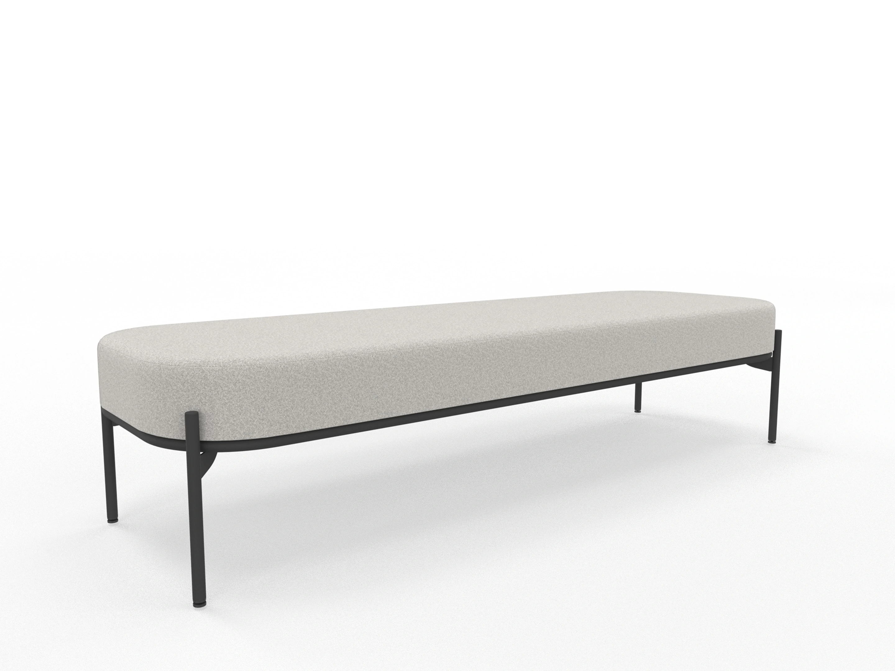 Volledig gestoffeerde 3-zits poef, 2000mm, 4-poots frame, excl. arm- en rugleuningen