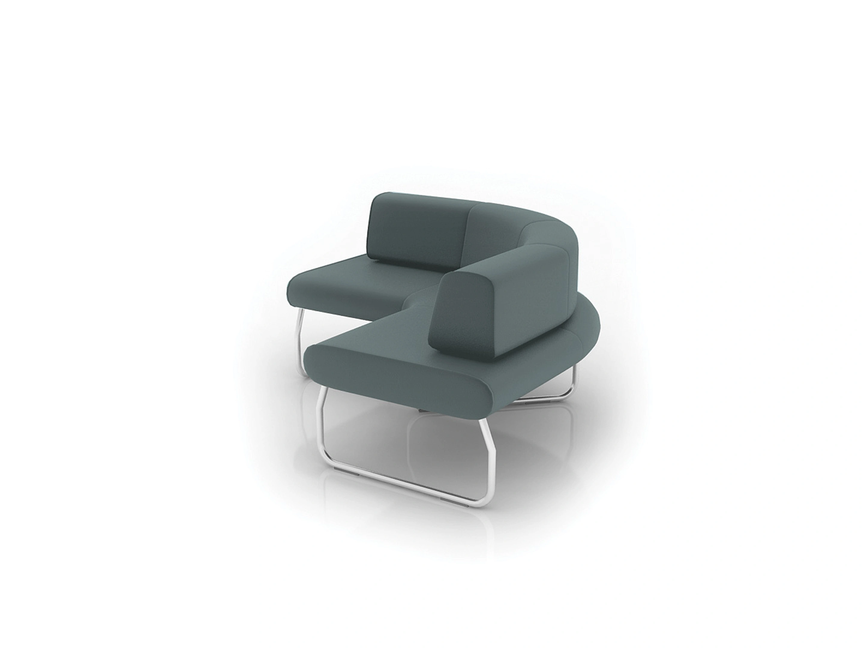 Volledig naar buiten gebogen gestoffeerde 2-zits bank met sledeframe van 90°, inclusief rugleuning