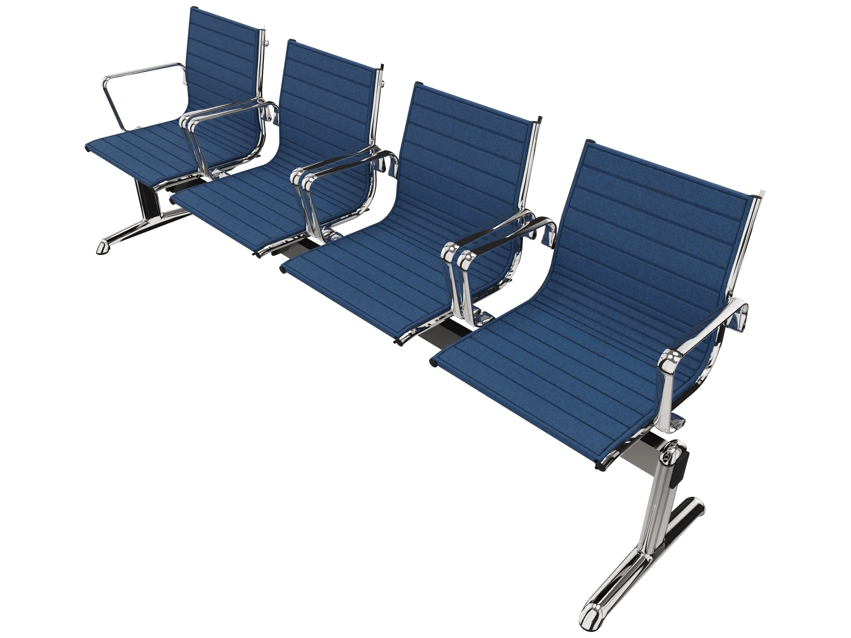 Wachtkamerbank in "ribbed" 4-zits uitvoering "ribbed", met 2 poten, en zonder armsteunen. Frame altijd verchroomd.