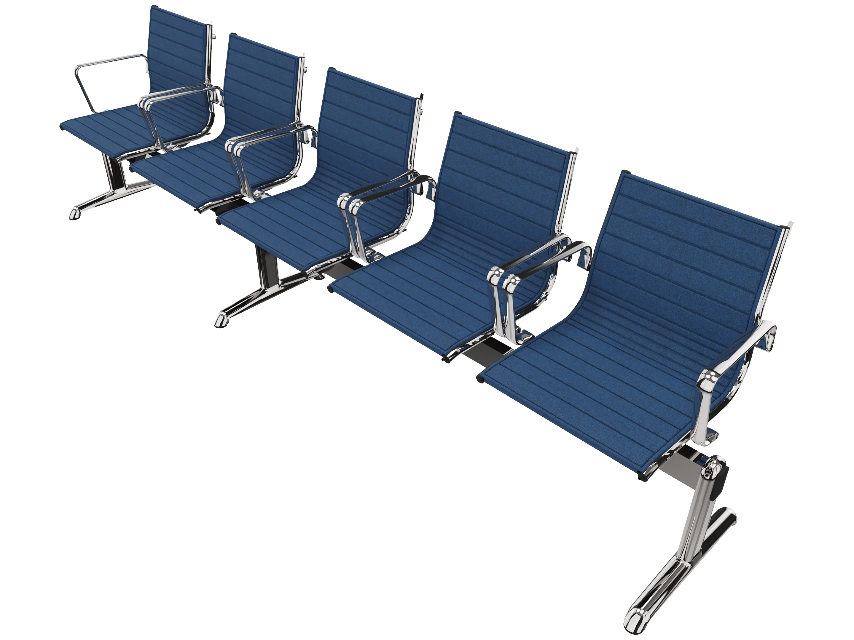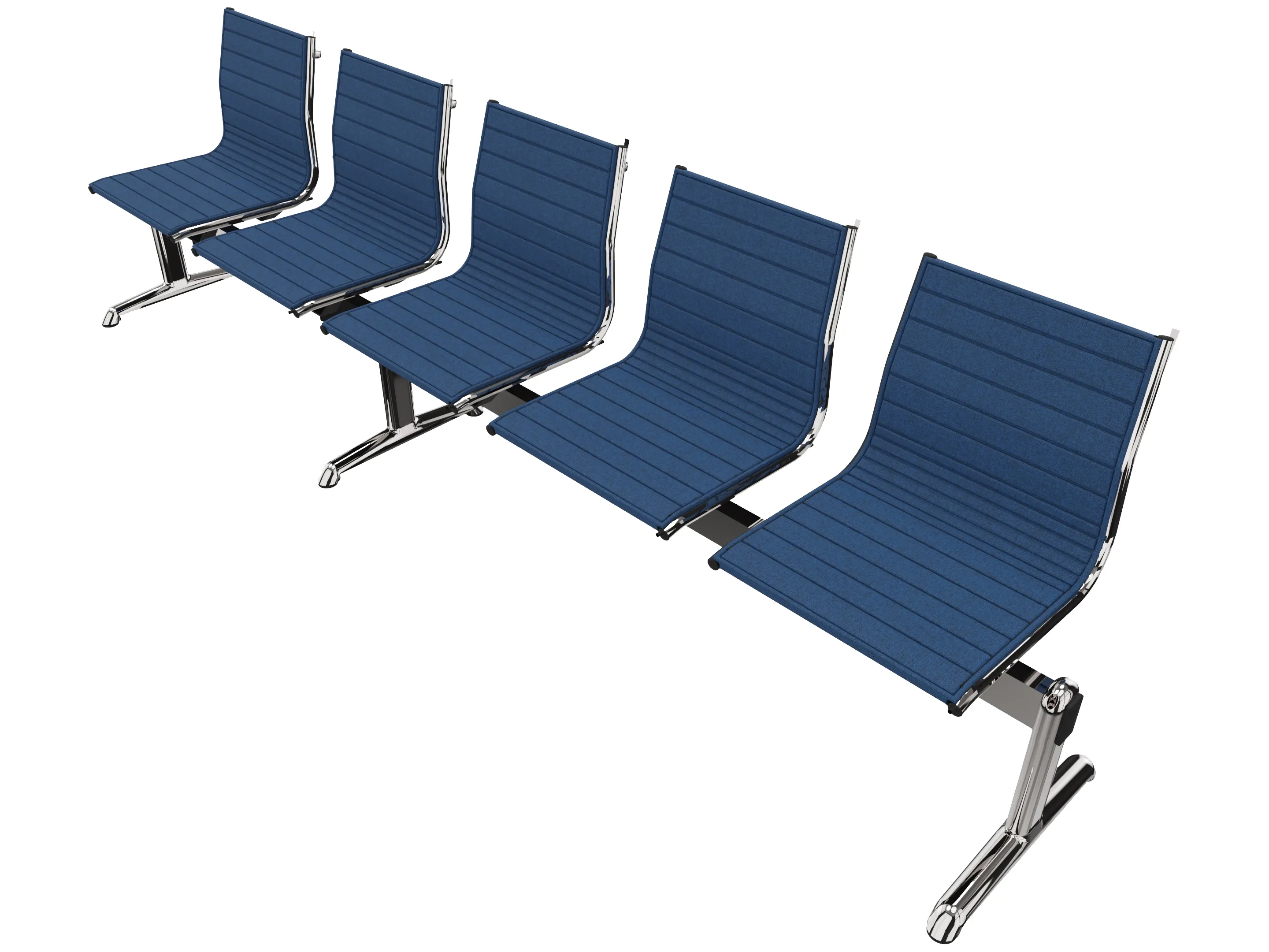 Wachtkamerbank in "ribbed" 5-zits uitvoering "ribbed", met 2 poten, en zonder armsteunen. Frame altijd verchroomd.