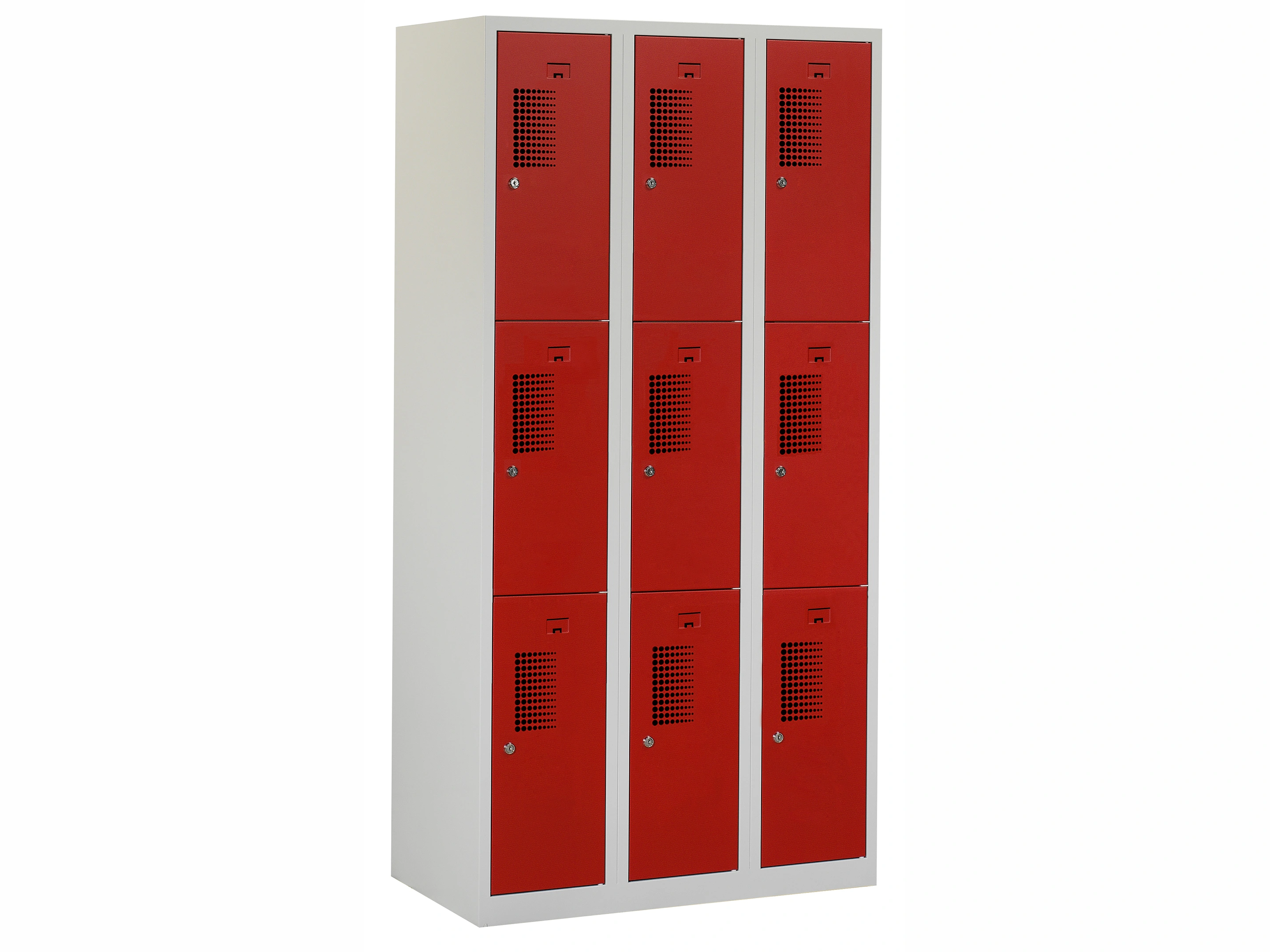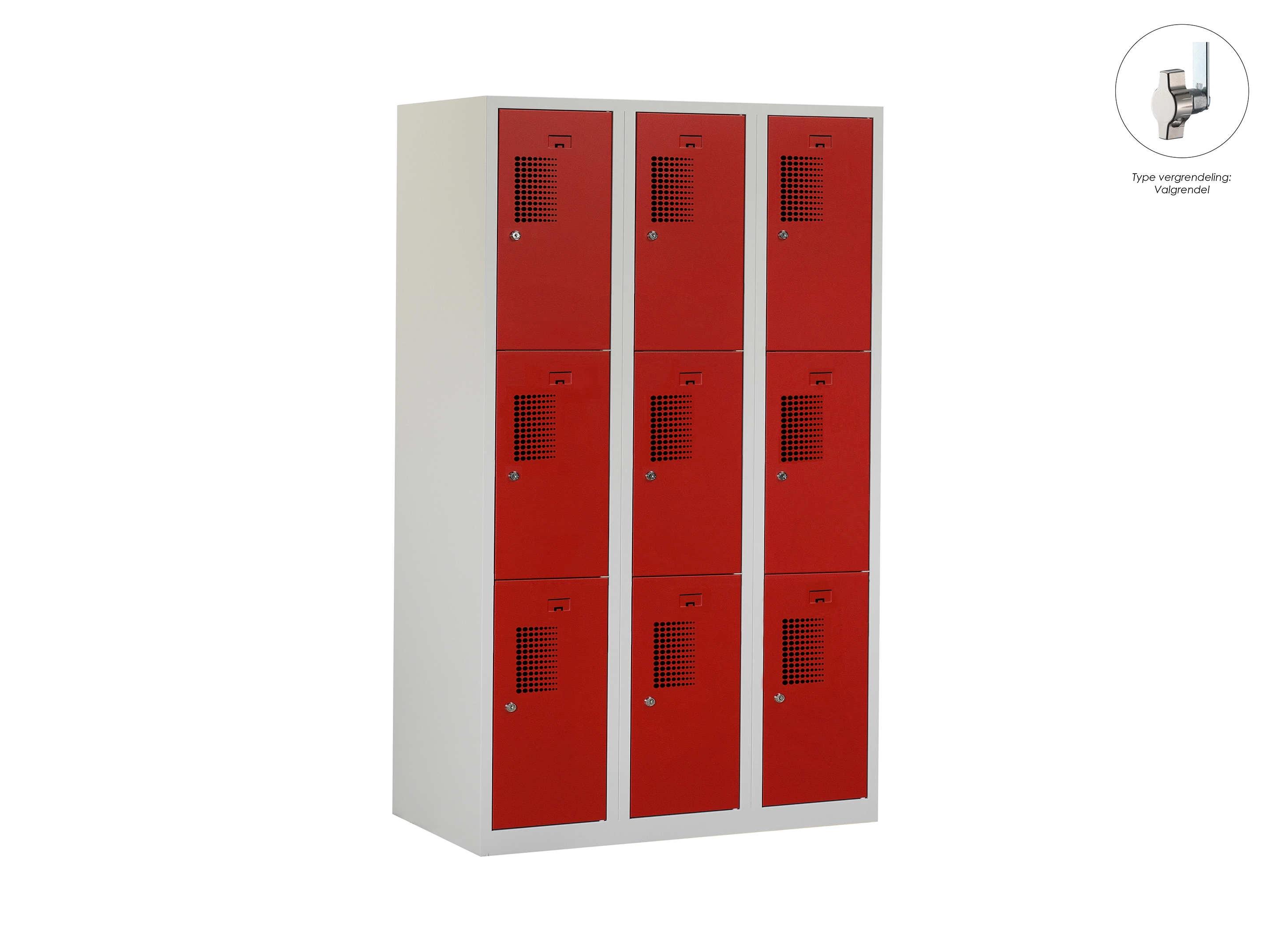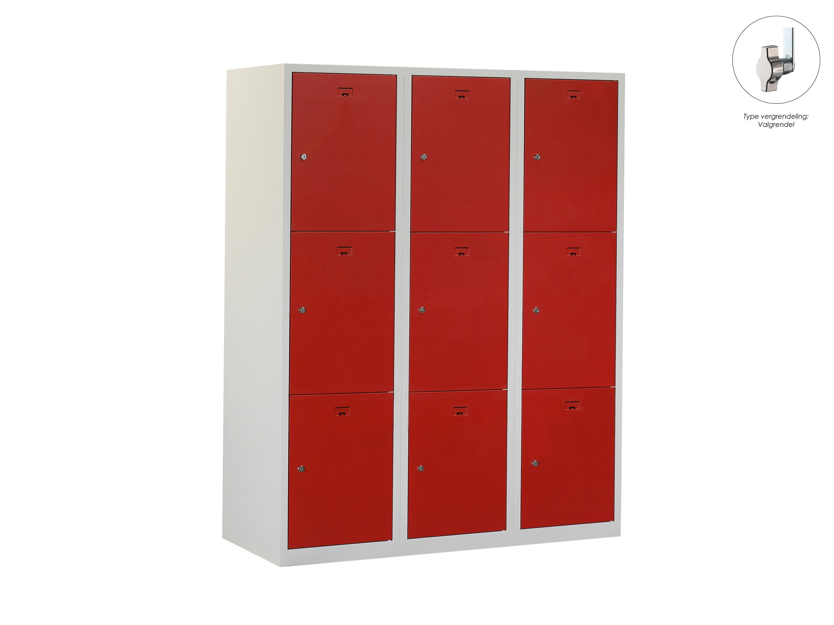Locker NH - 3 kolomen, 9 deuren, 111,6x90x50 cm, grijs/rood, valgrendel
