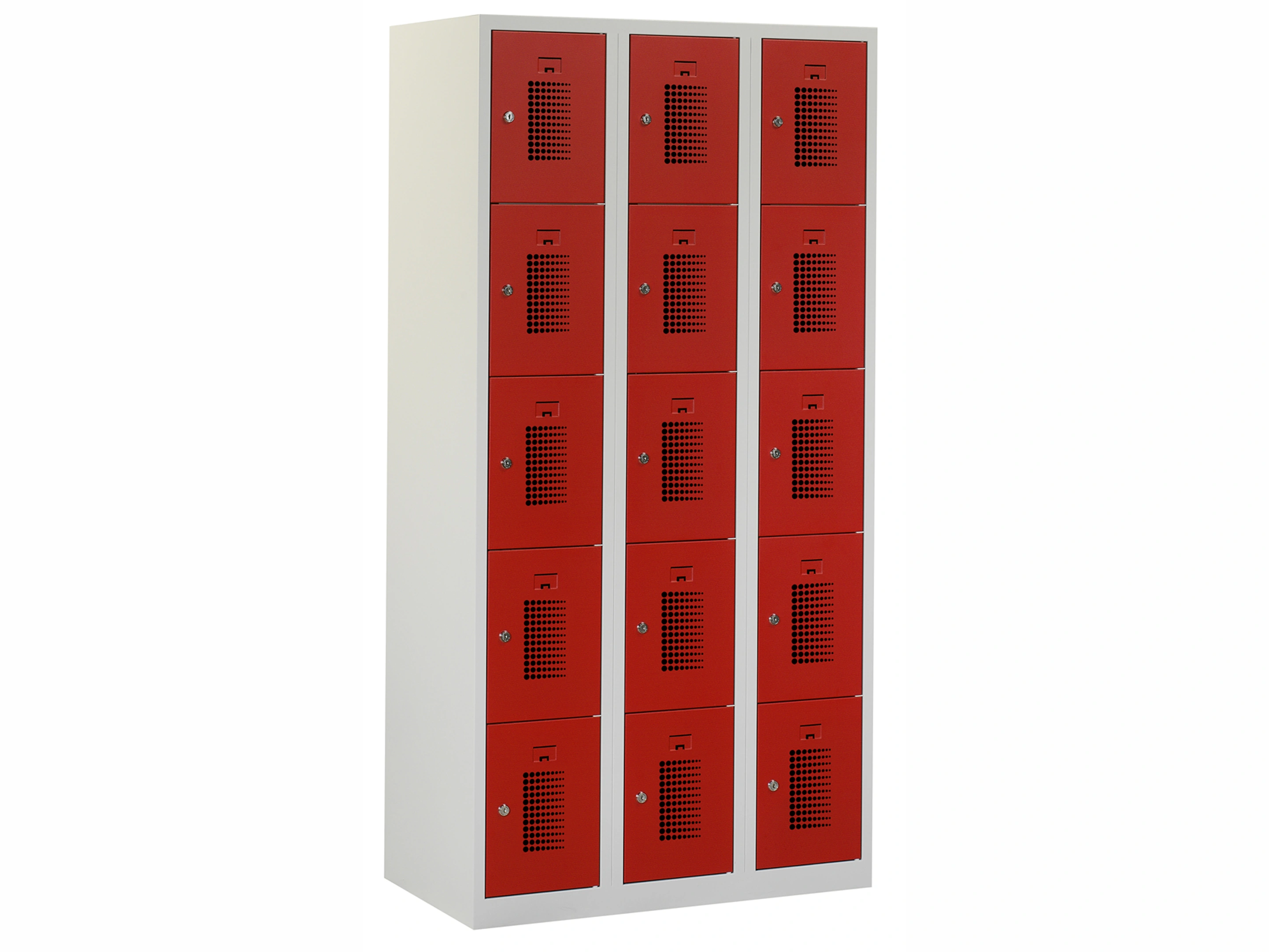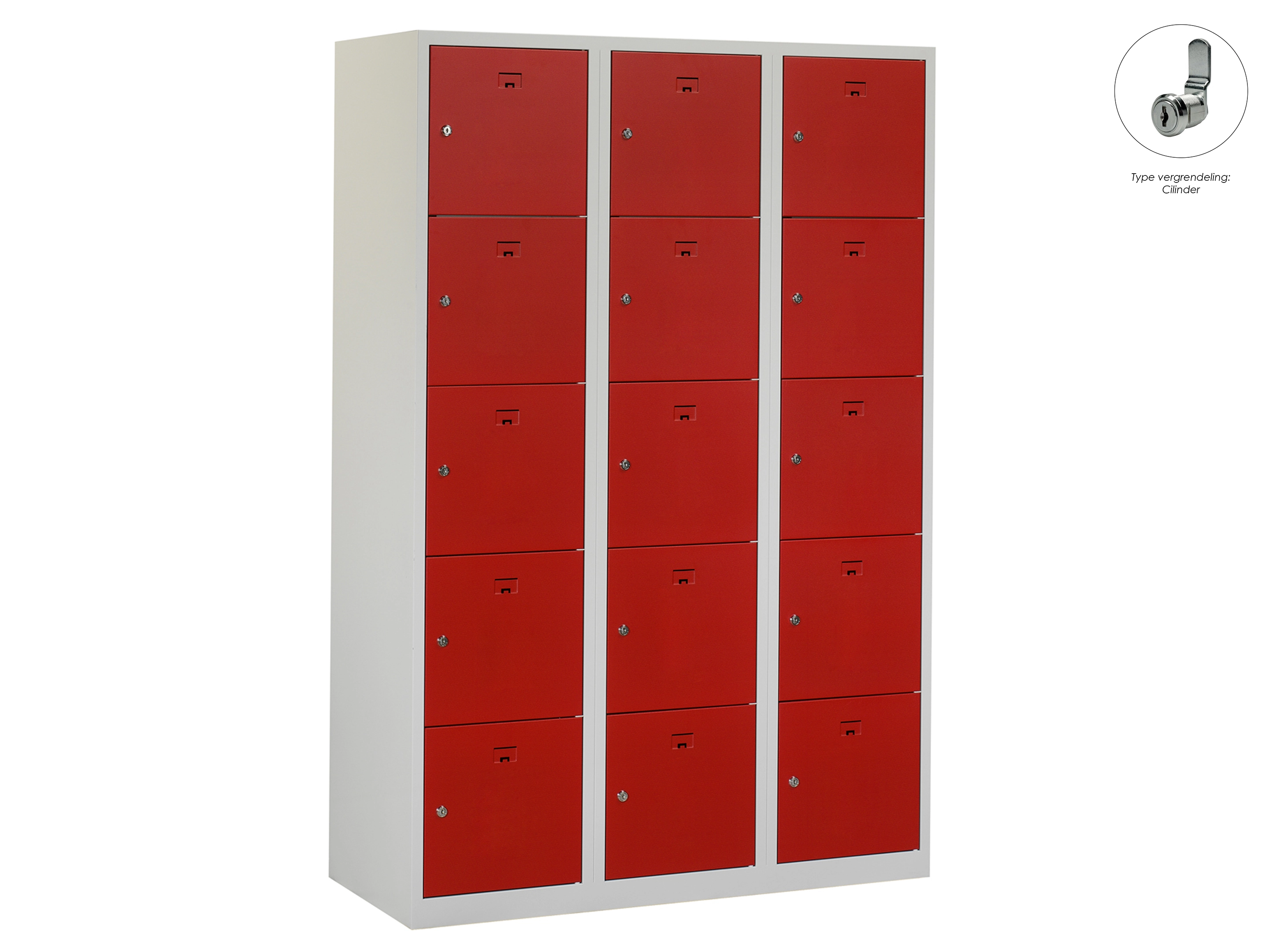 Locker NH - 3 kolomen, 15 deuren, 180x120x50 cm, grijs/rood, cilinder