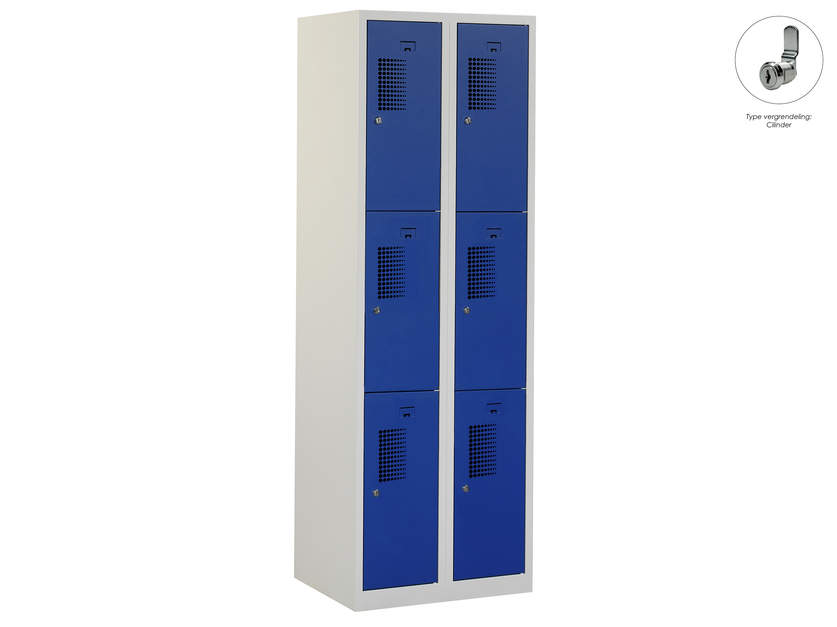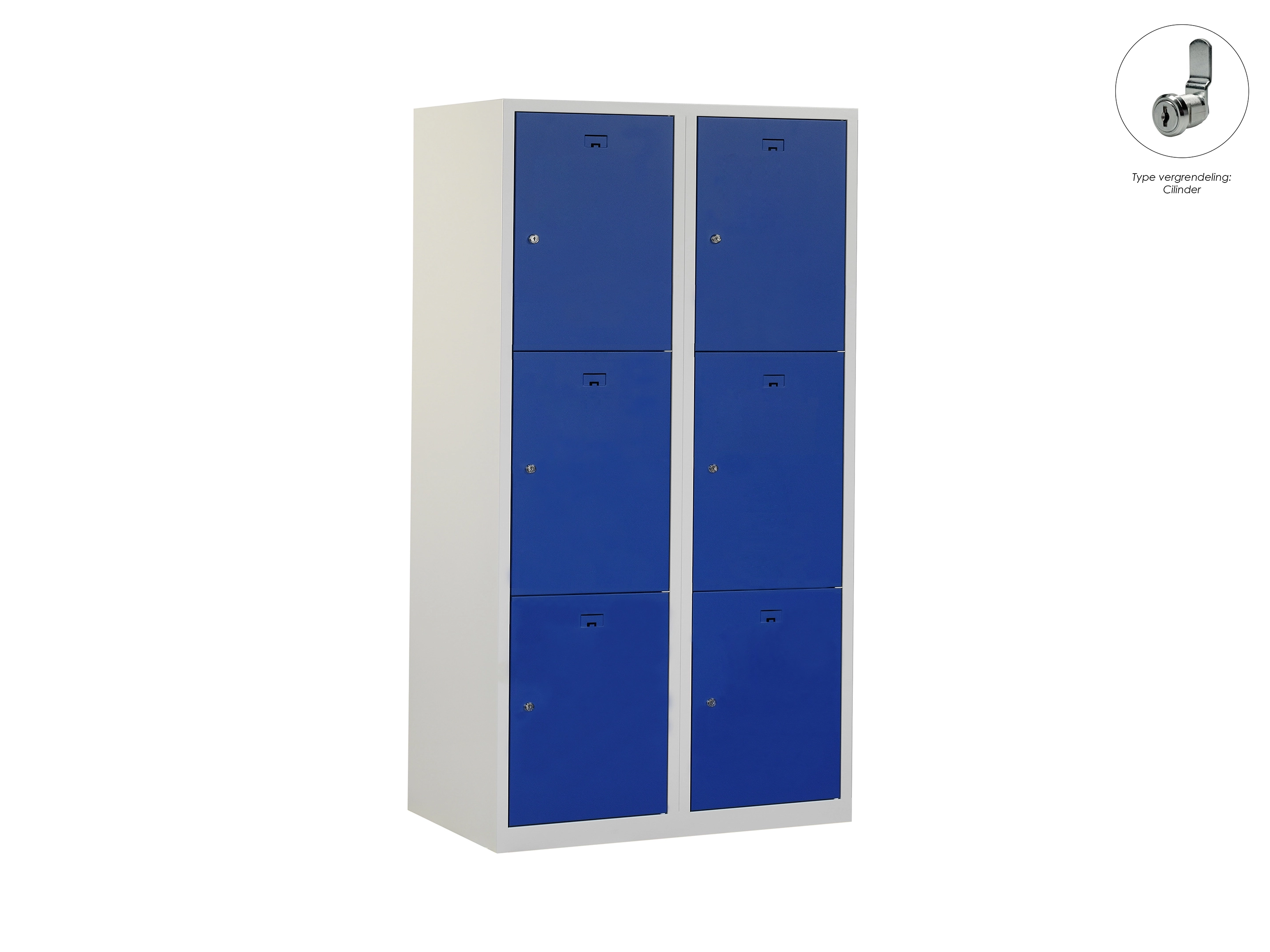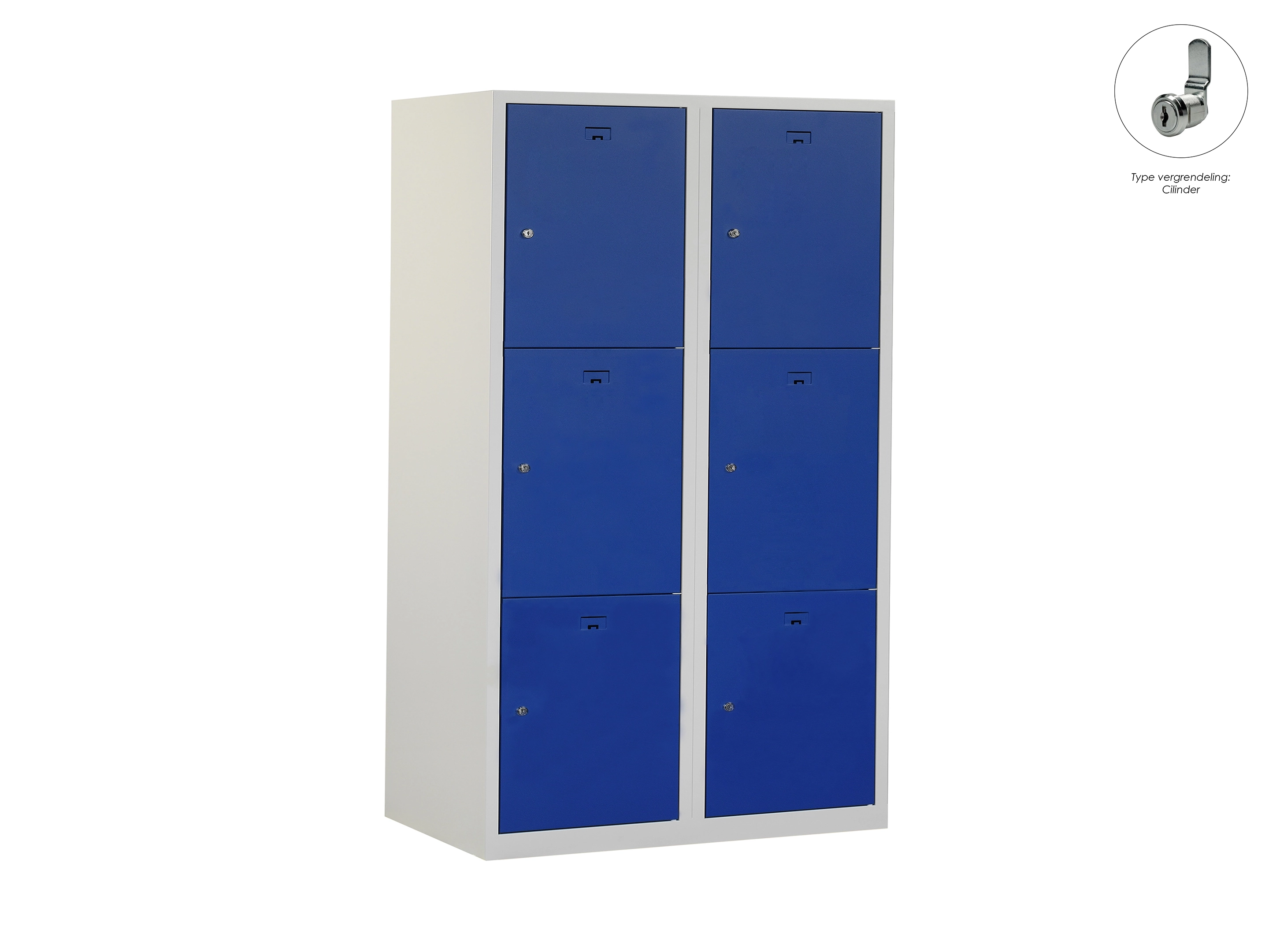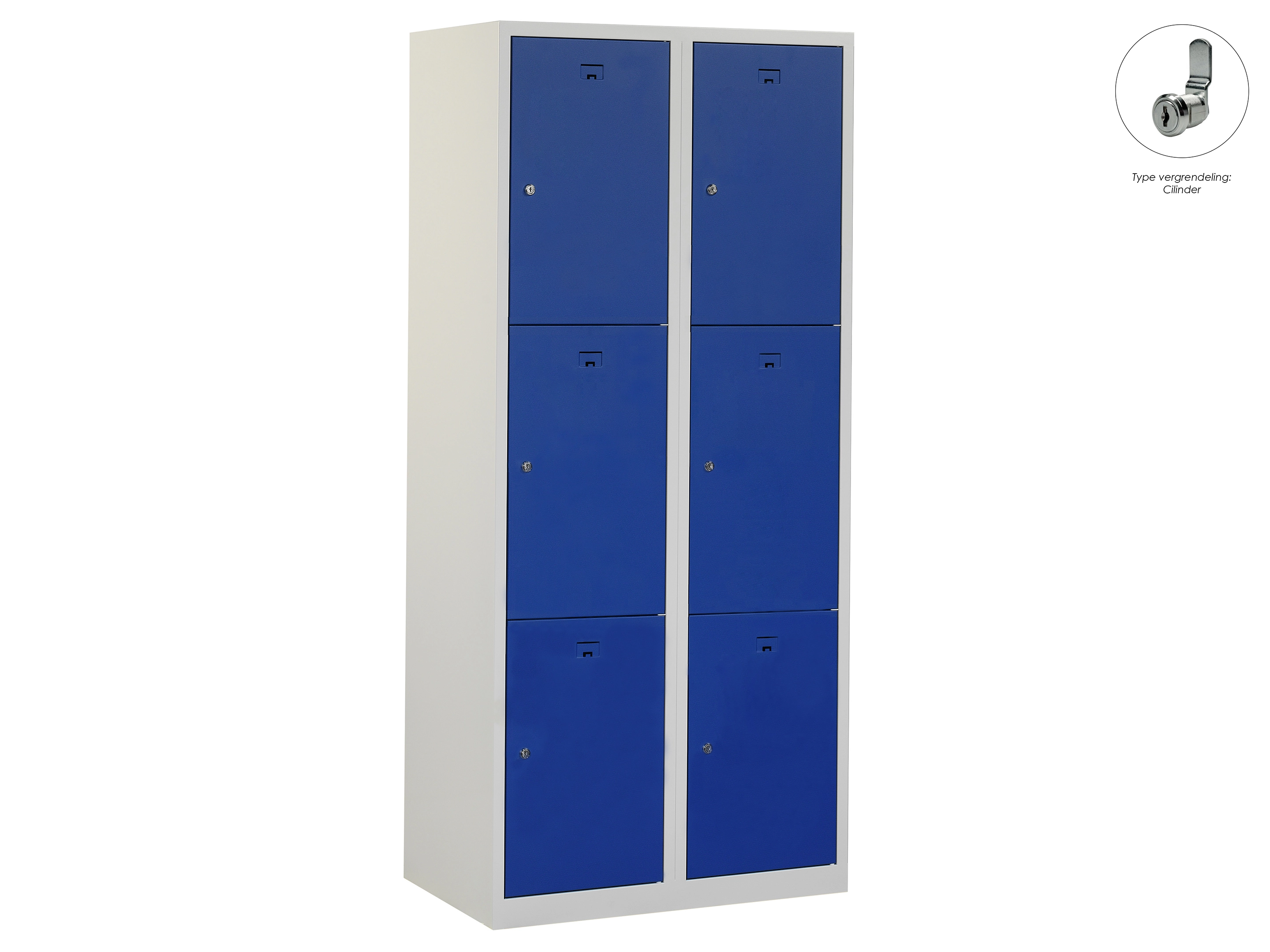 Locker NH - 2 kolomen, 6 deuren, 180x80x50 cm, grijs/blauw, cilinder
