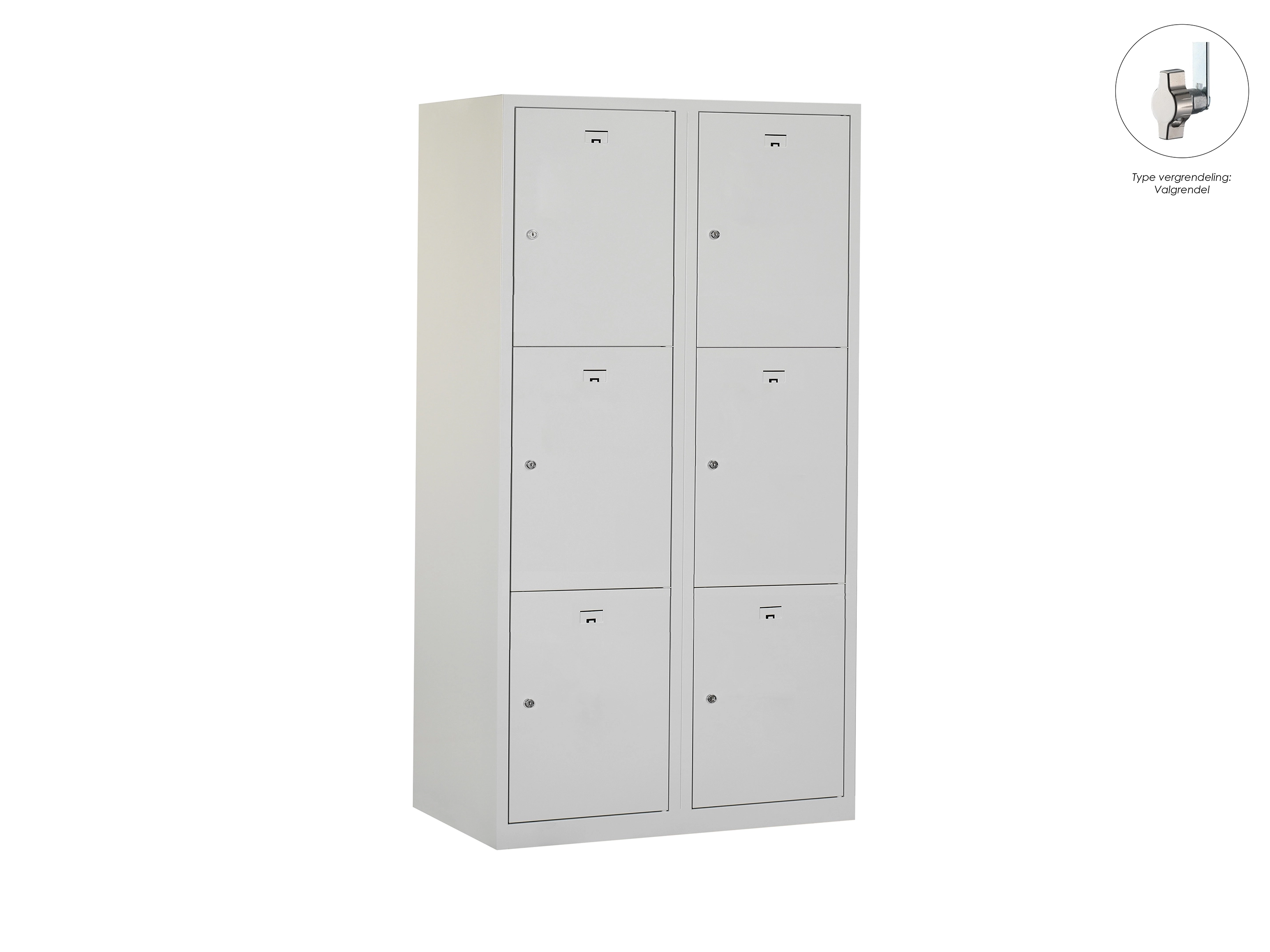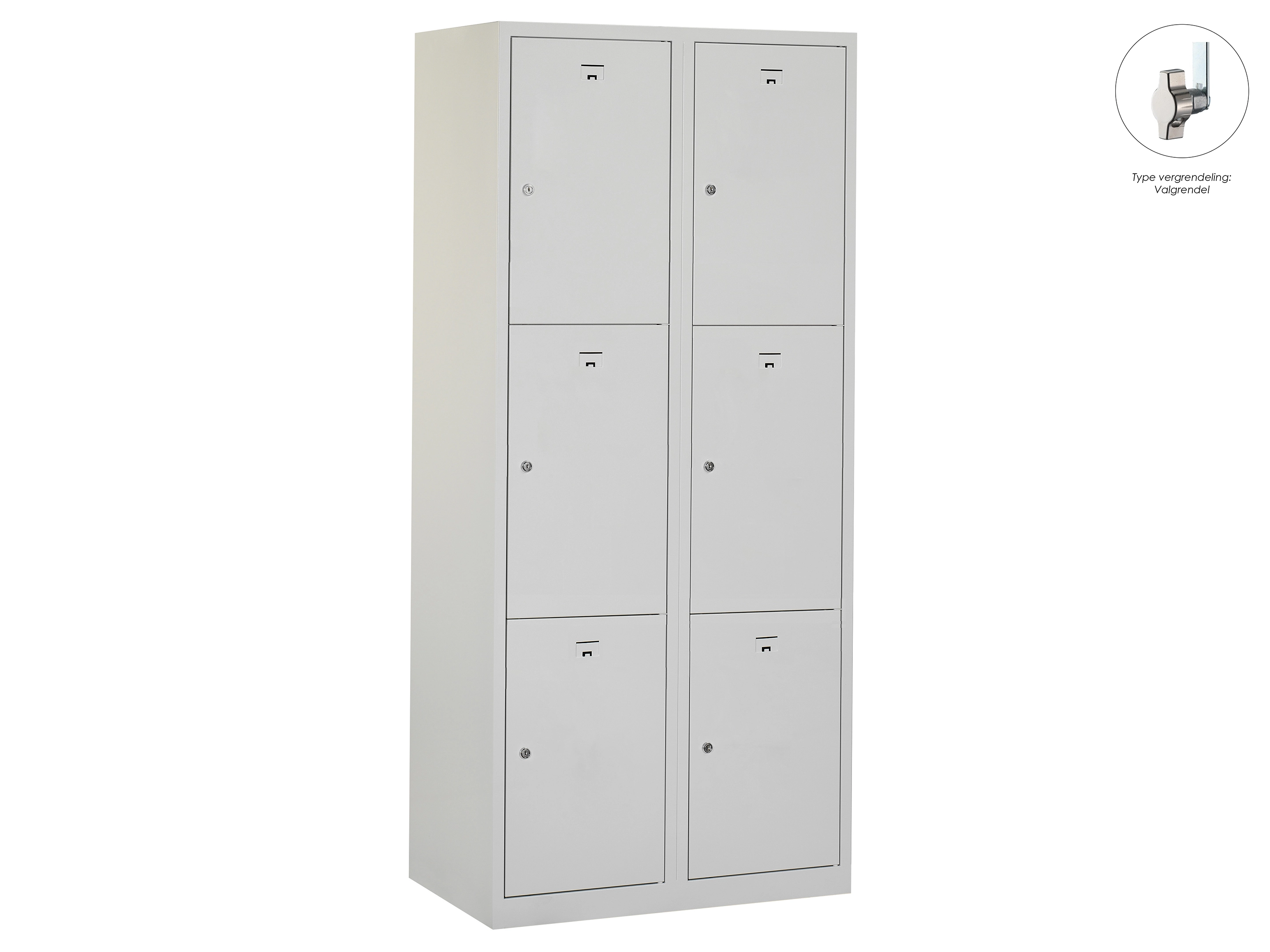 Locker NH - 2 kolomen, 6 deuren, 180x60x50 cm, grijs/grijs, valgrendel