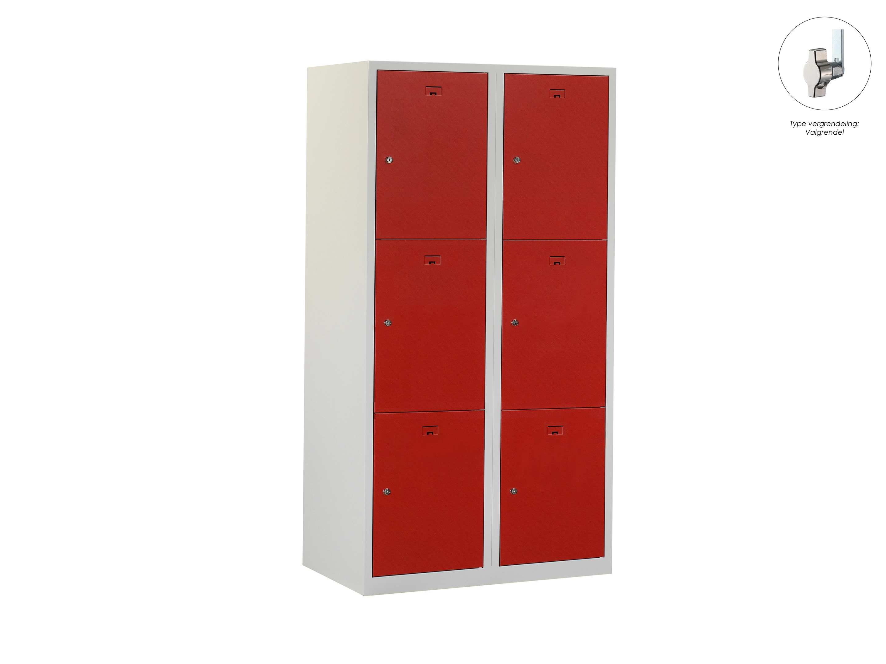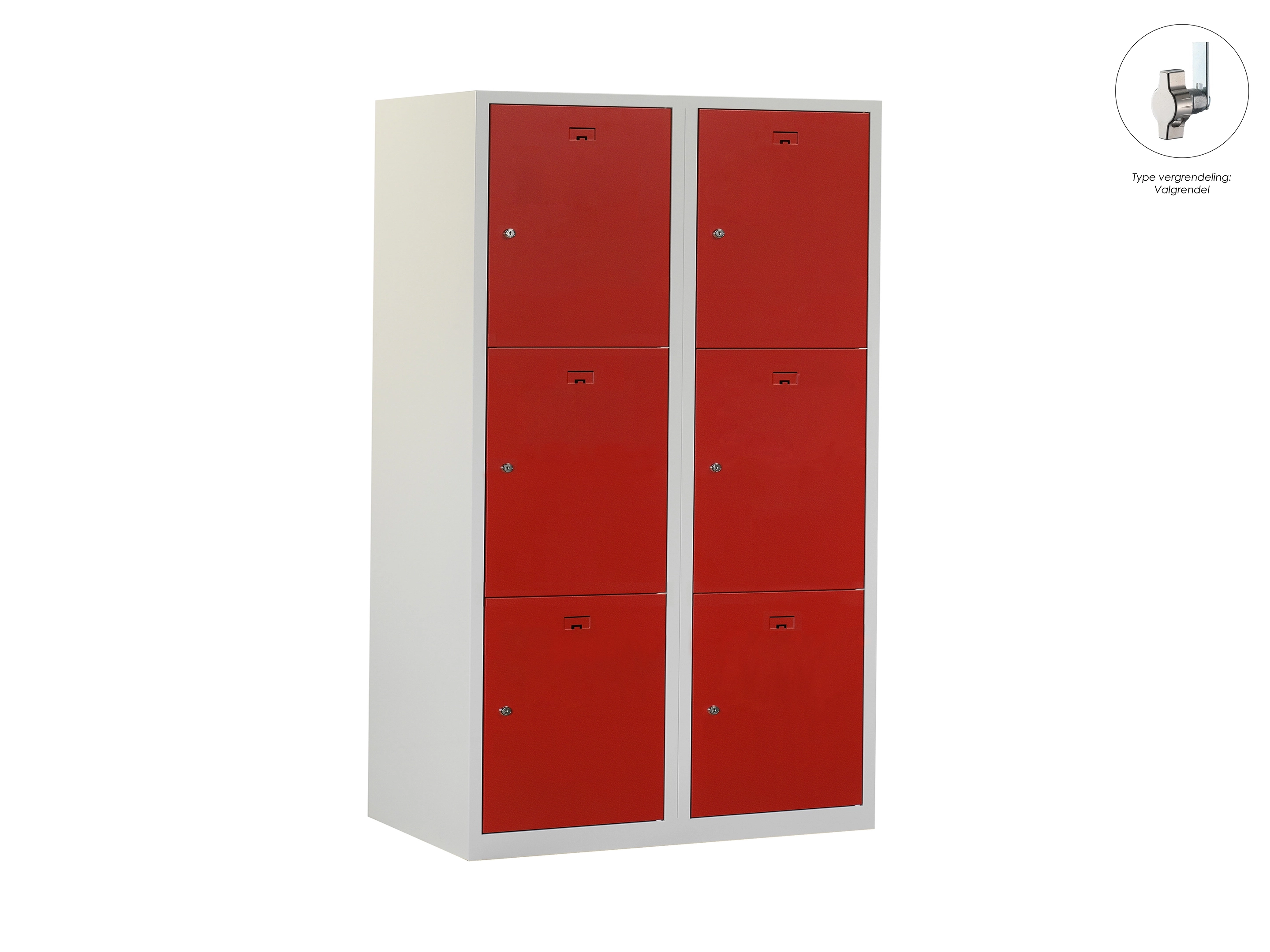 Locker NH - 2 kolomen, 6 deuren, 180x60x50 cm, grijs/rood, valgrendel