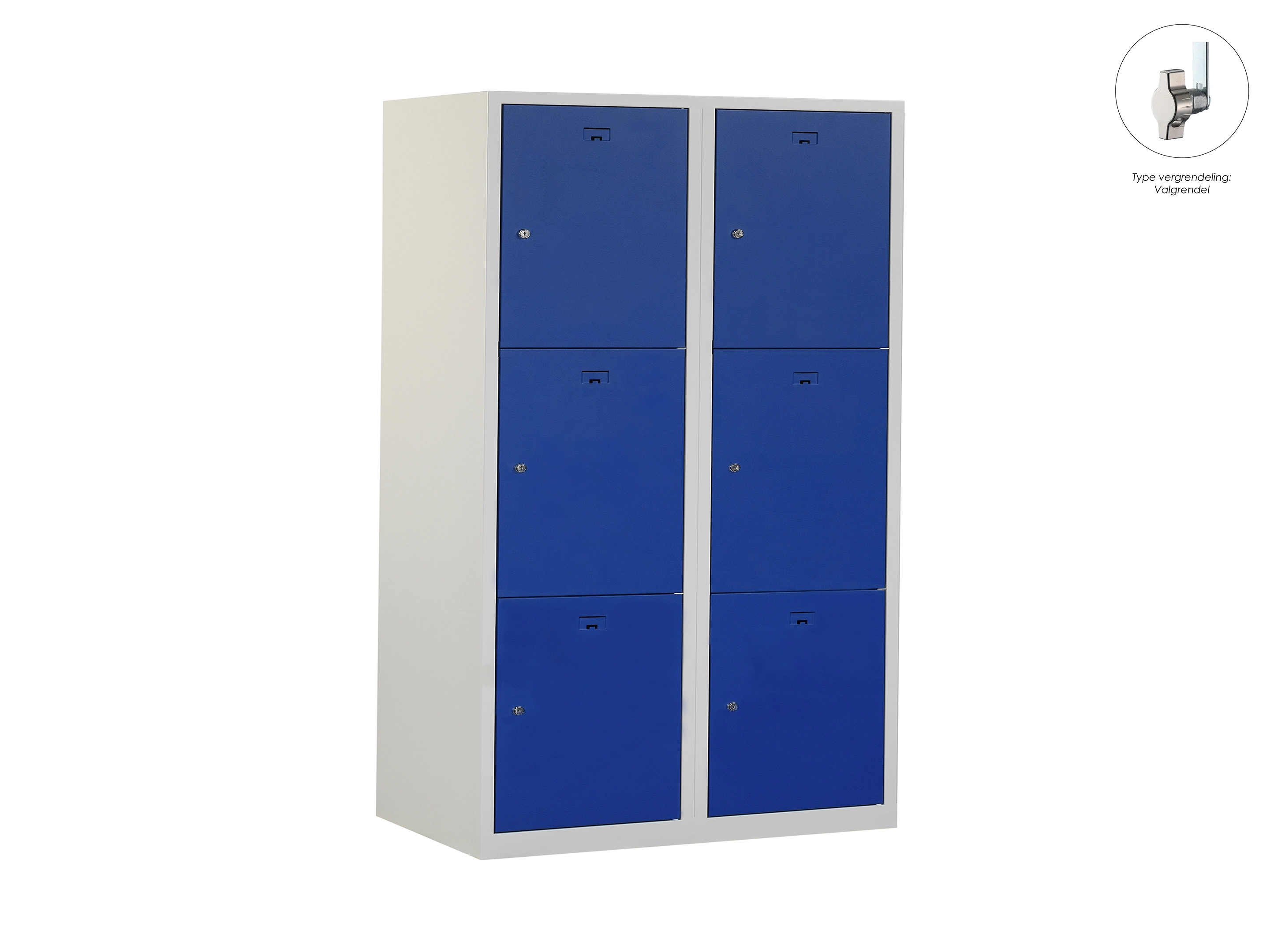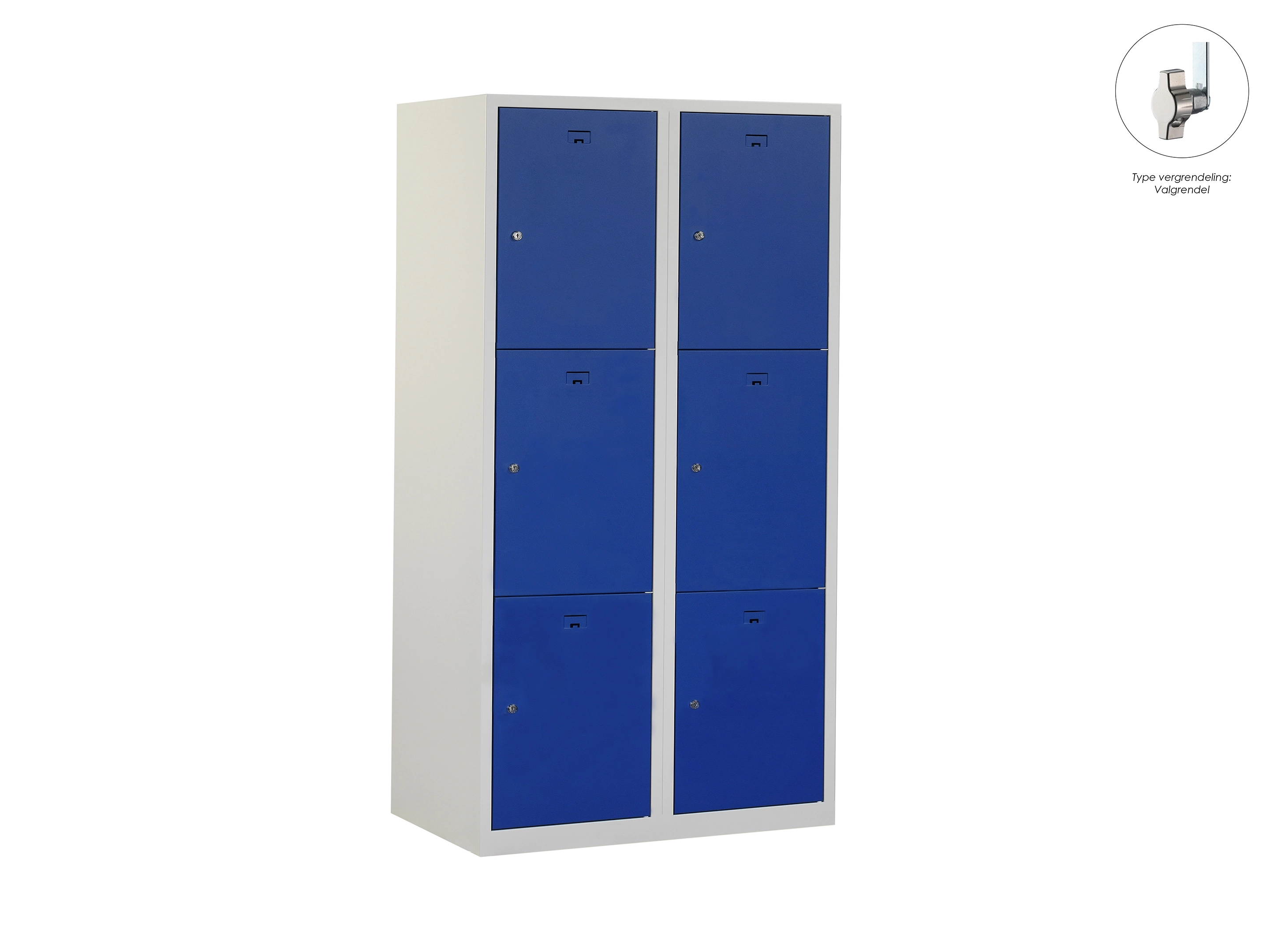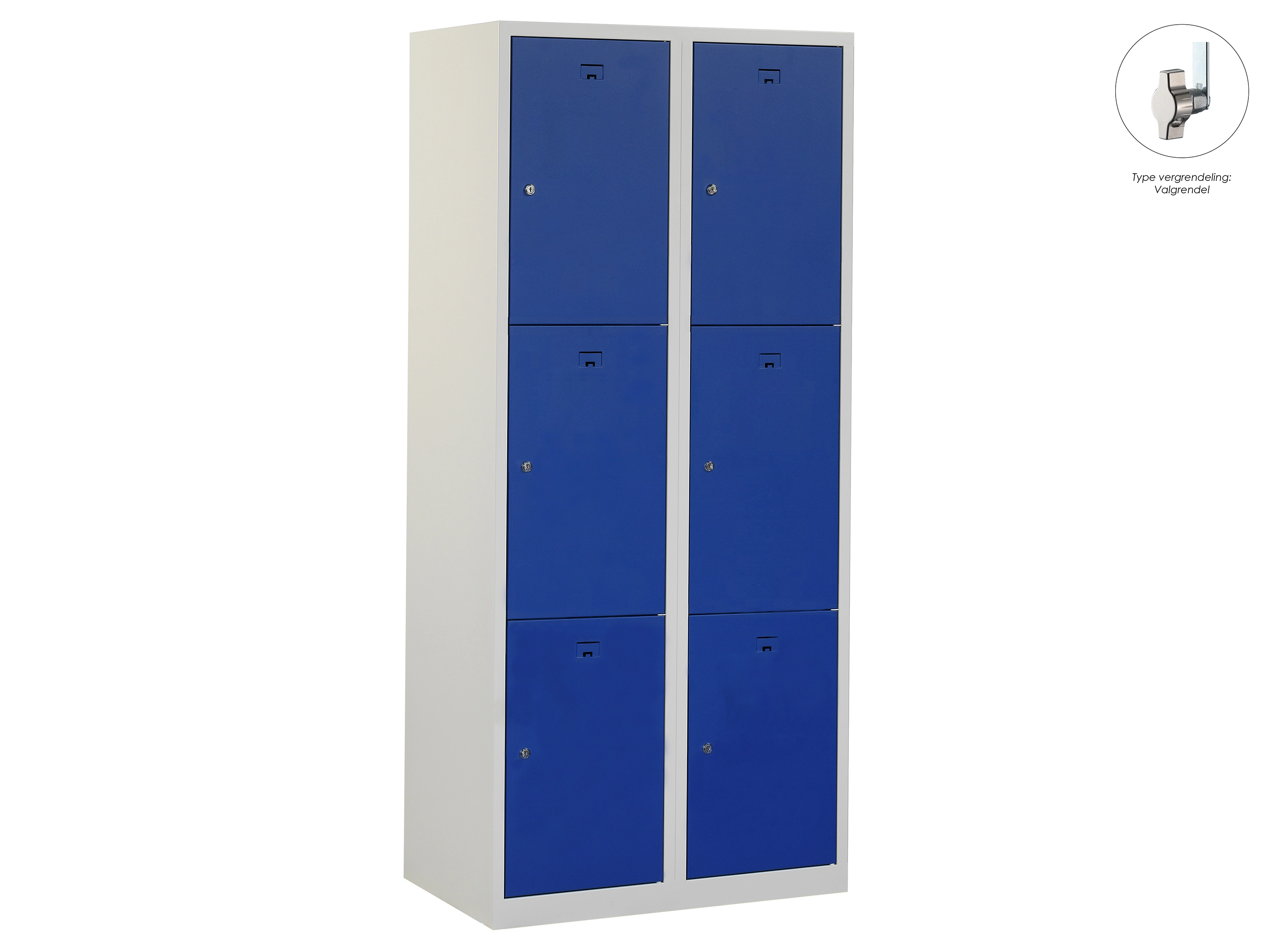 Locker NH - 2 kolomen, 6 deuren, 180x60x50 cm, grijs/blauw, valgrendel