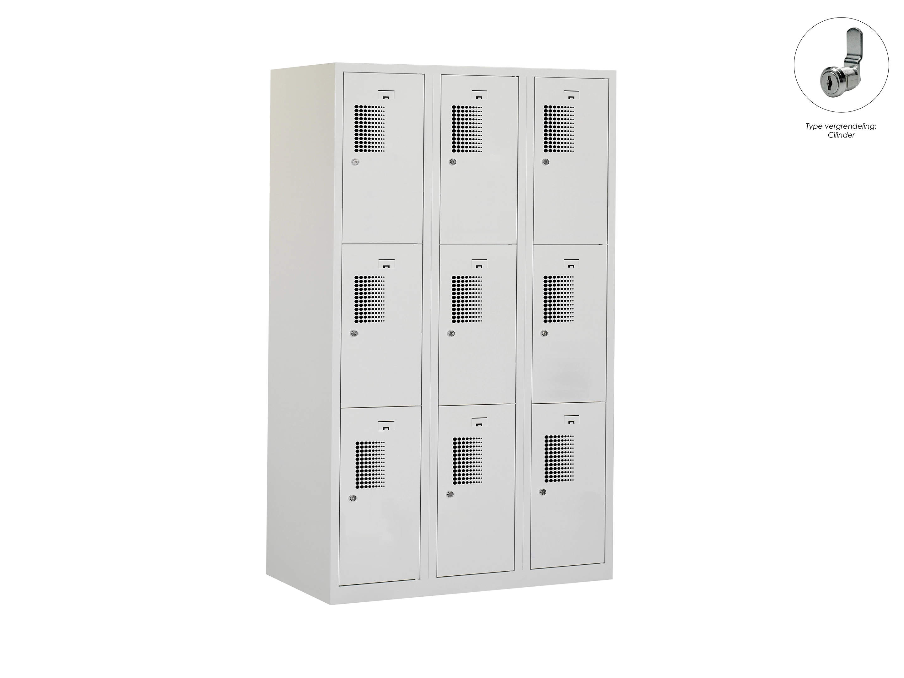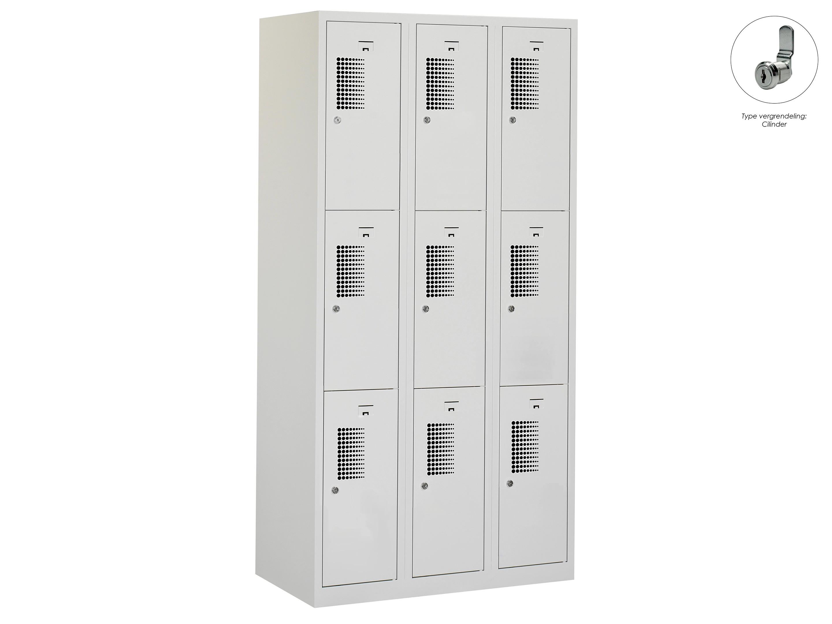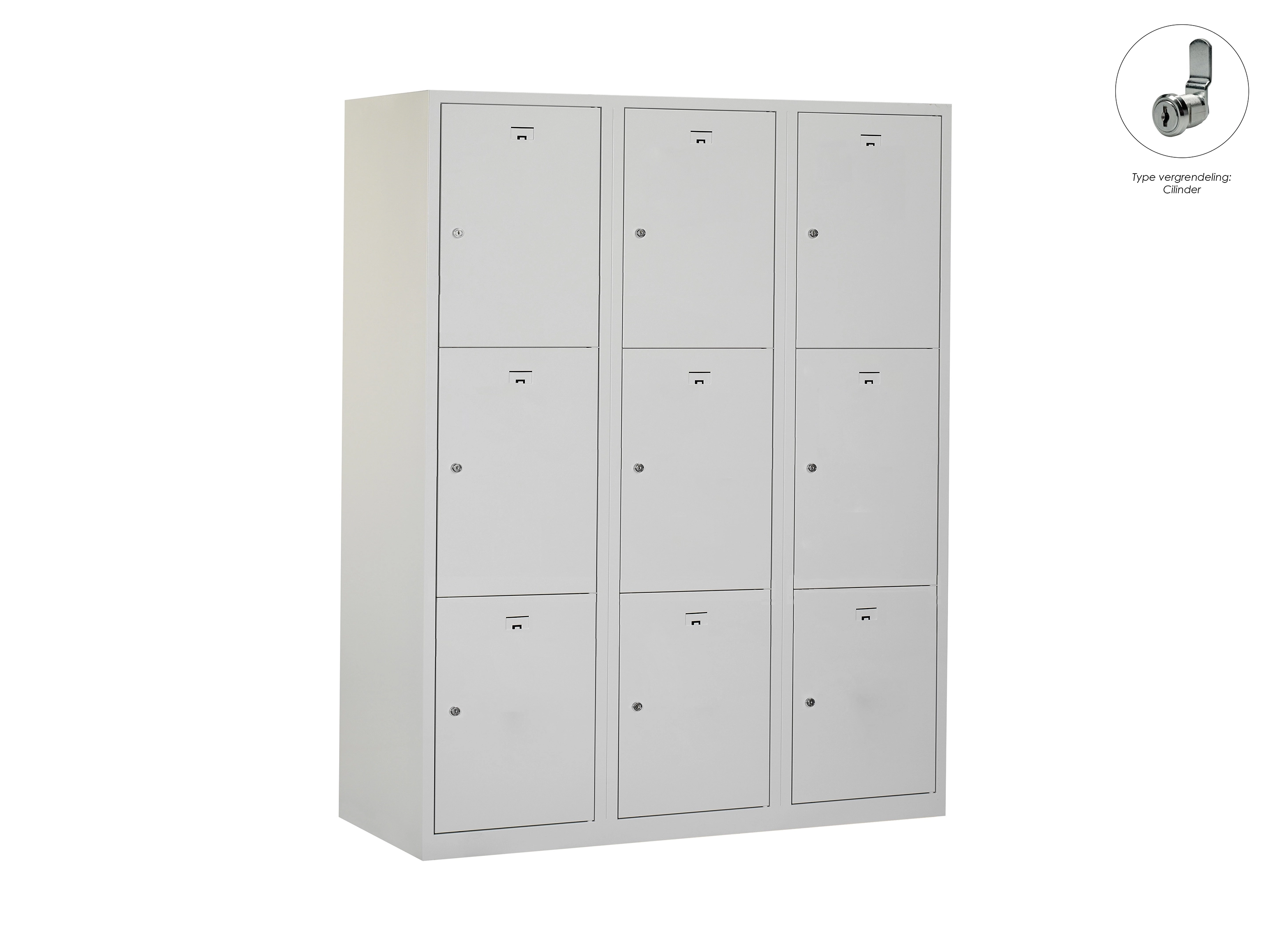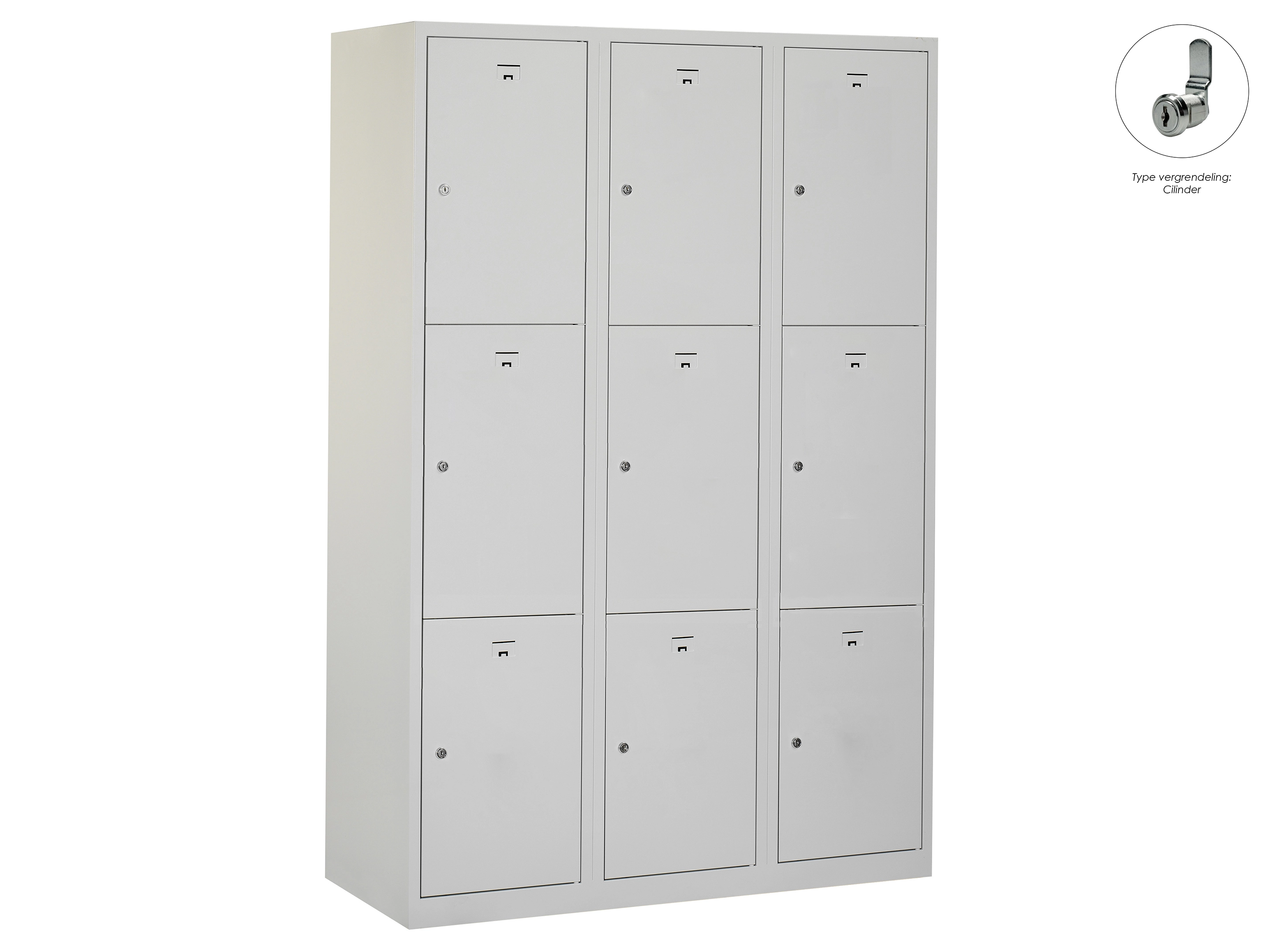 Locker NH - 3 kolomen, 9 deuren, 111,6x90x50 cm, grijs/grijs, cilinder