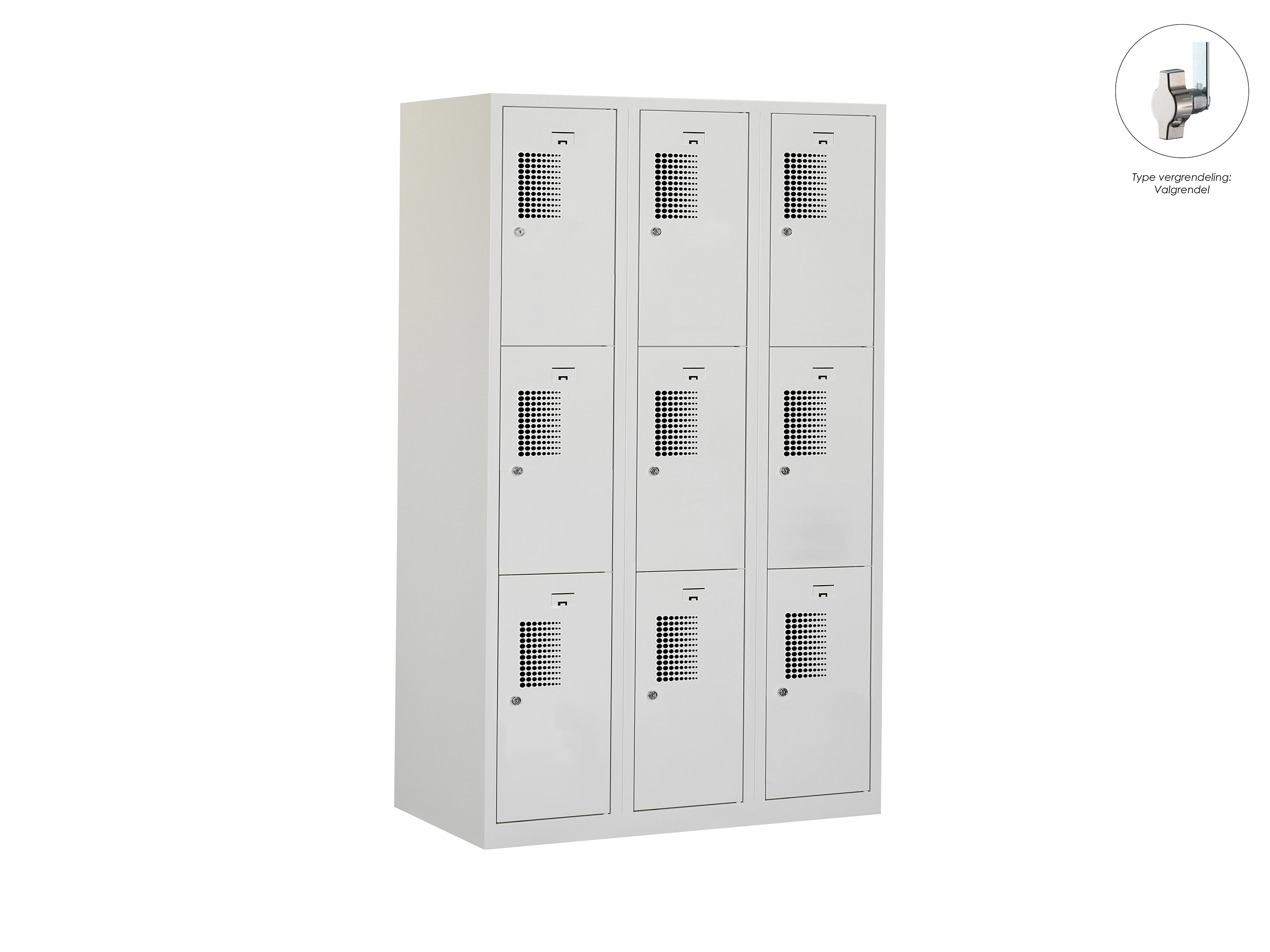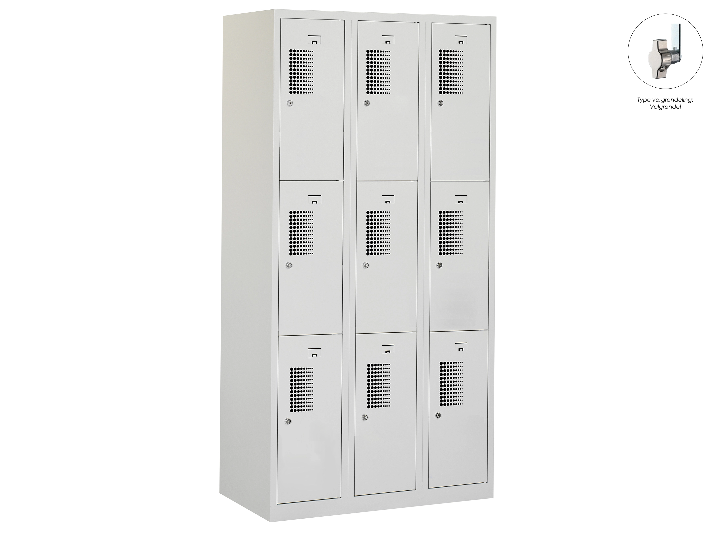 Locker NH - 3 kolomen, 9 deuren, 111,6x90x50 cm, grijs/grijs, valgrendel