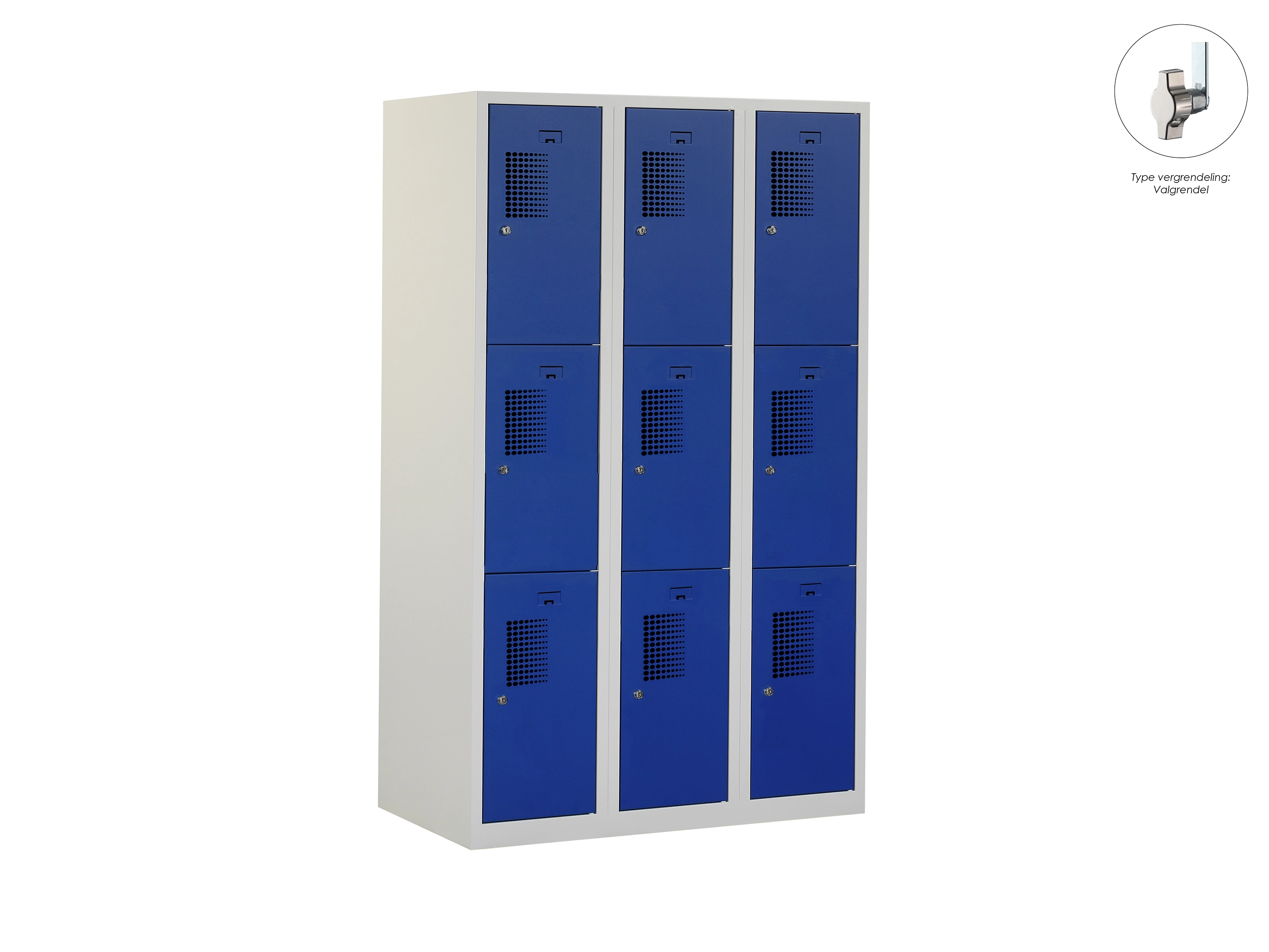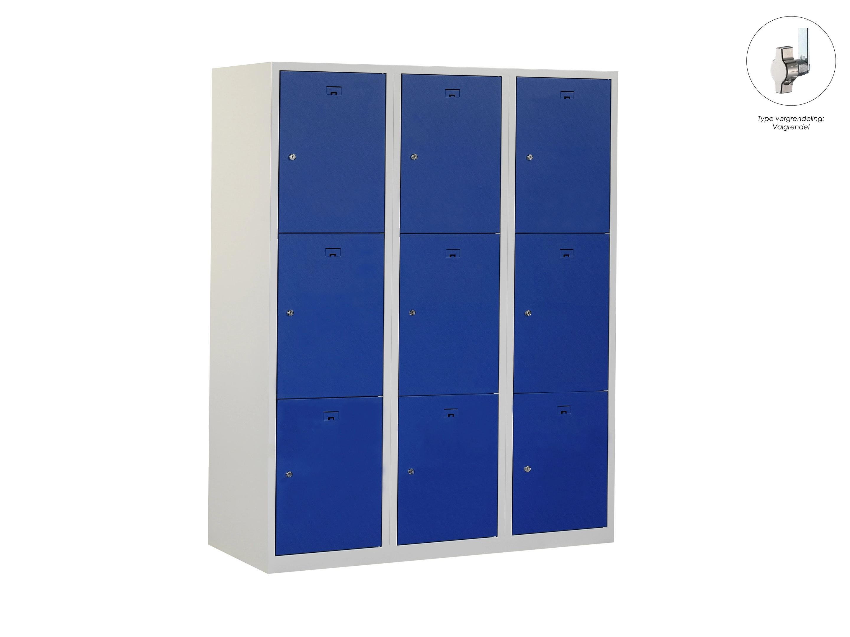 Locker NH - 3 kolomen, 9 deuren, 111,6x90x50 cm, grijs/blauw, valgrendel