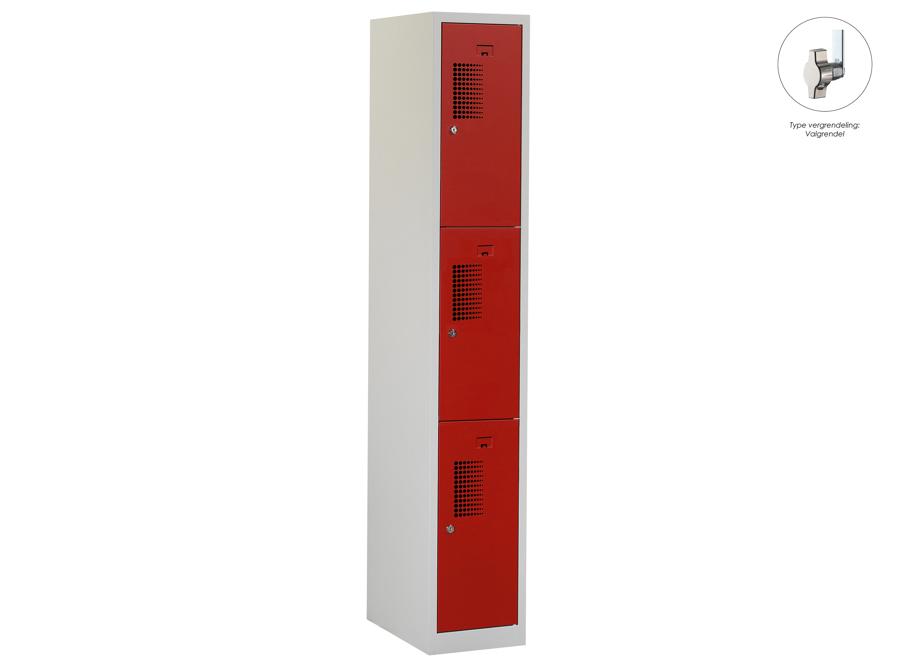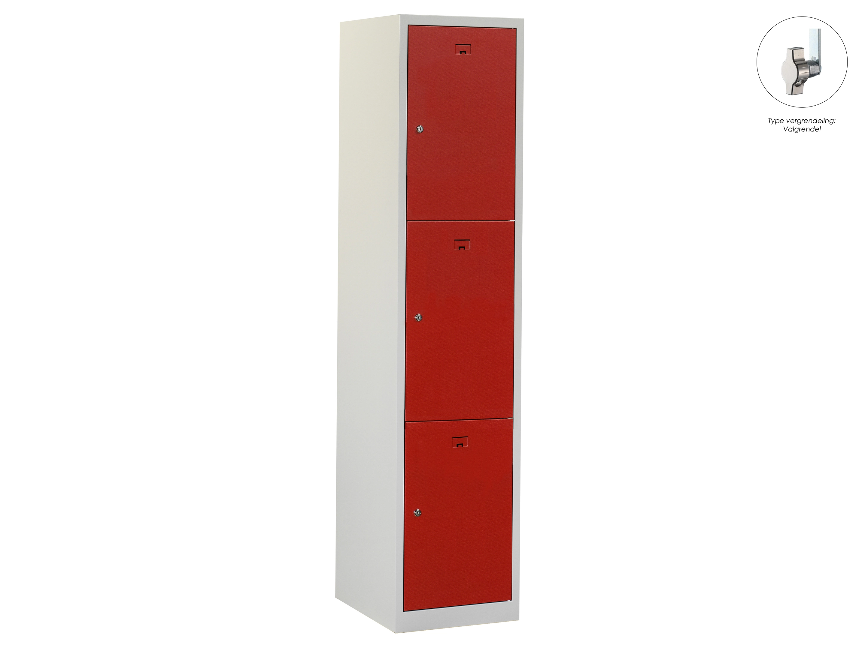 Locker NH - 1 kolom, 3 deuren, 180x30x50 cm, grijs/rood, valgrendel