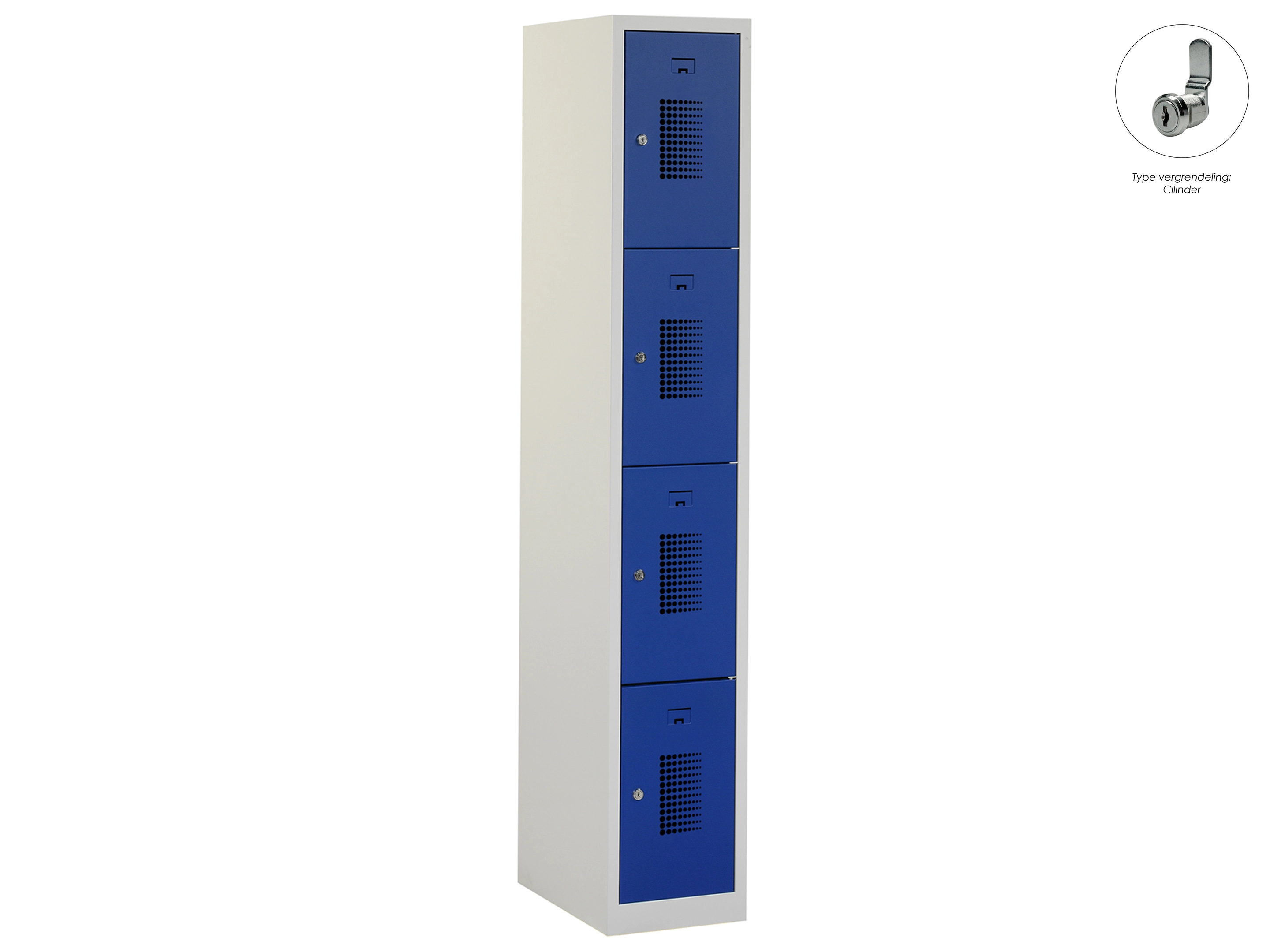 Locker NH - 1 kolom, 4 deuren, 180x30x50 cm, grijs/blauw, cilinder