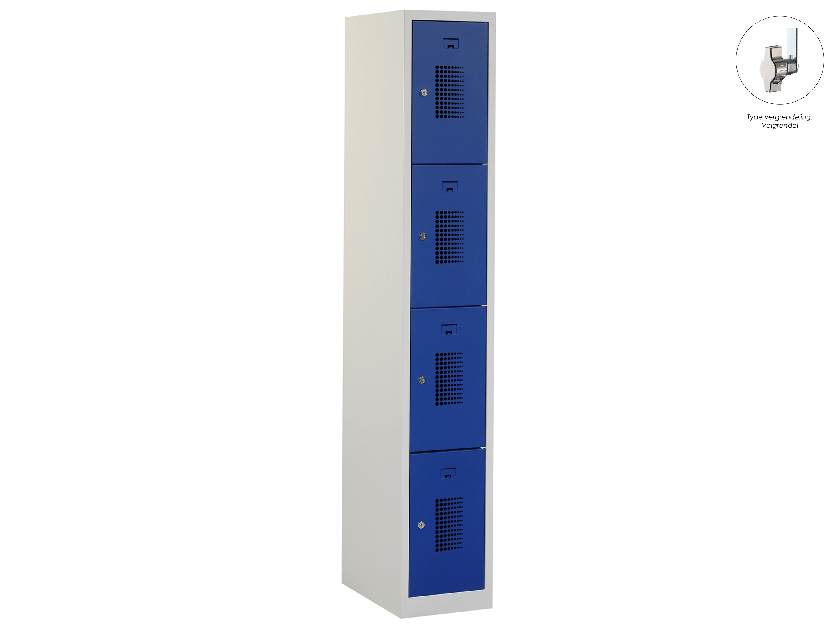 Locker NH - 1 kolom, 4 deuren, 180x30x50 cm, grijs/blauw, valgrendel