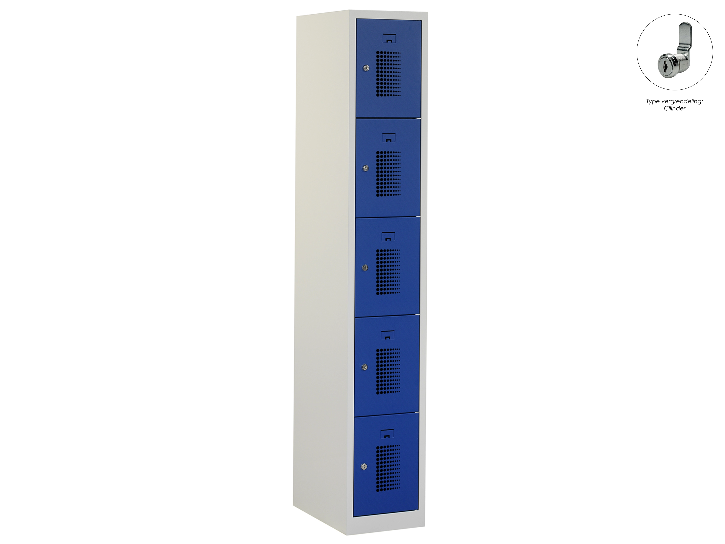 Locker NH - 1 kolom, 5 deuren, 180x30x50 cm, grijs/blauw, cilinder