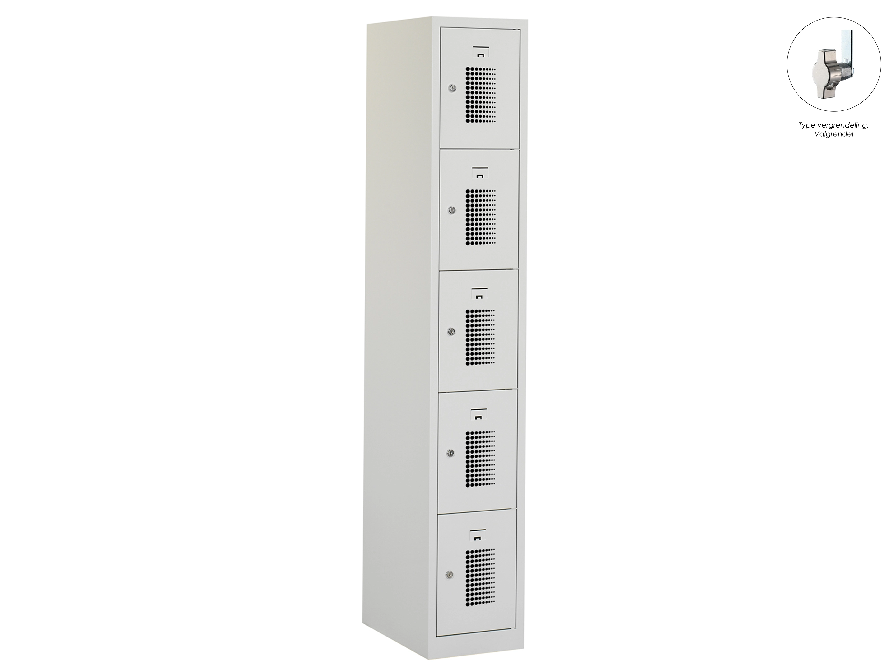 Locker NH - 1 kolom, 5 deuren, 180x30x50 cm, grijs/grijs, valgrendel