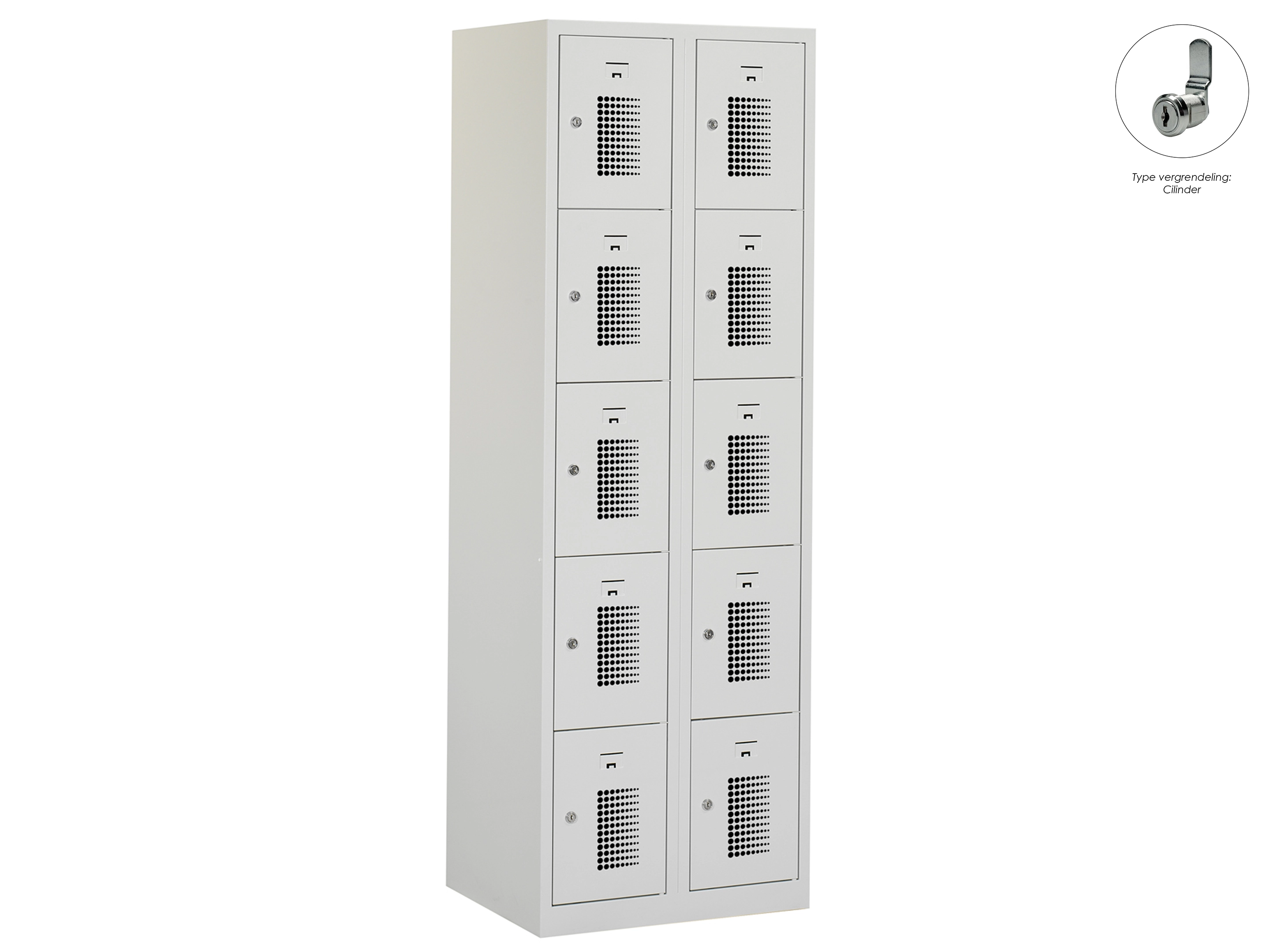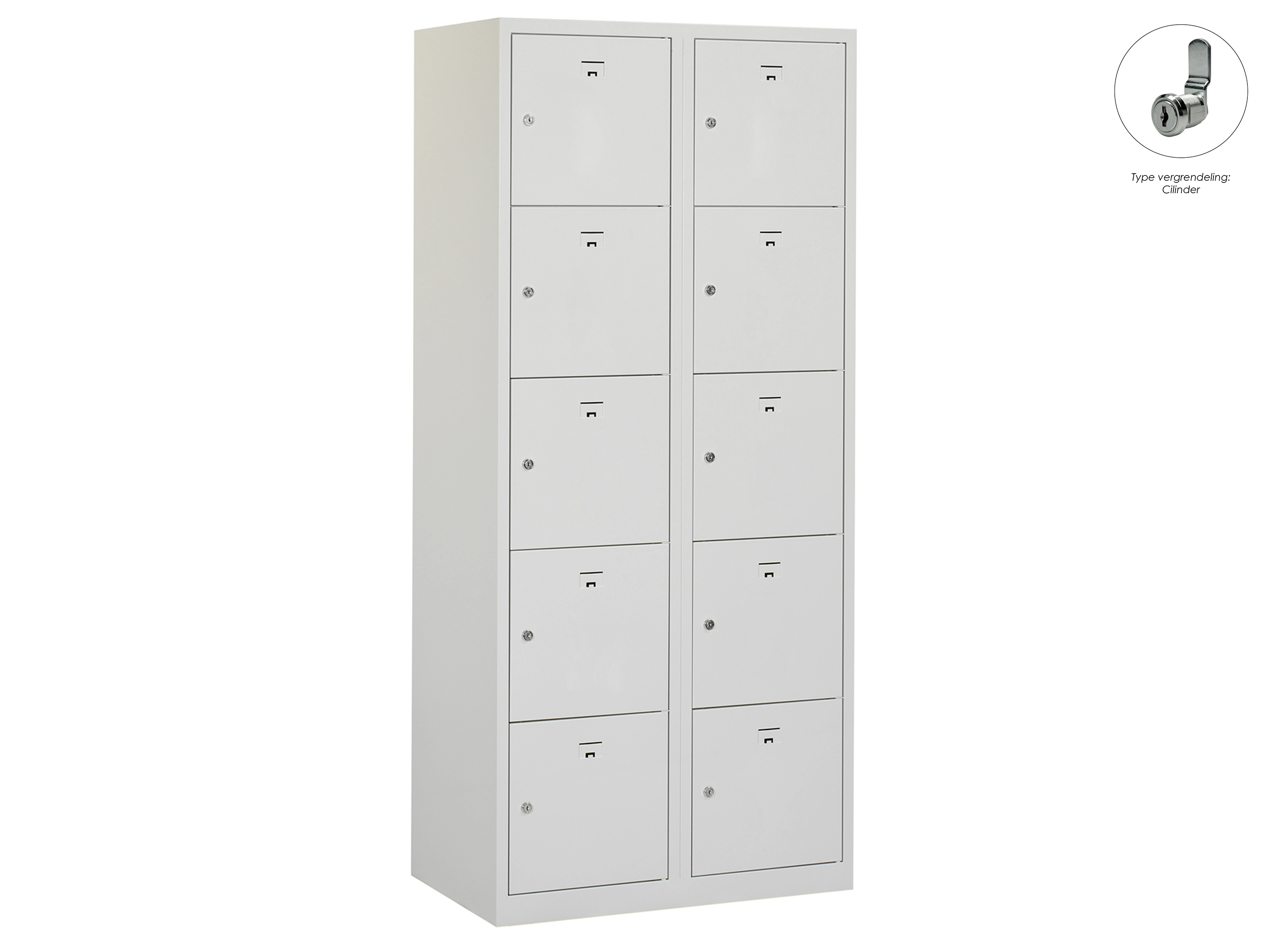 Locker NH - 2 kolomen, 10 deuren, 180x60x50 cm, grijs/grijs, cilinder