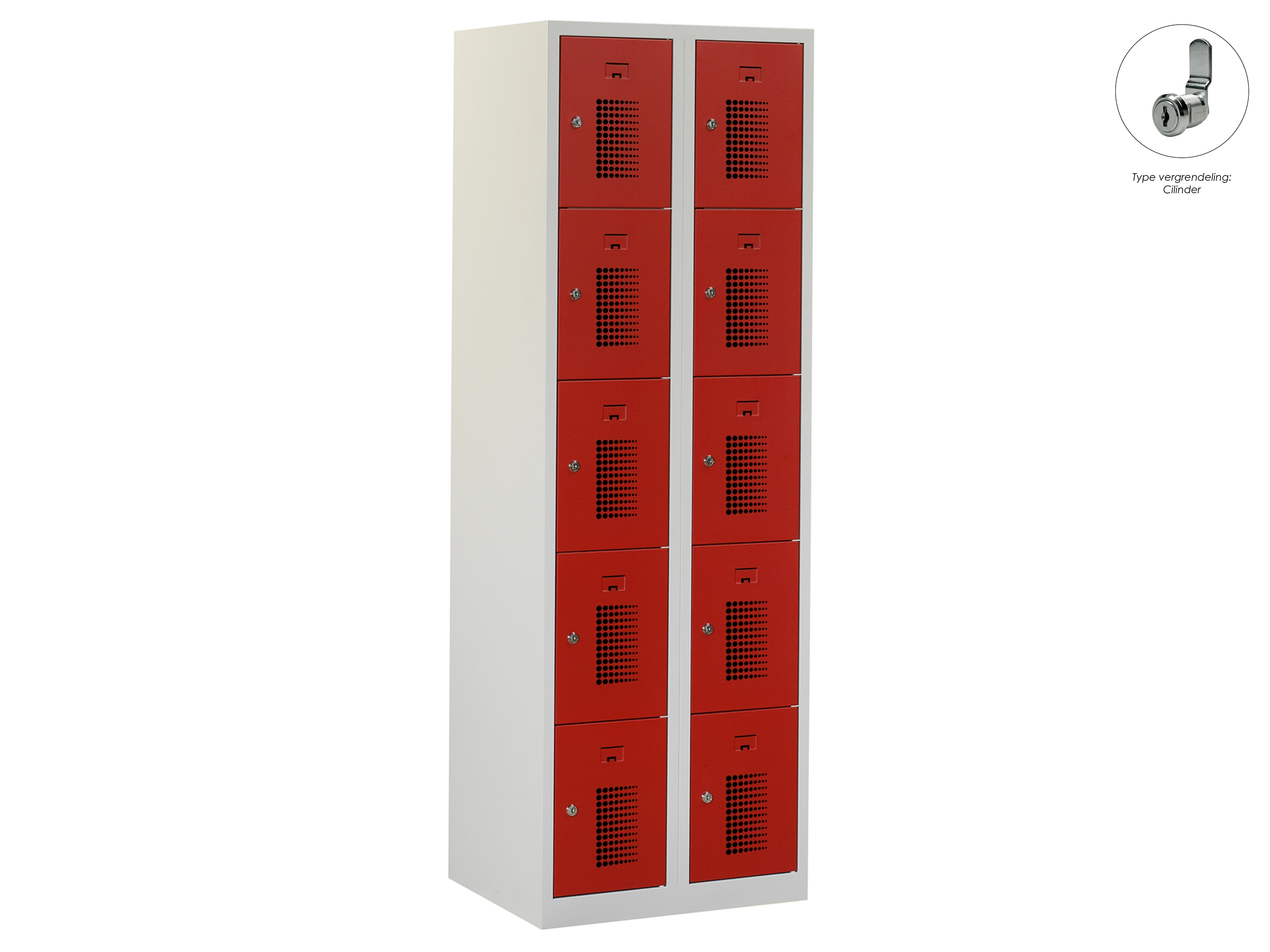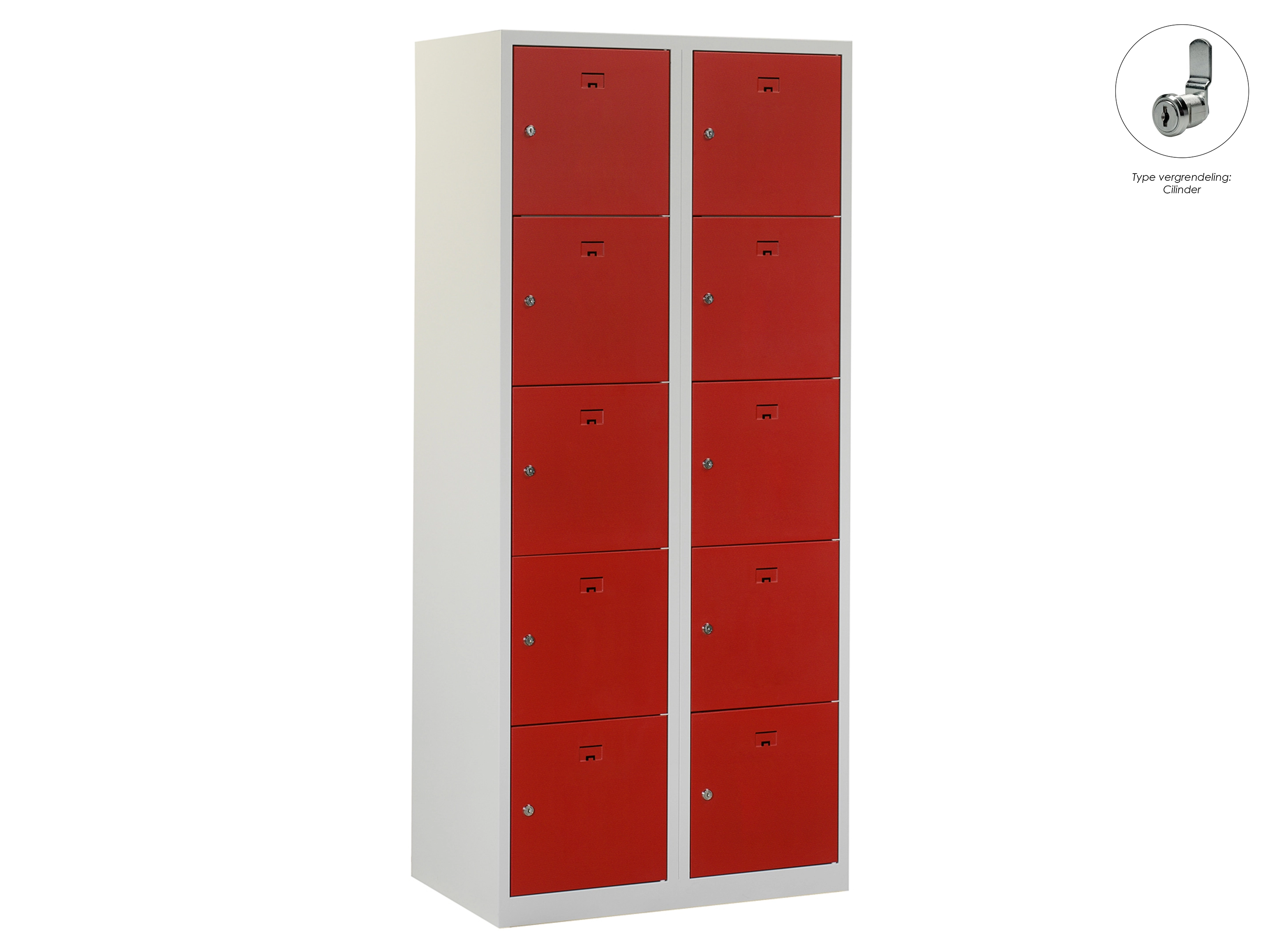Locker NH - 2 kolomen, 10 deuren, 180x60x50 cm, grijs/rood, cilinder