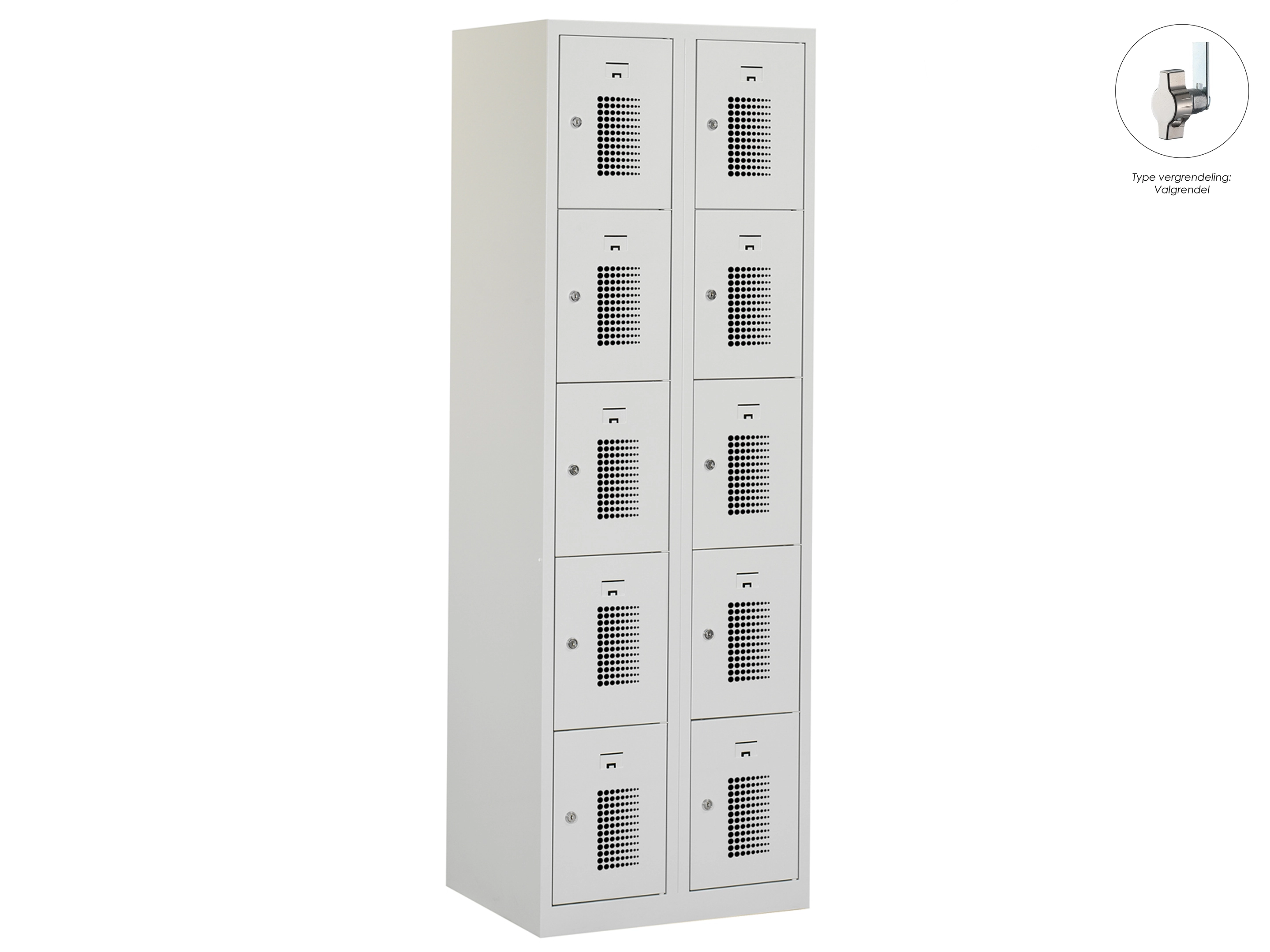 Locker NH - 2 kolomen, 10 deuren, 180x60x50 cm, grijs/grijs, valgrendel