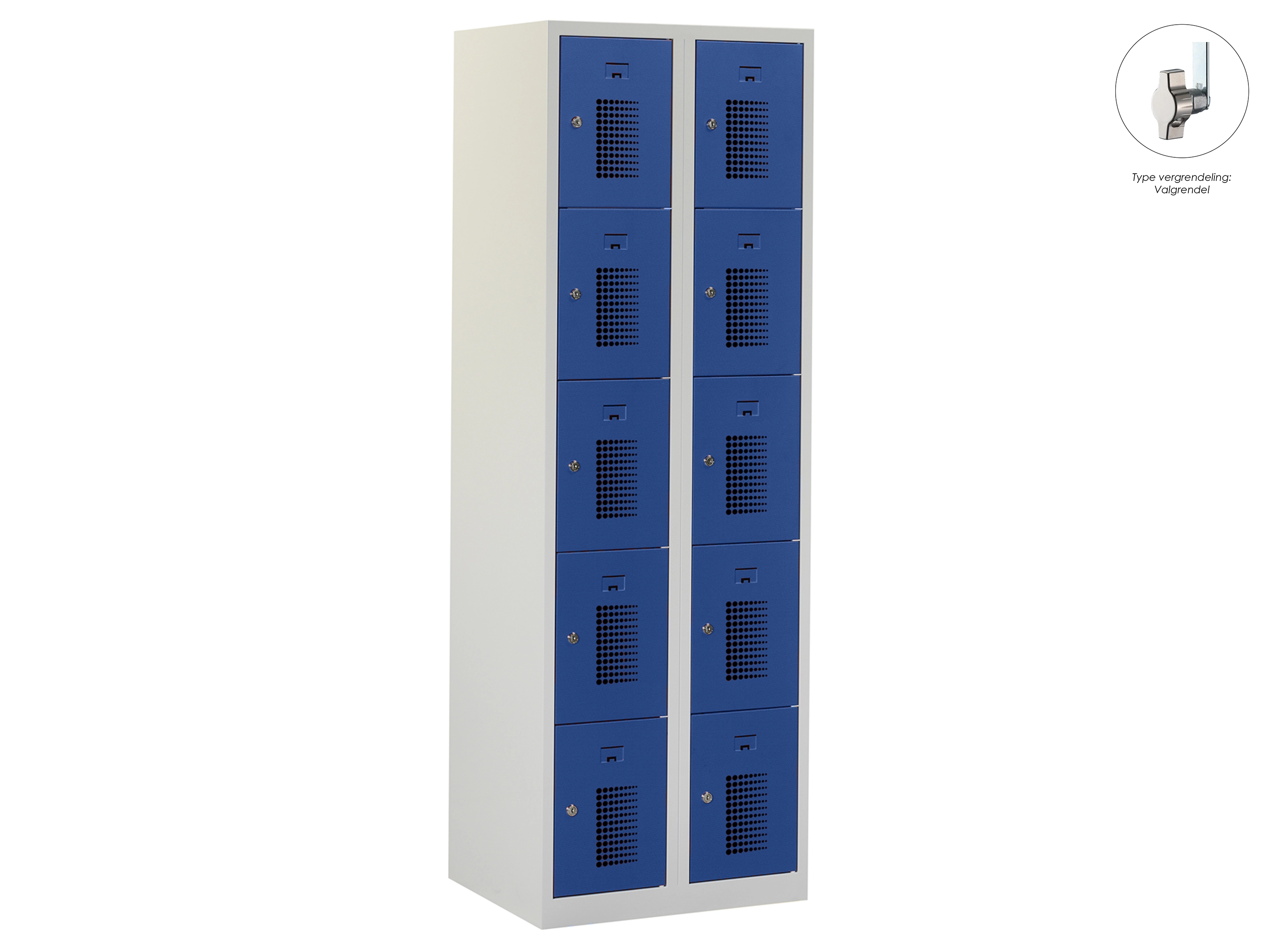 Locker NH - 2 kolomen, 10 deuren, 180x80x50 cm, grijs/blauw, valgrendel