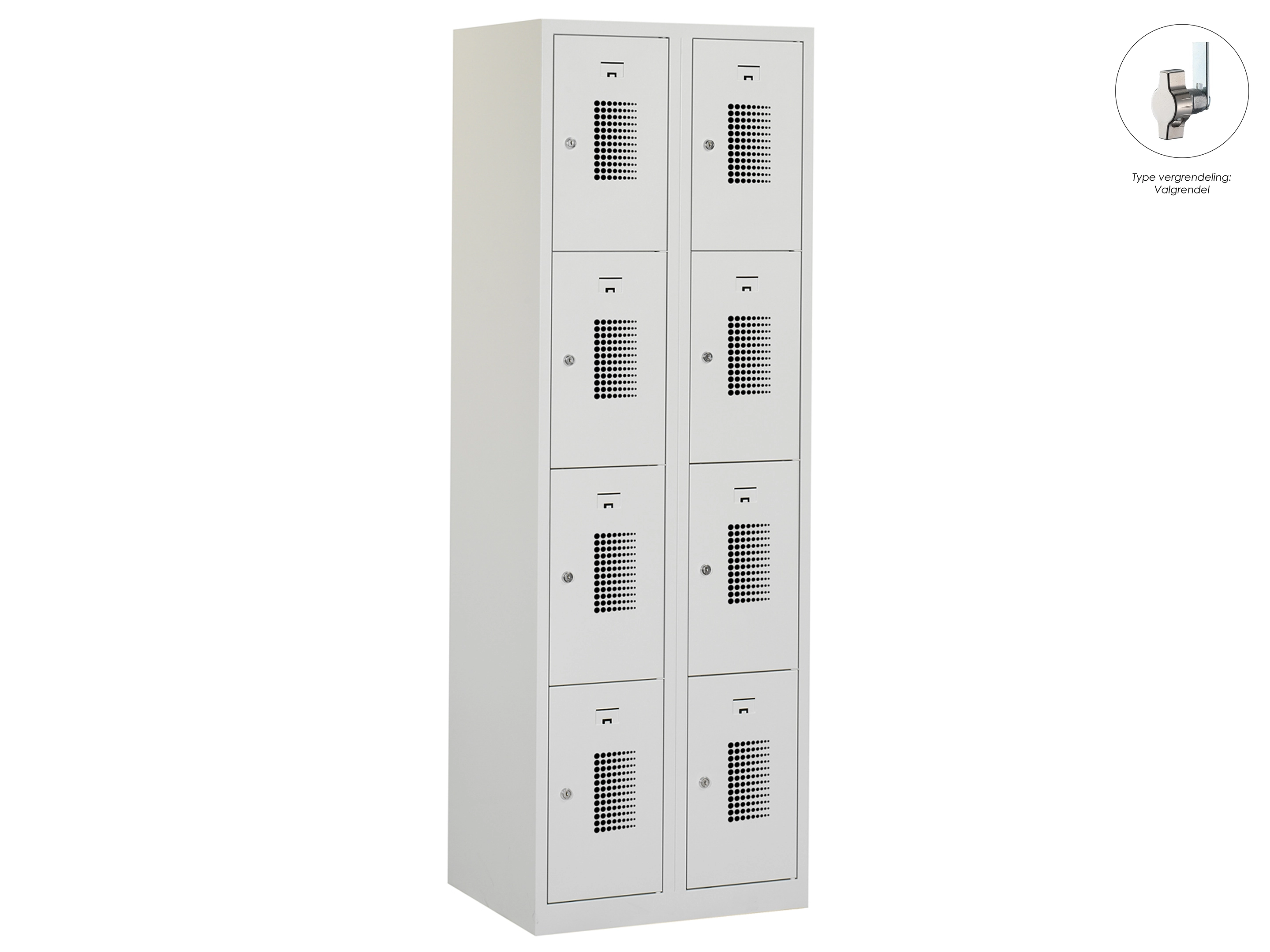 Locker NH - 2 kolomen, 8 deuren, 180x60x50 cm, grijs/grijs, valgrendel