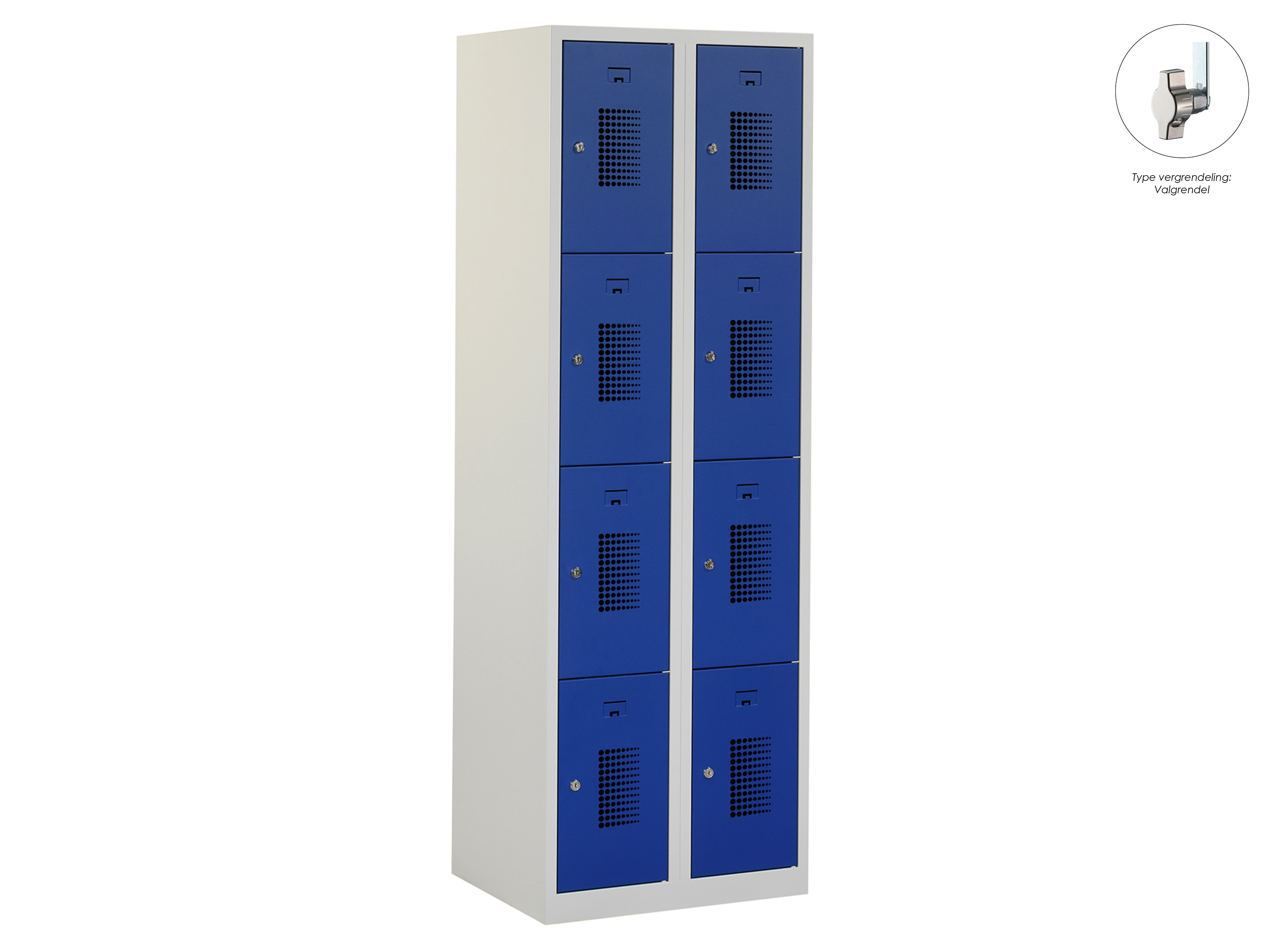Locker NH - 2 kolomen, 8 deuren, 180x60x50 cm, grijs/blauw, valgrendel