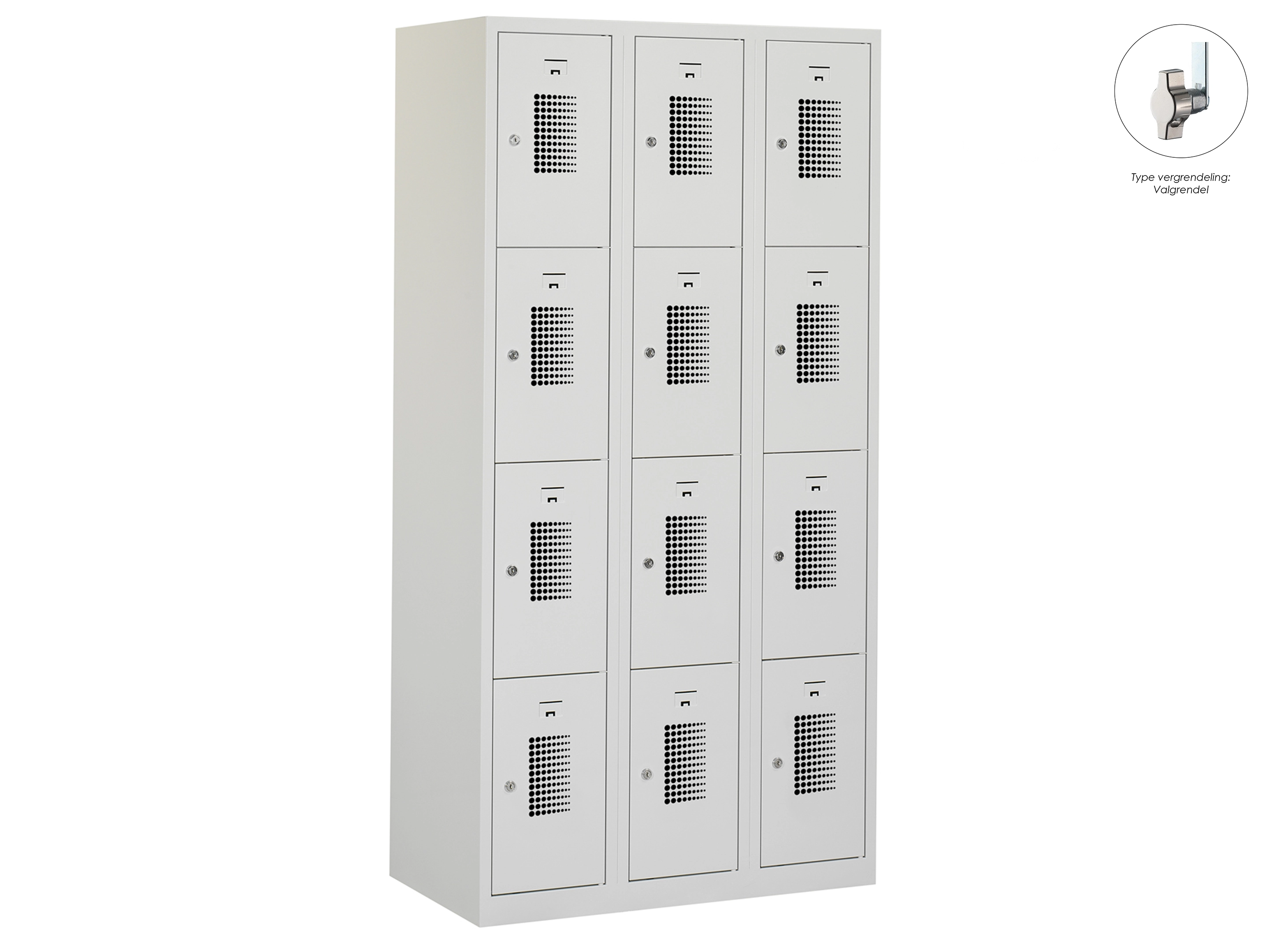 Locker NH - 3 kolomen, 12 deuren, 180x120x50 cm, grijs/grijs, valgrendel