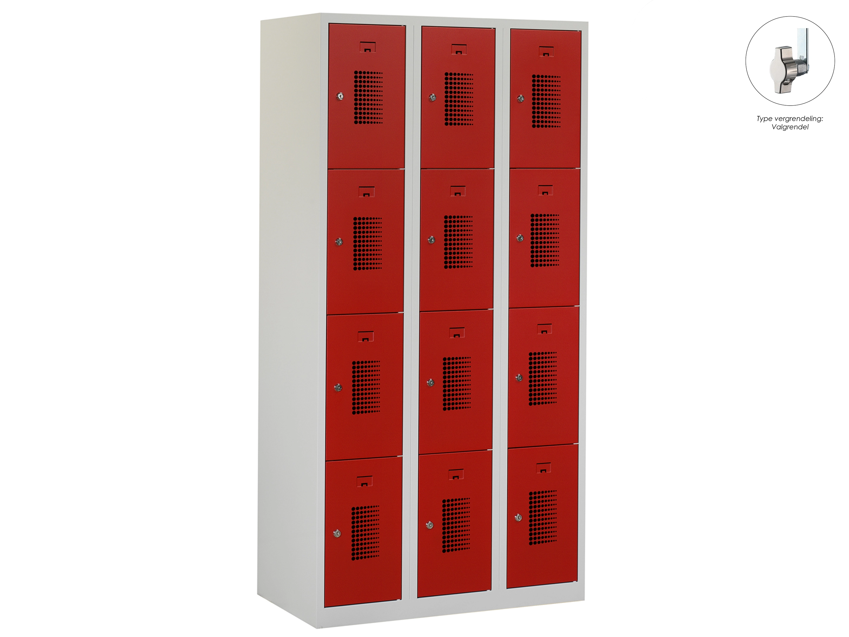 Locker NH - 3 kolomen, 12 deuren, 180x120x50 cm, grijs/rood, valgrendel