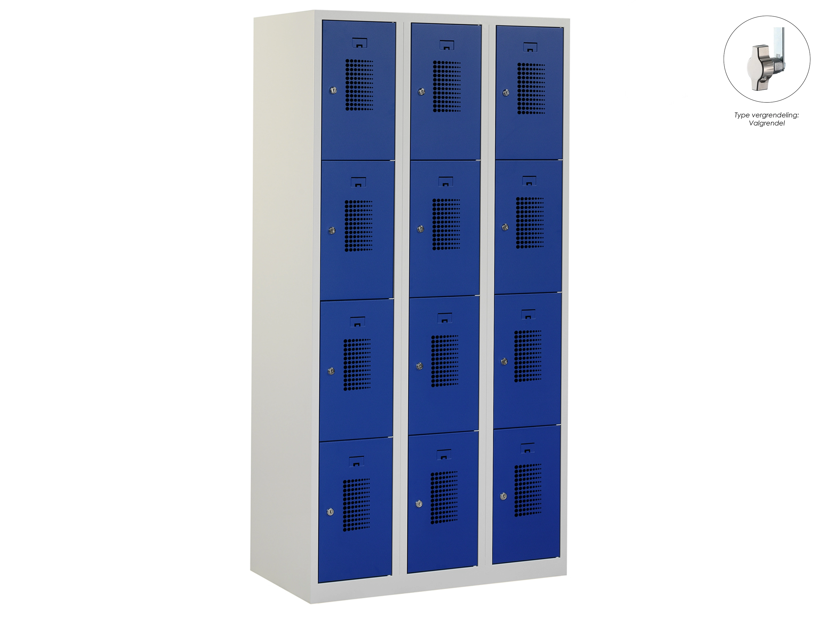 Locker NH - 3 kolomen, 12 deuren, 180x120x50 cm, grijs/blauw, valgrendel
