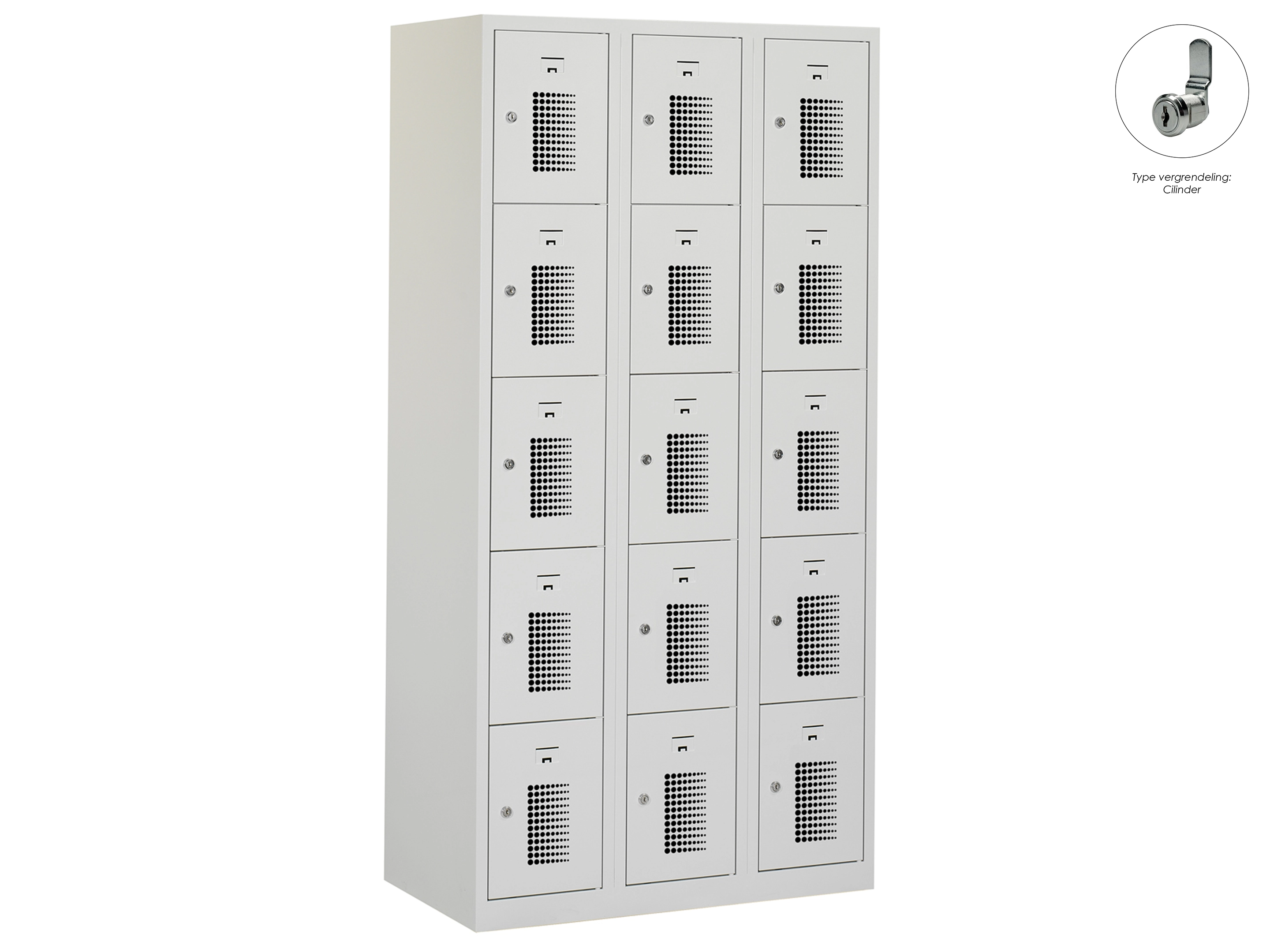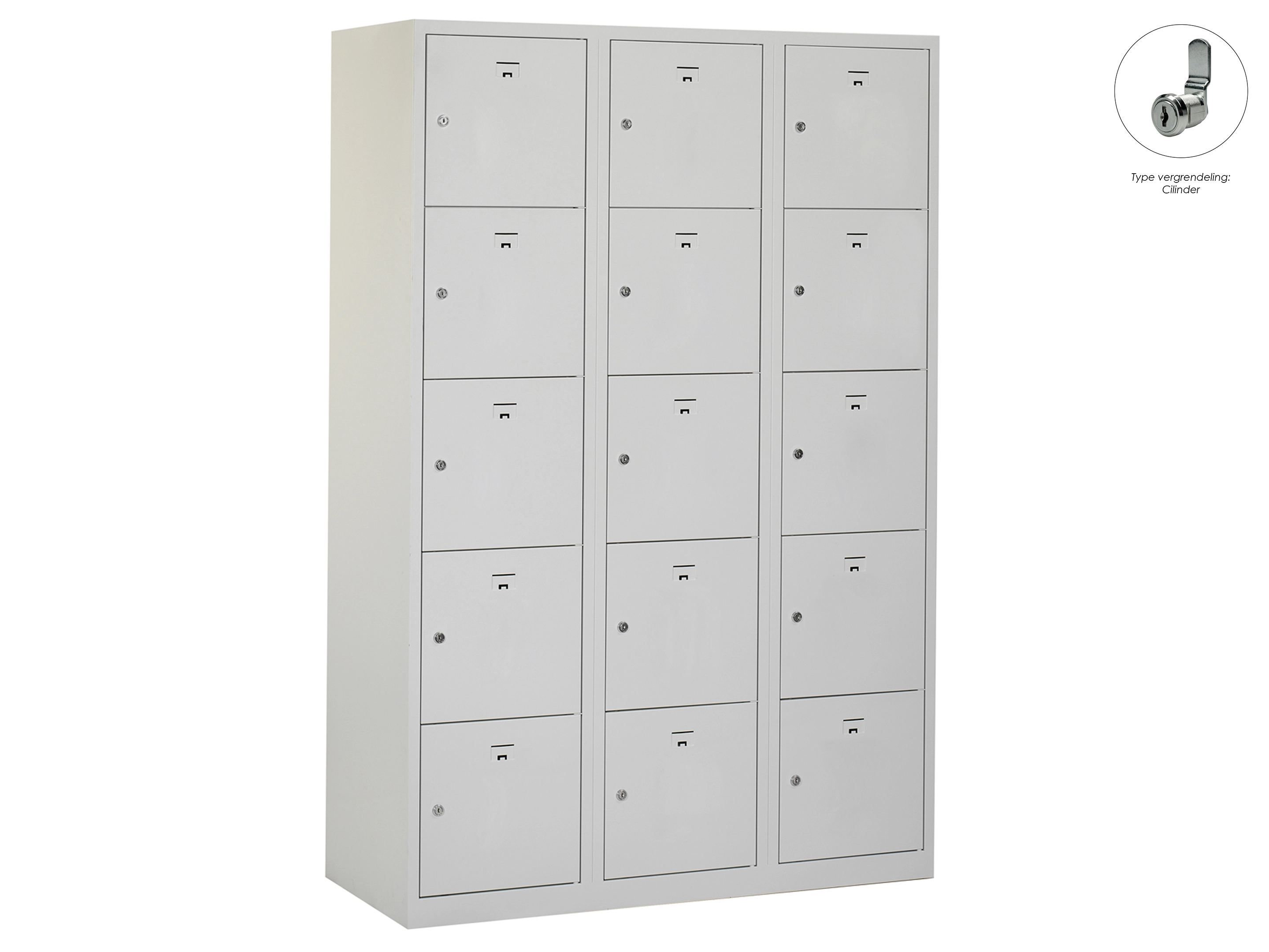 Locker NH - 3 kolomen, 15 deuren, 180x120x50 cm, grijs/grijs, cilinder