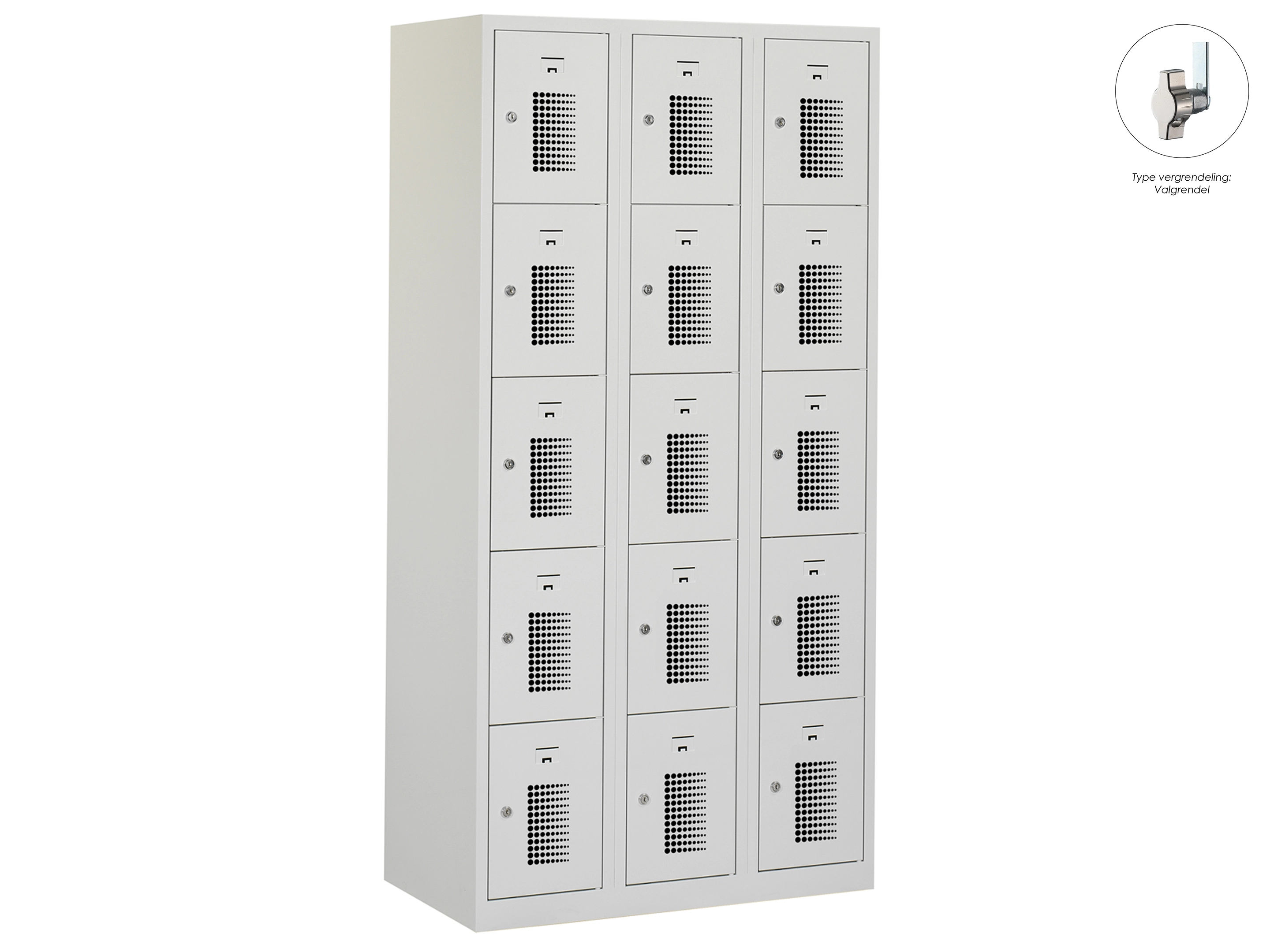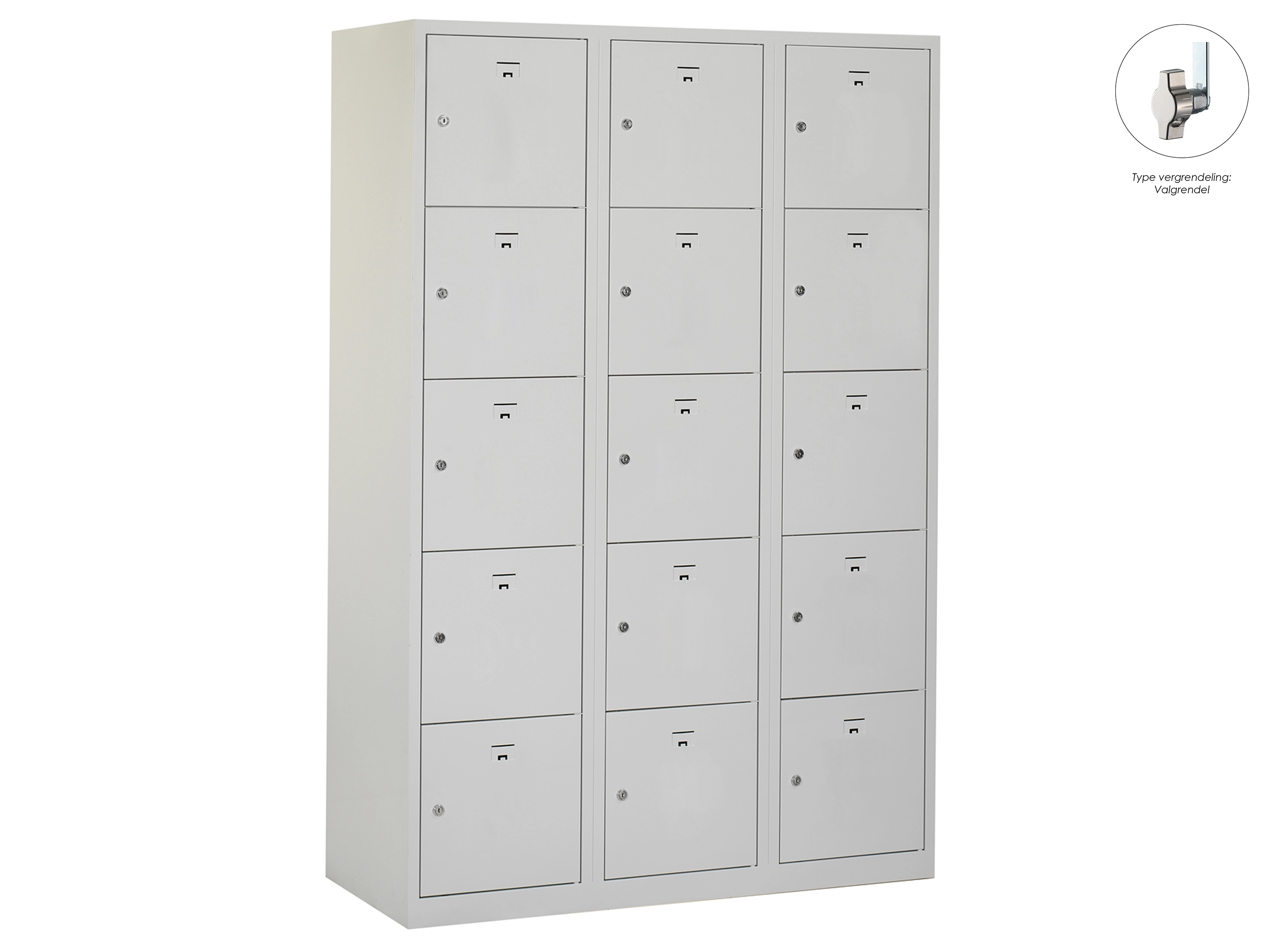 Locker NH - 3 kolomen, 15 deuren, 180x120x50 cm, grijs/grijs, valgrendel