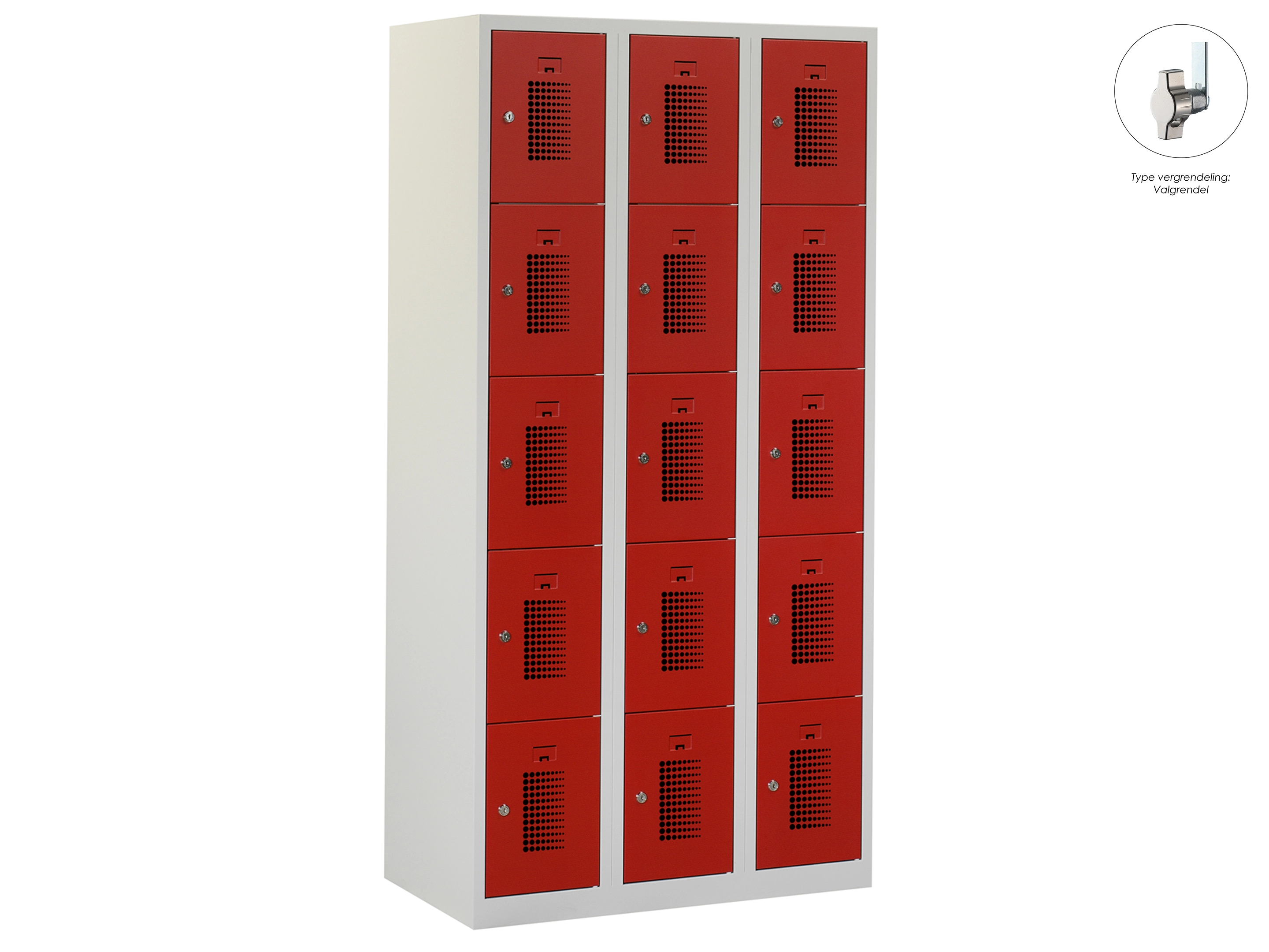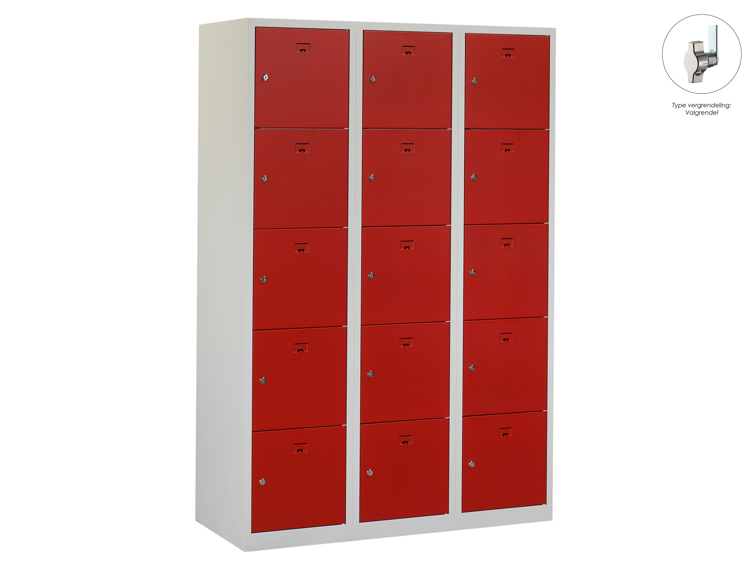 Locker NH - 3 kolomen, 15 deuren, 180x120x50 cm, grijs/rood, valgrendel