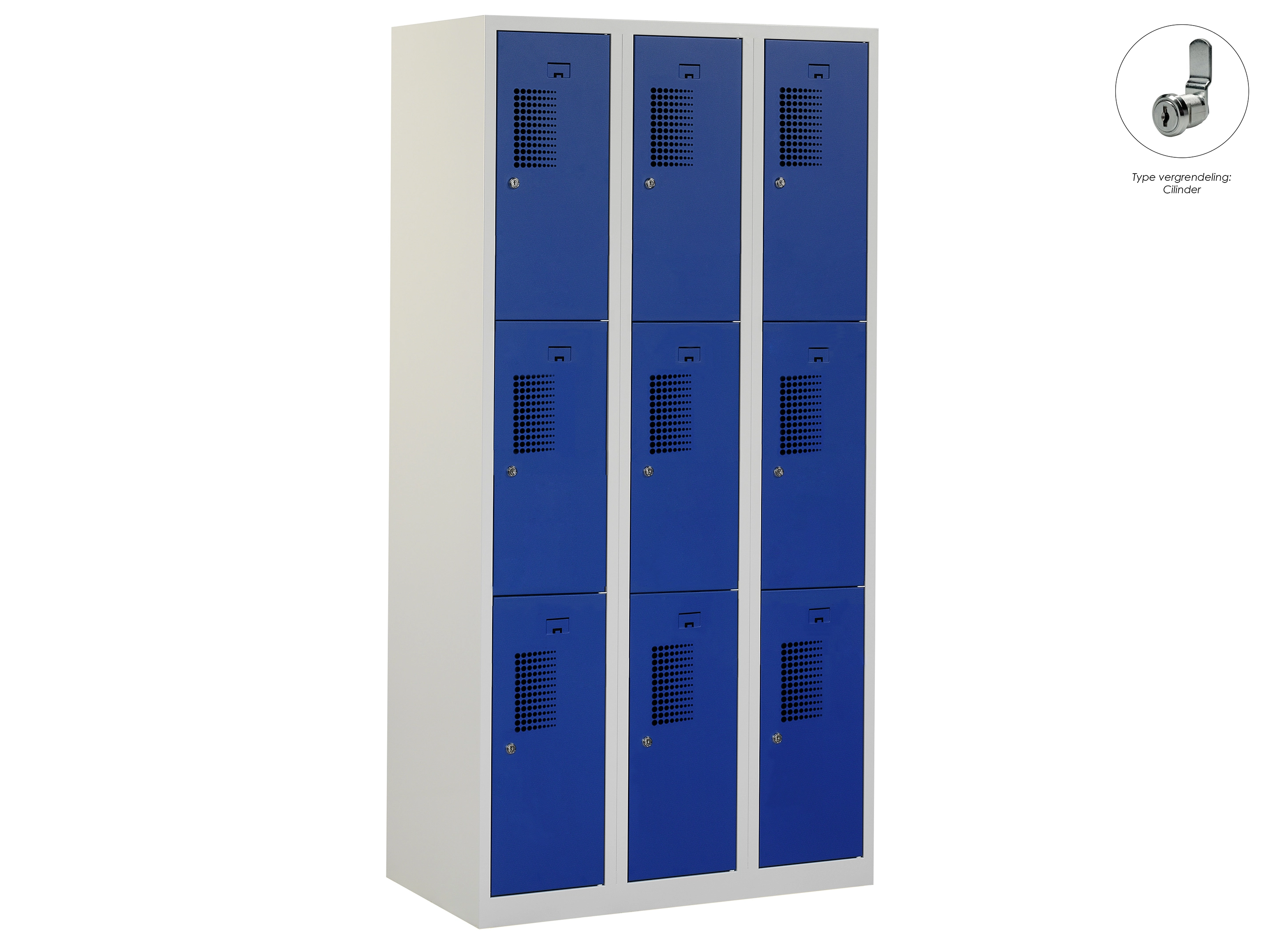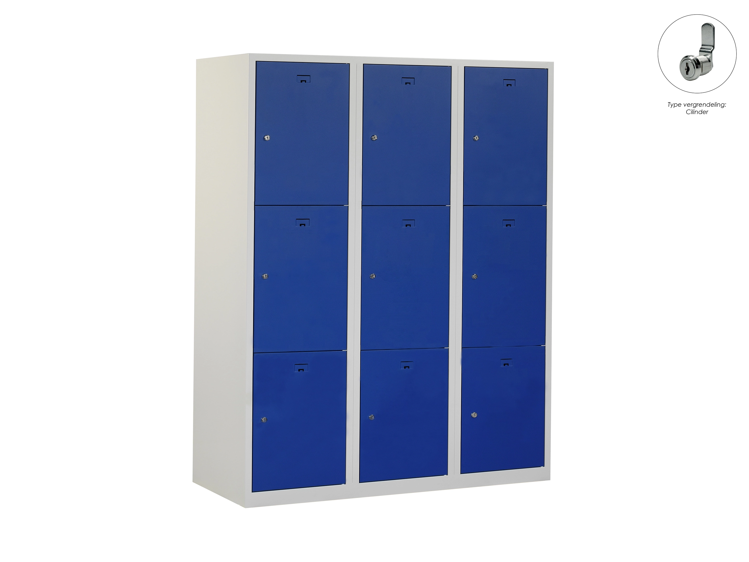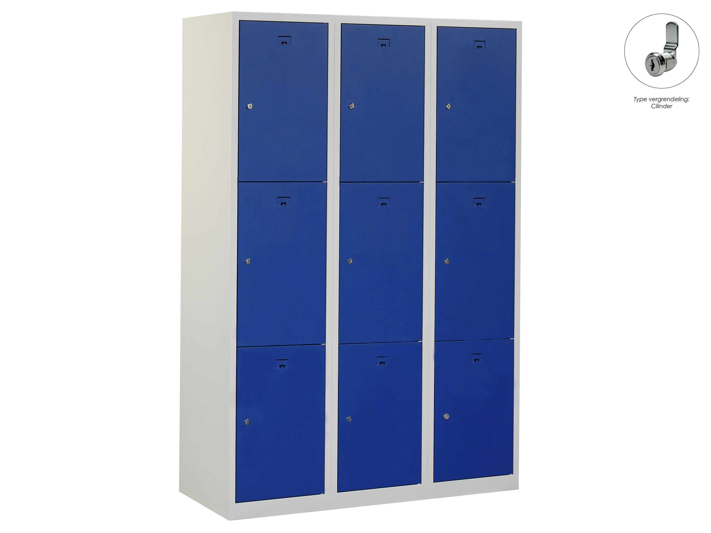 Locker NH - 3 kolomen, 9 deuren, 111,6x90x50 cm, grijs/blauw, cilinder