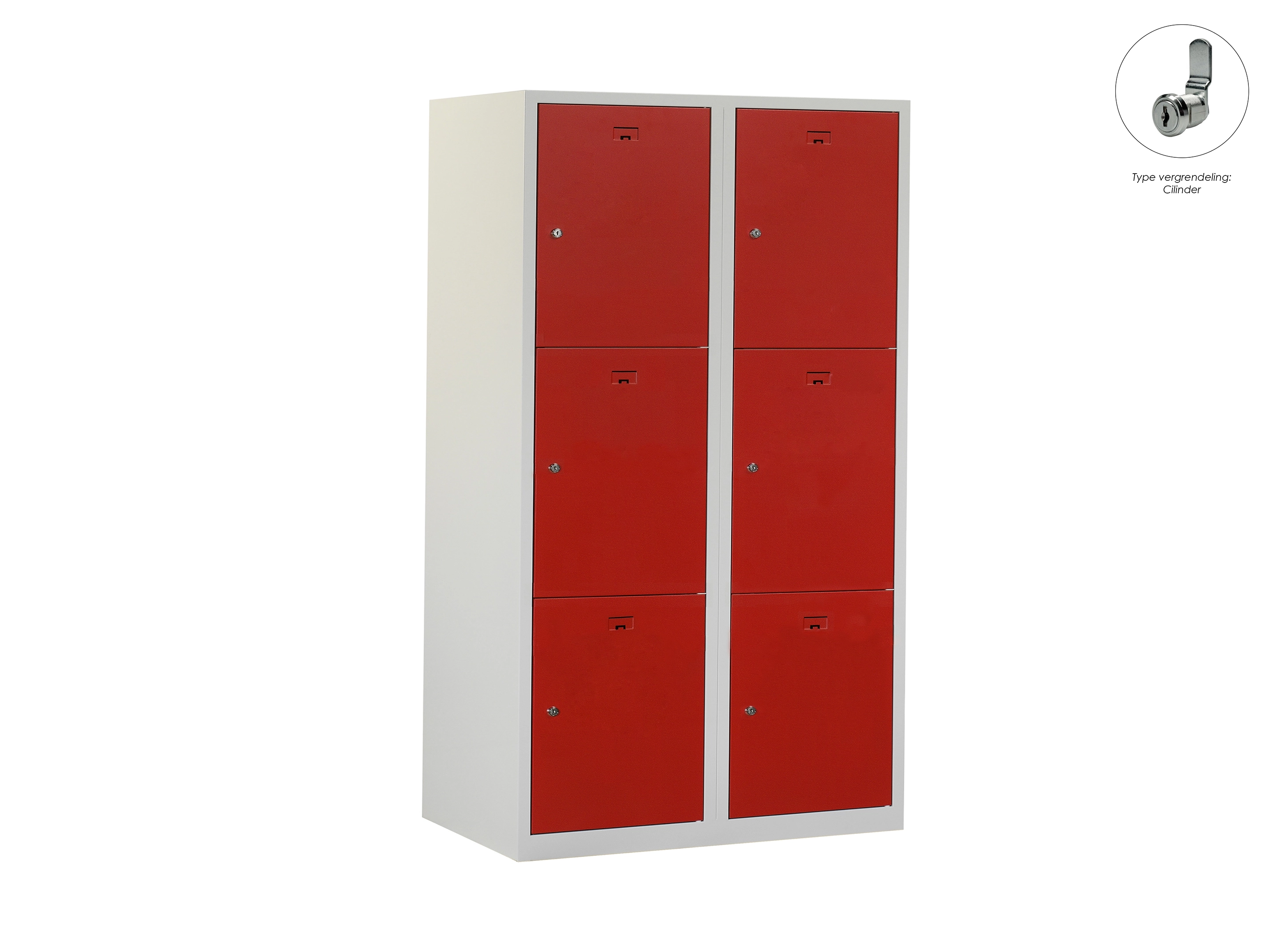Locker NH - 2 kolomen, 6 deuren, 180x80x50 cm, grijs/rood, cilinder