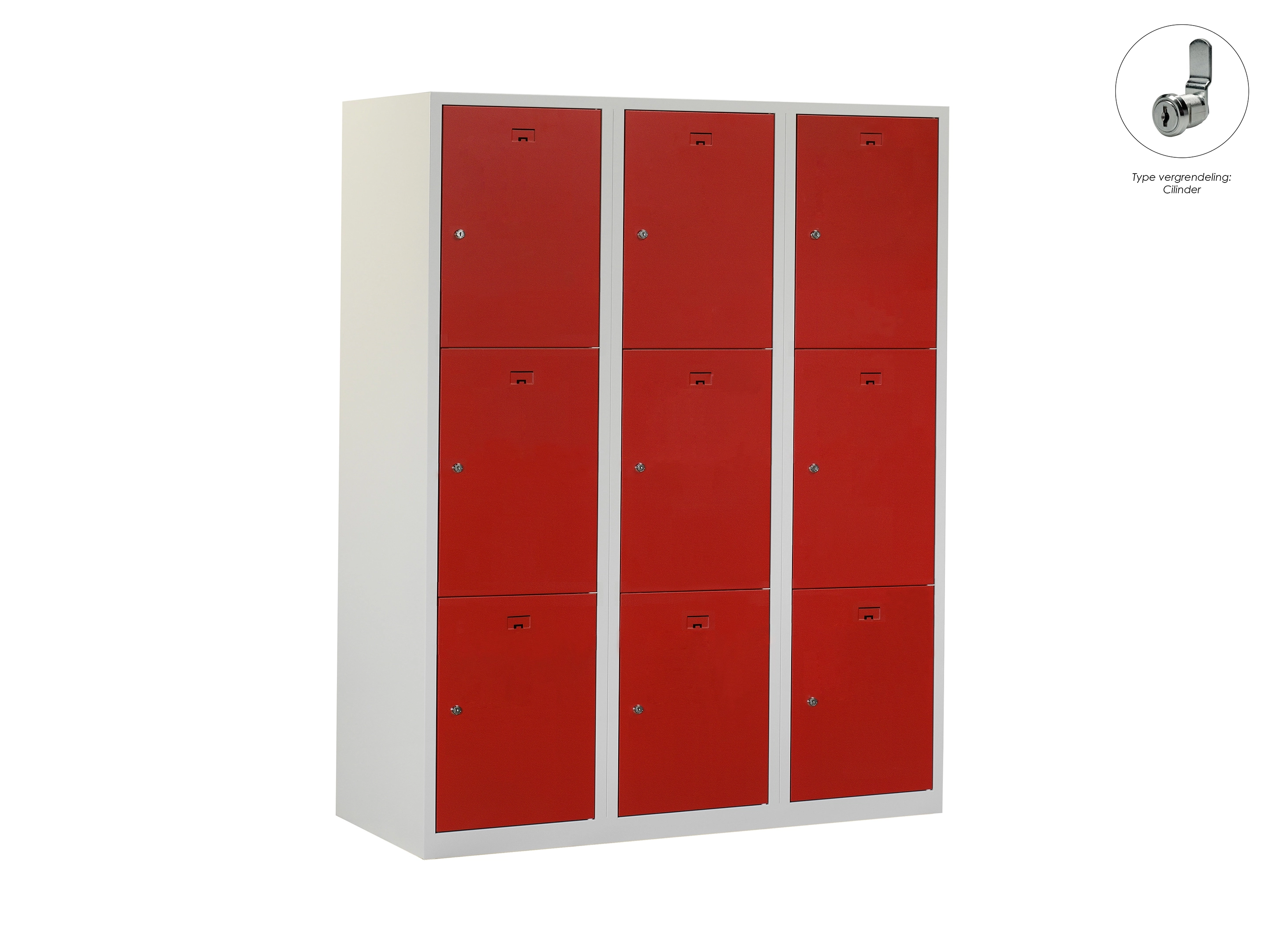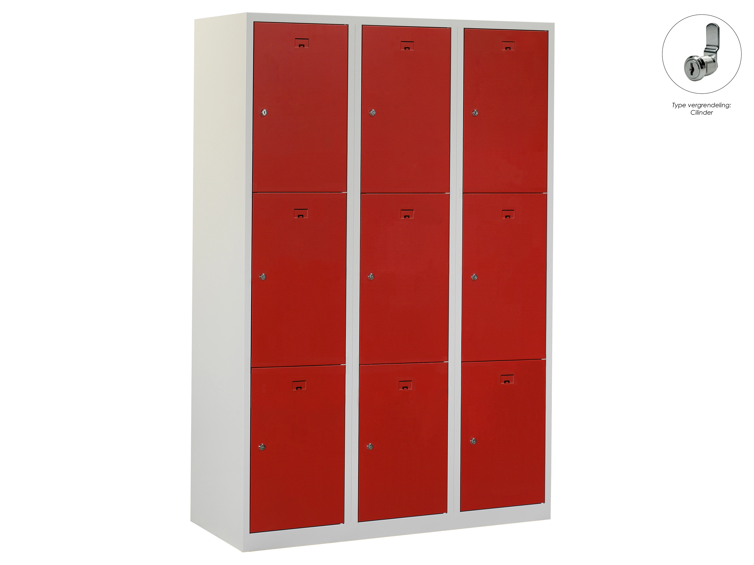 Locker NH - 3 kolomen, 9 deuren, 111,6x90x50 cm, grijs/rood, cilinder